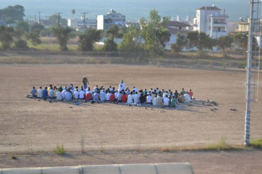 Μουσουλμάνοι μετανάστες έκαναν προσευχή στο γήπεδο των Φιλιατρών. Σήμερα είναι η τελευταία μέρα του Ραμαζανιού, που είναι η μεγαλύτερη γιορτή των μουσουλμάνων, και οι πιστοί του Αλλάχ κάνουν προσεύχονται σε όλο τον κόσμο.