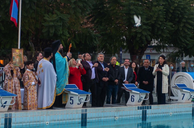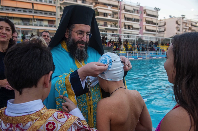Ακολούθησε η κατάδυση του Τιμίου Σταυρού στο κολυμβητήριο, όπου οι μικροί κολυμβητές , με το άκουσμα του απολυτικίου της γιορτής βούτηξαν στα νερά και τελικά έπιασε τον Σταυρό ο μαθητής Δημήτριος Τζούμης, λαμβάνοντας ως δώρο έναν χρυσό σταυρό, ενώ και όλοι οι συμμετέχοντες μαθητές έλαβαν από έναν ασημένιο σταυρό ως ευλογία.