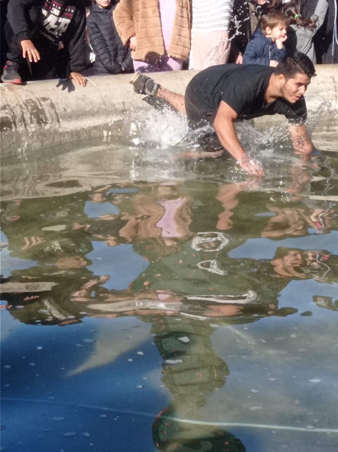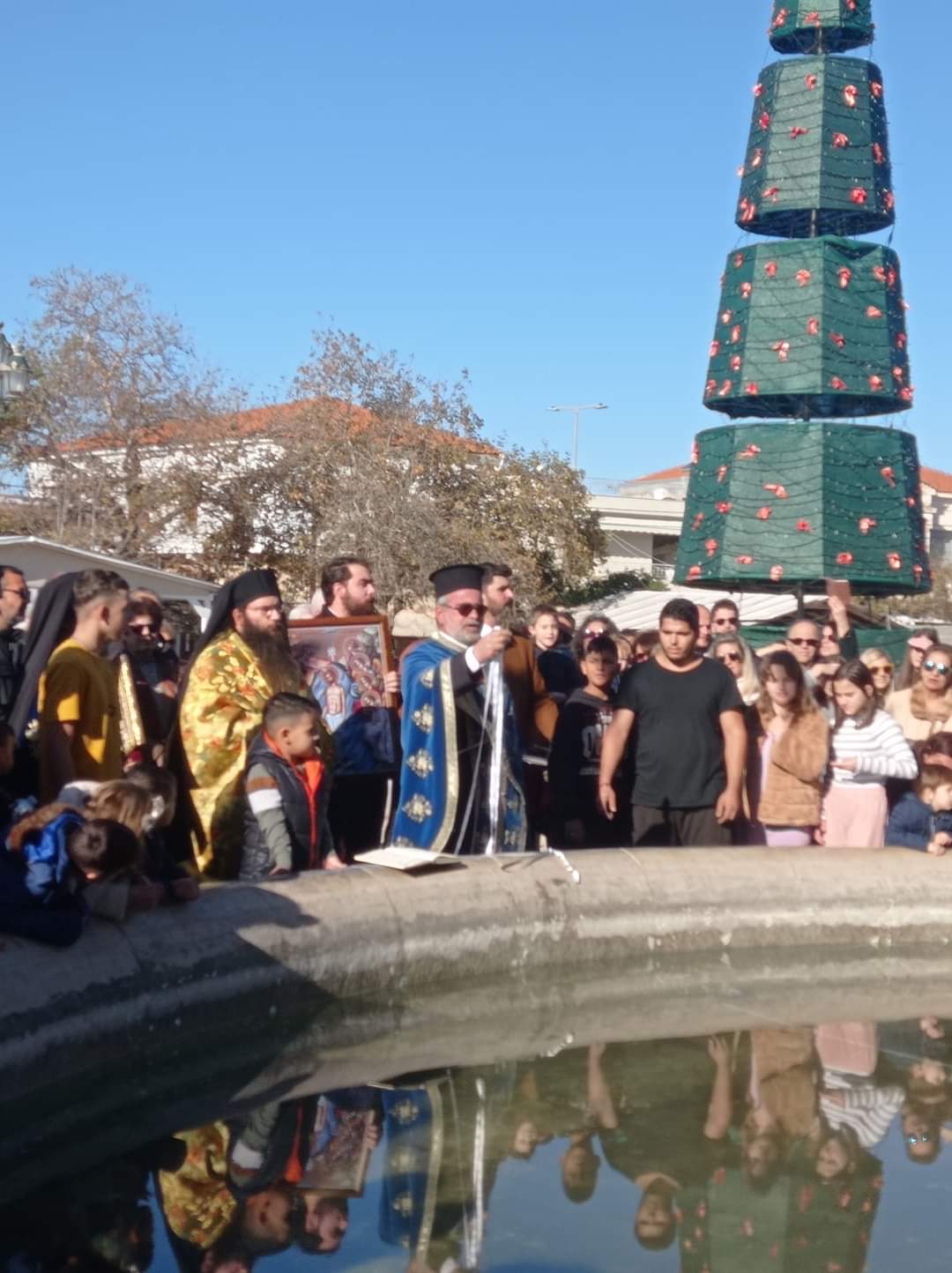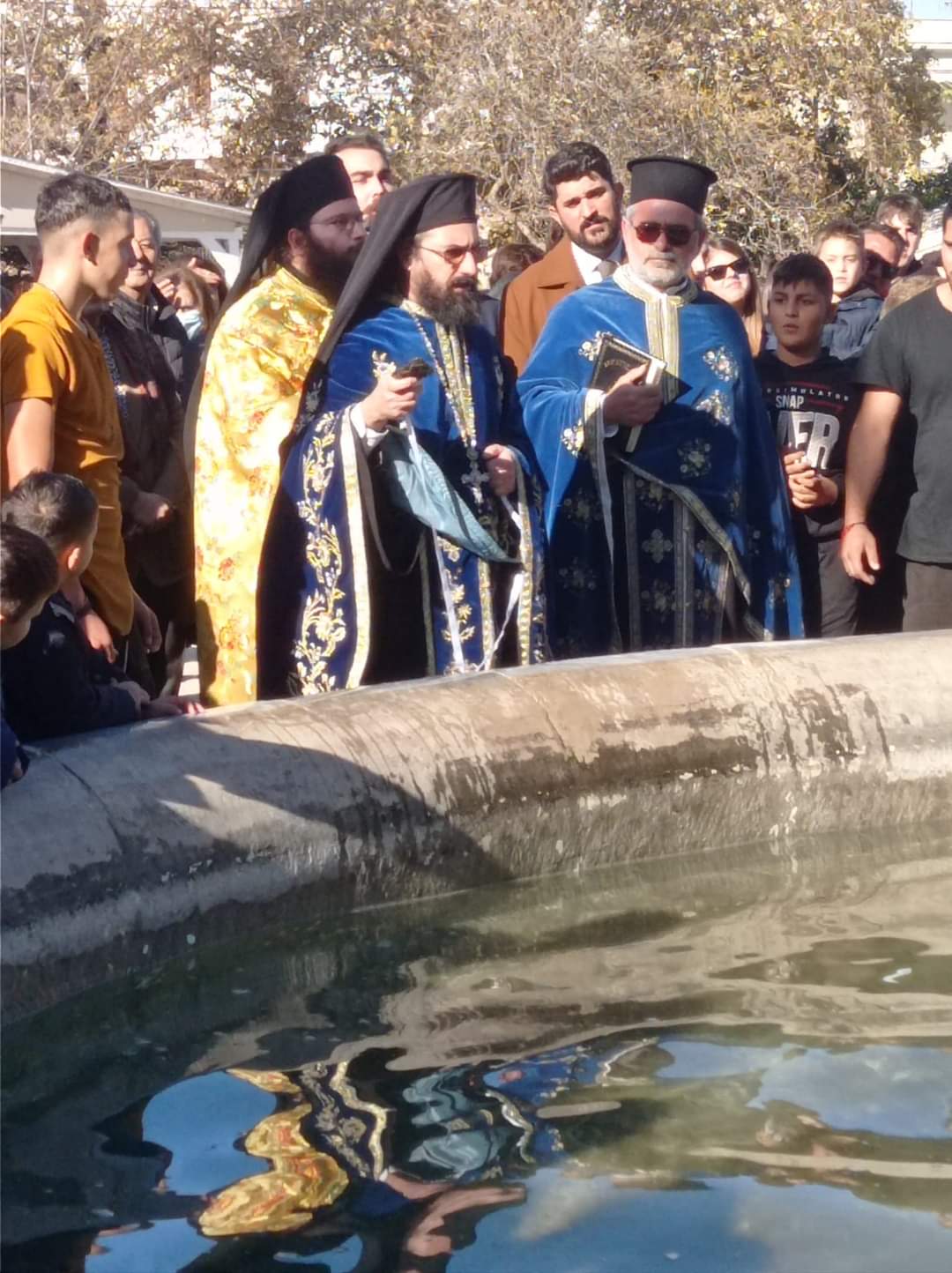 Ο καθαγιασμός των υδάτων έγινε στο συντριβάνι της κεντρικής πλατείας της πόλης παρουσία πλήθους πιστών, ενώ δύο νεαροί βούτηξαν για να ανασύρουν τον Τίμιο Σταυρό.