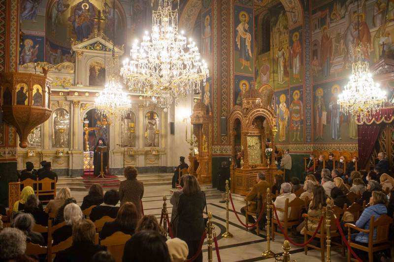 Συμπροσευχόμενος με τον μητροπολίτη Μεσσηνίας Χρυσόστομο από το ιερό βήμα, την ακολουθία τέλεσε ο πρωτοσύγκελλος της μητρόπολης αρχιμανδρίτης Φίλιππος Χαμαργιάς με τον διάκονο Θεόφιλο Κυριάκο και παρισταμένους το σύνολο των κληρικών της πόλης της Καλαμάτας και από τις ενορίες της περιφέρειας.