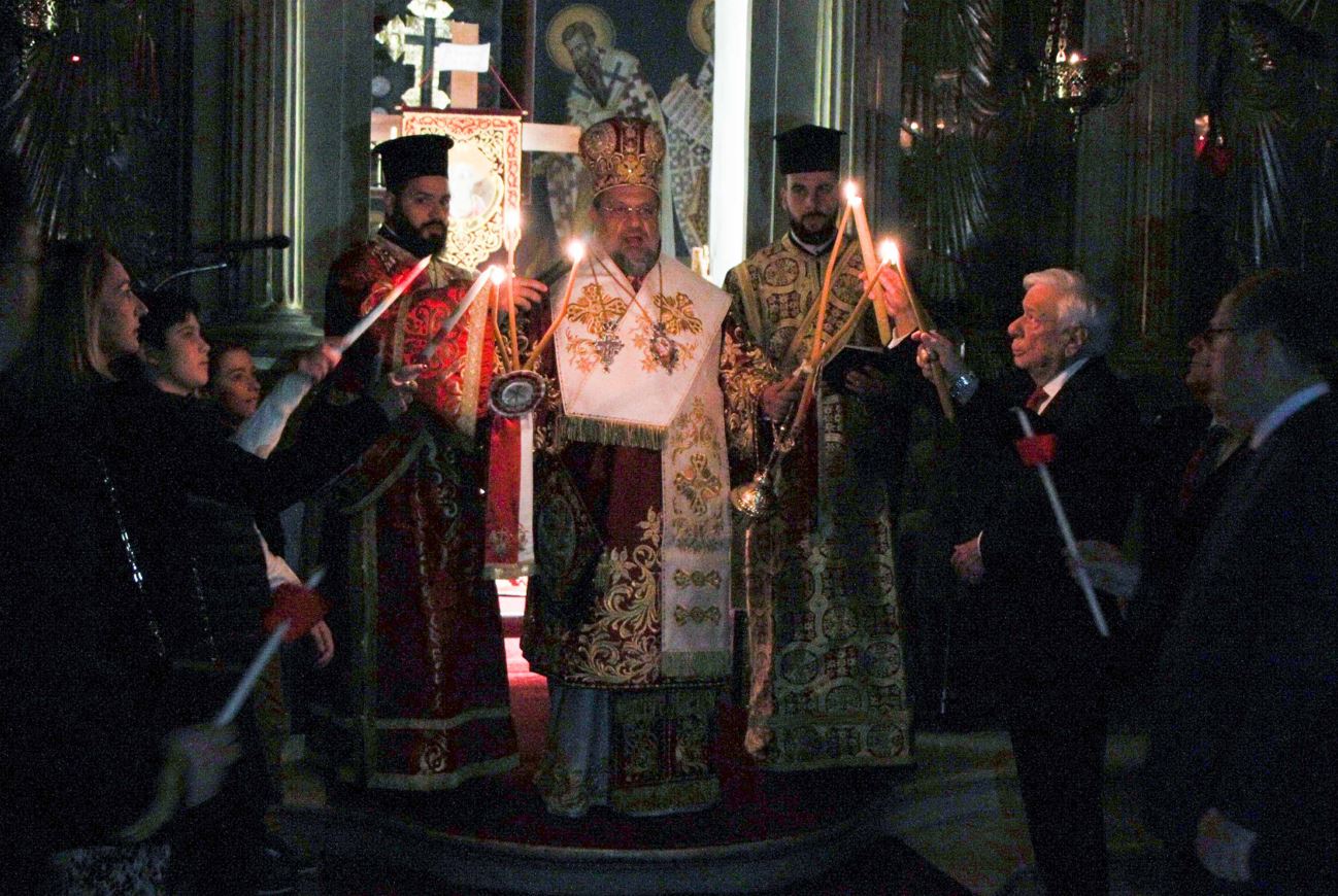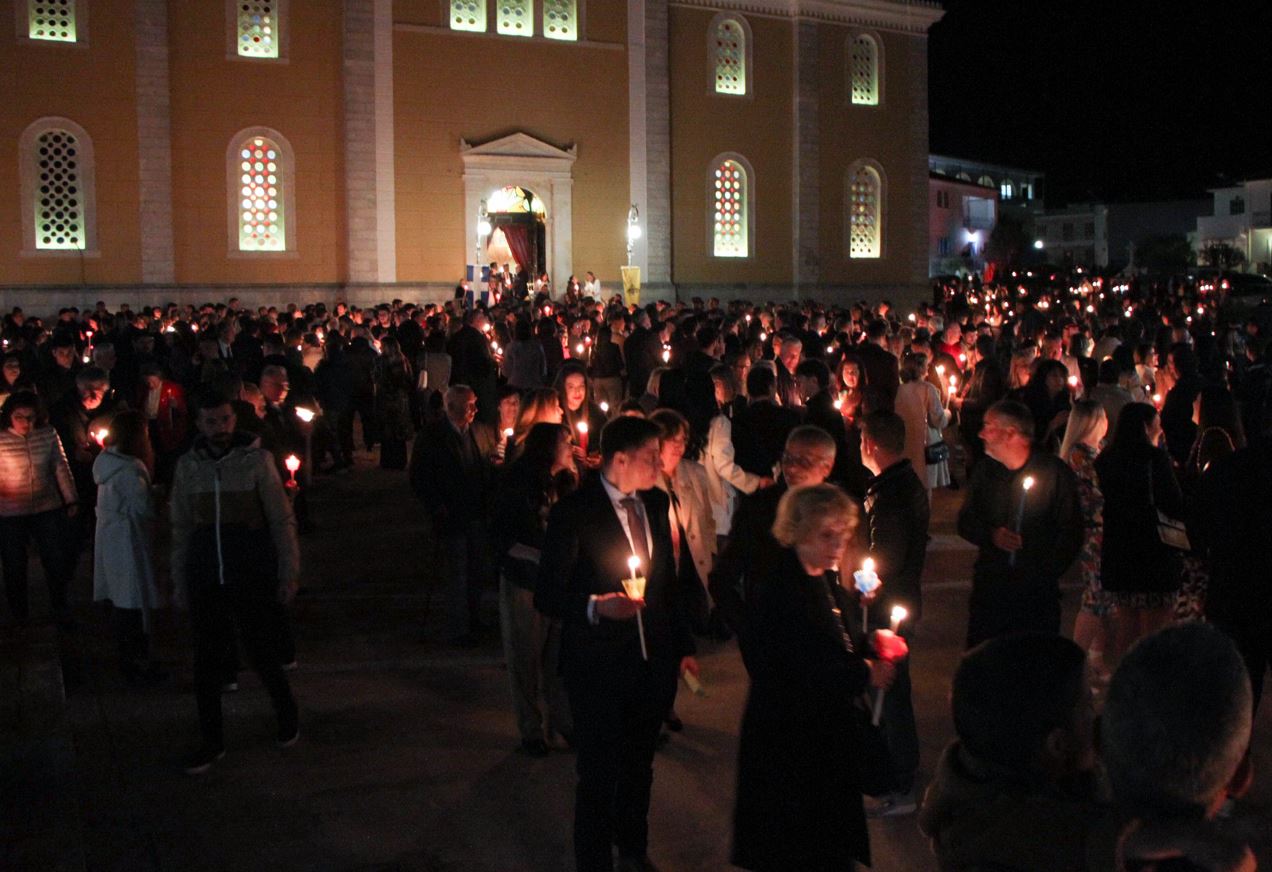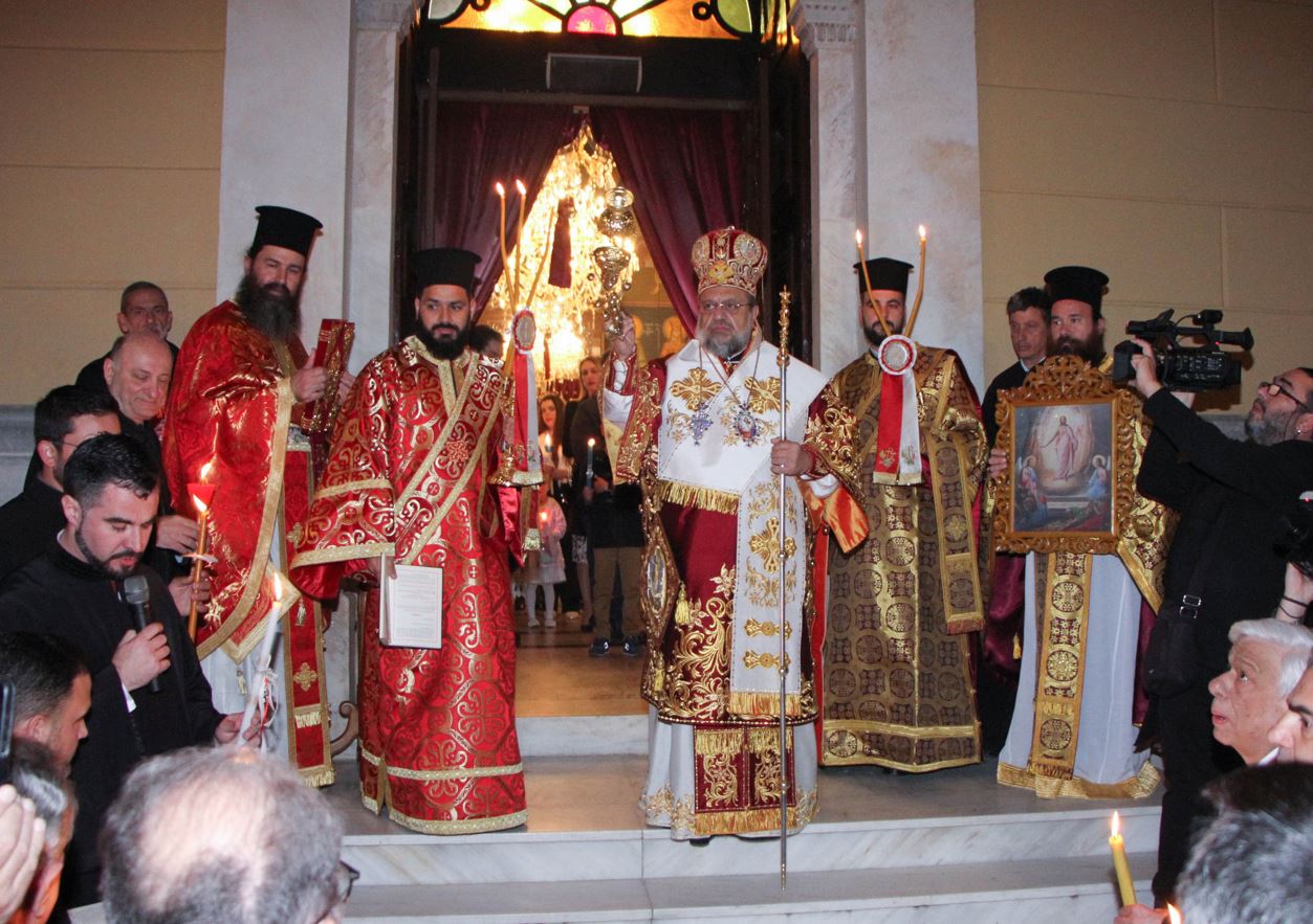 Αφού μετέδωσε το Άγιο Φως, προέστη της τελετής της Αναστάσεως στον αύλειο χώρο του Μητροπολιτικού Ναού, παρουσία εκπροσώπων Αρχών και Φορέων και πλήθους πιστών.