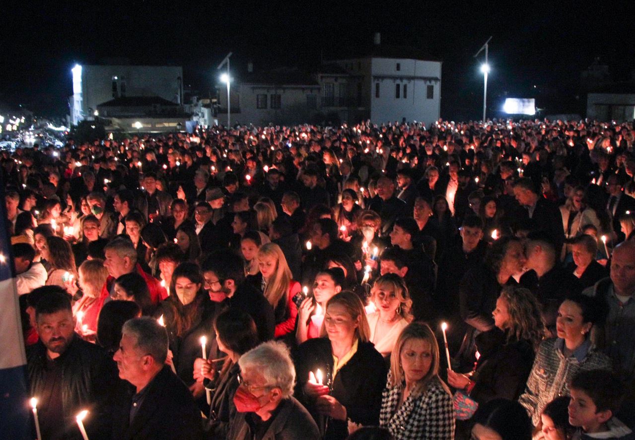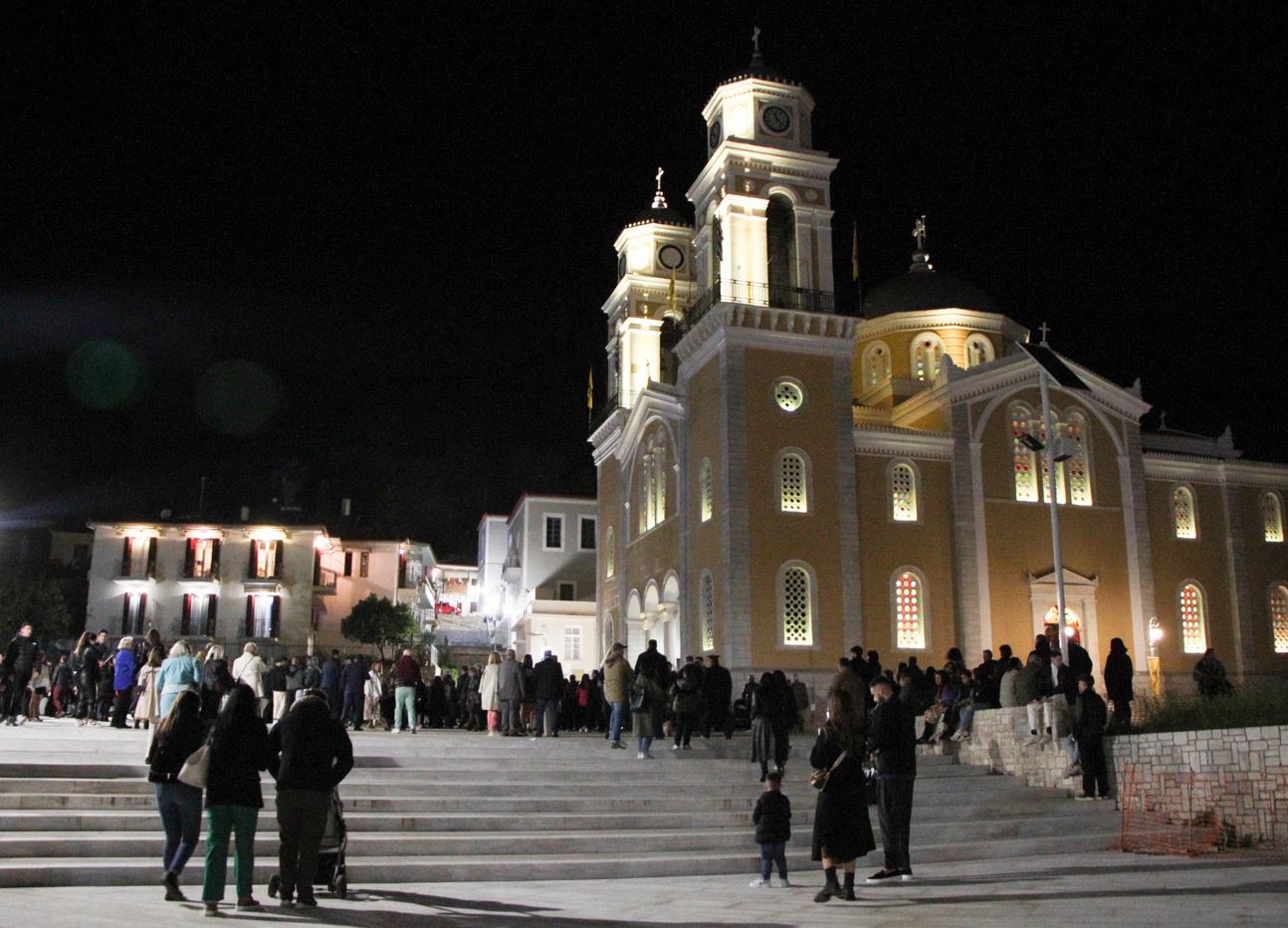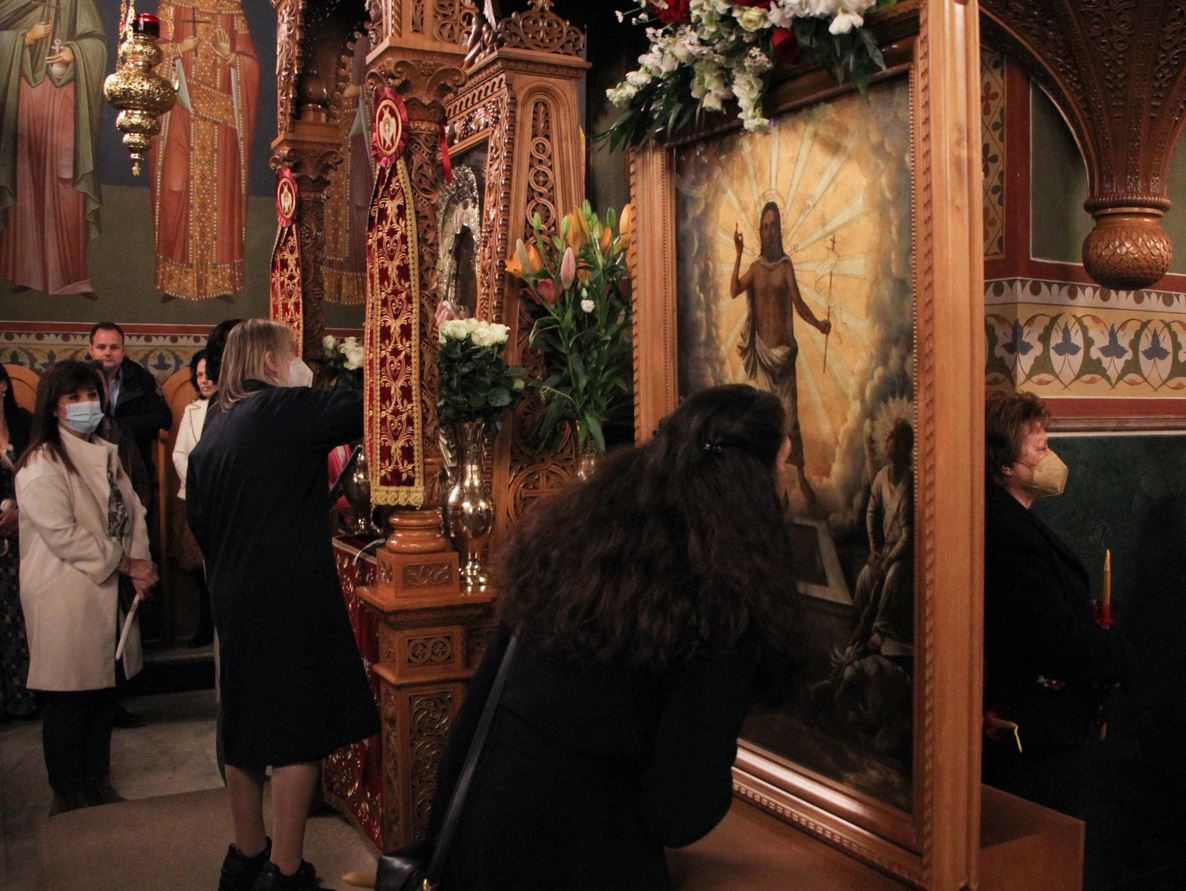 Αφού μετέδωσε το Άγιο Φως, προέστη της τελετής της Αναστάσεως στον αύλειο χώρο του Μητροπολιτικού Ναού, παρουσία εκπροσώπων Αρχών και Φορέων και πλήθους πιστών.
