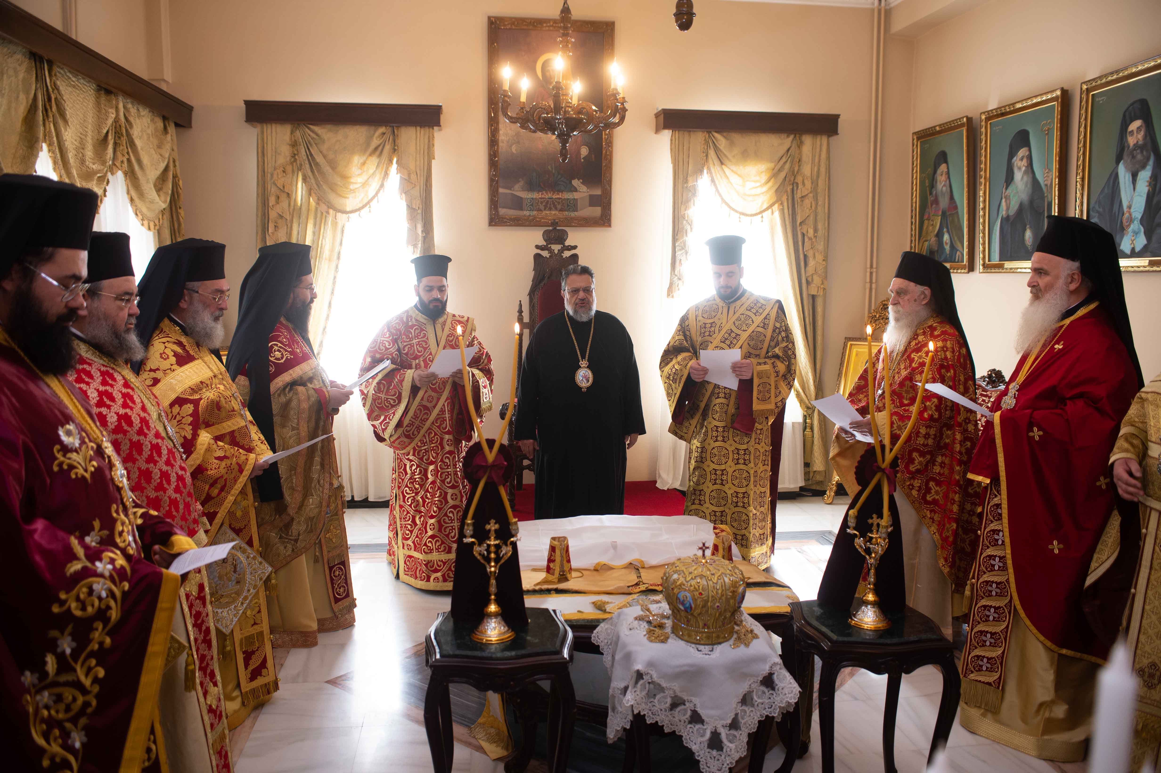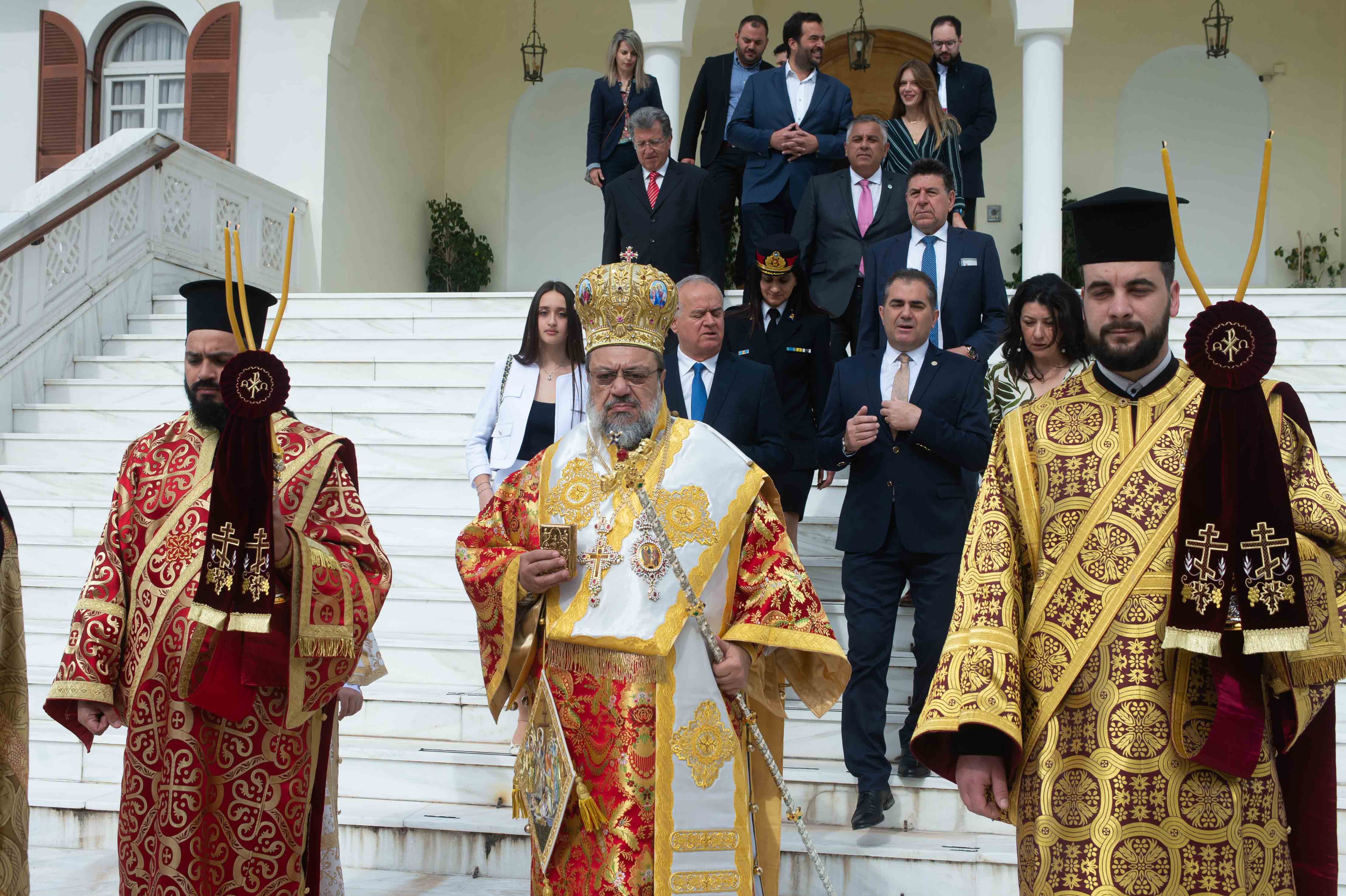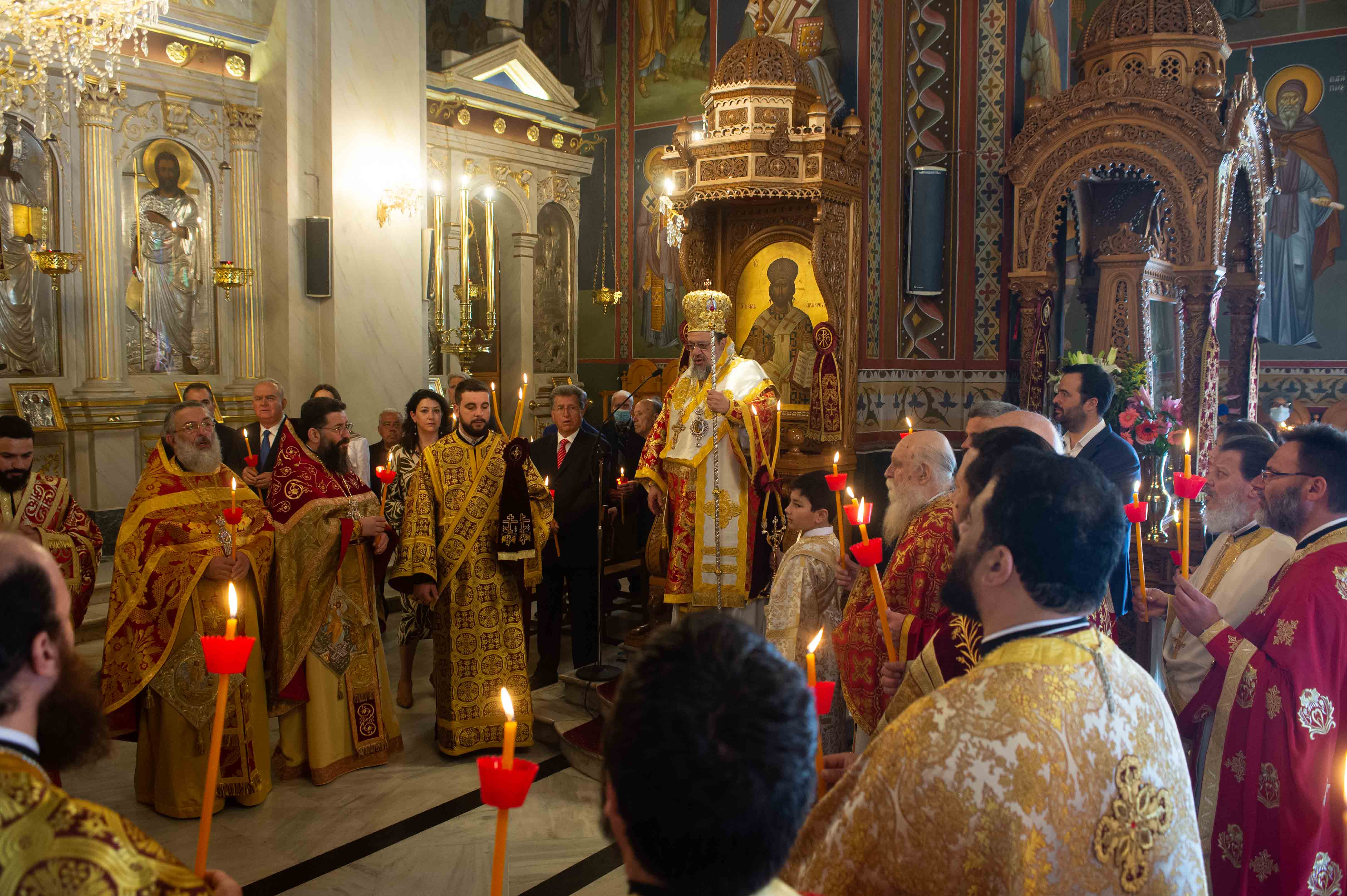 Συγκεκριμένα ο Σεβασμιώτατος ανέγνωσε το Ευαγγέλιο στην Γαλλική, ο Ιεροκήρυκας της Ιεράς Μητροπόλεως Αρχιμ. Γεώργιος Μπίζας στην Λατινική, ο Αρχιμ. Αλέξιος Αρώνης στην Αγγλική, ο Πρωτοσύγκελλος της Ιεράς Μητροπόλεως Αρχιμ. Φίλιππος Χαμαργιάς στην Τουρκική και ο Διάκονος Θεόφιλος Κυριάκος στην Ελληνική.