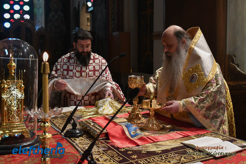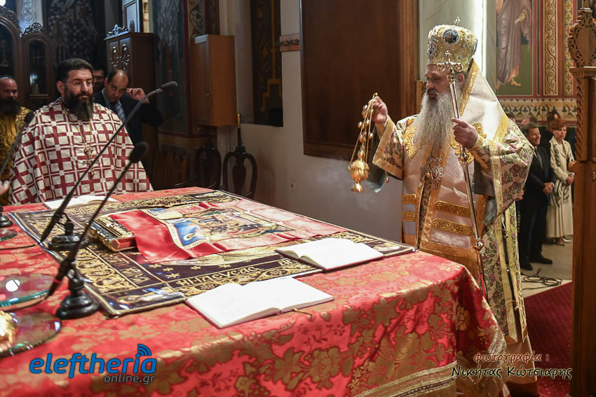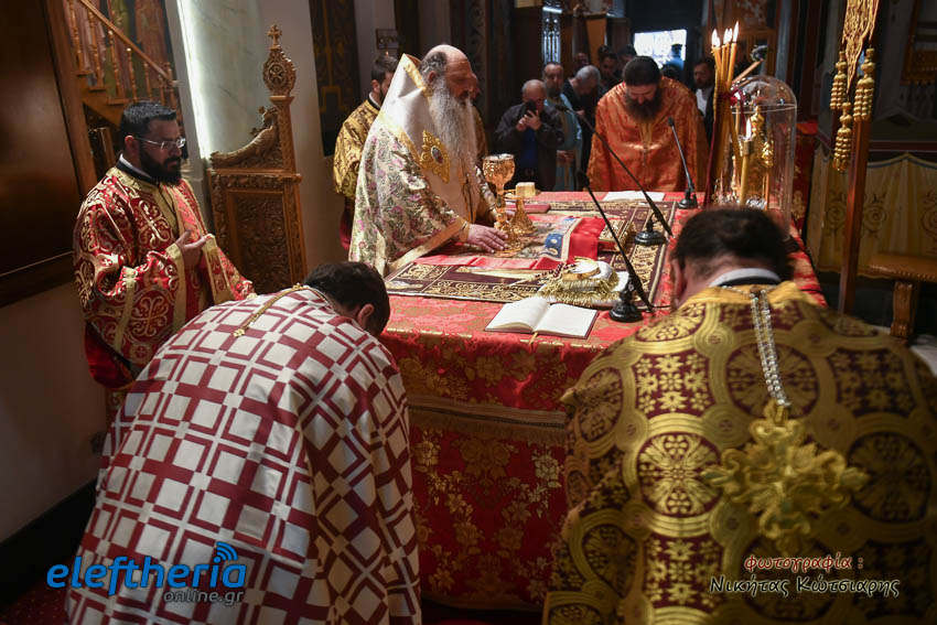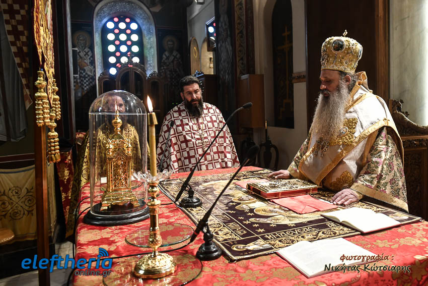 Το πρωί χοροστάτησε στον Όρθρο και εν συνεχεία προέστη της Θείας Λειτουργίας ο Μητροπολίτης Σταγών και Μετεώρων Θεόκλητος, προσκληθείς προς τούτο υπό του οικείου Ποιμενάρχη Μητροπολίτη Μεσσηνίας Χρυσοστόμου.