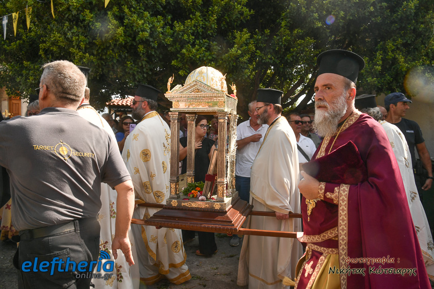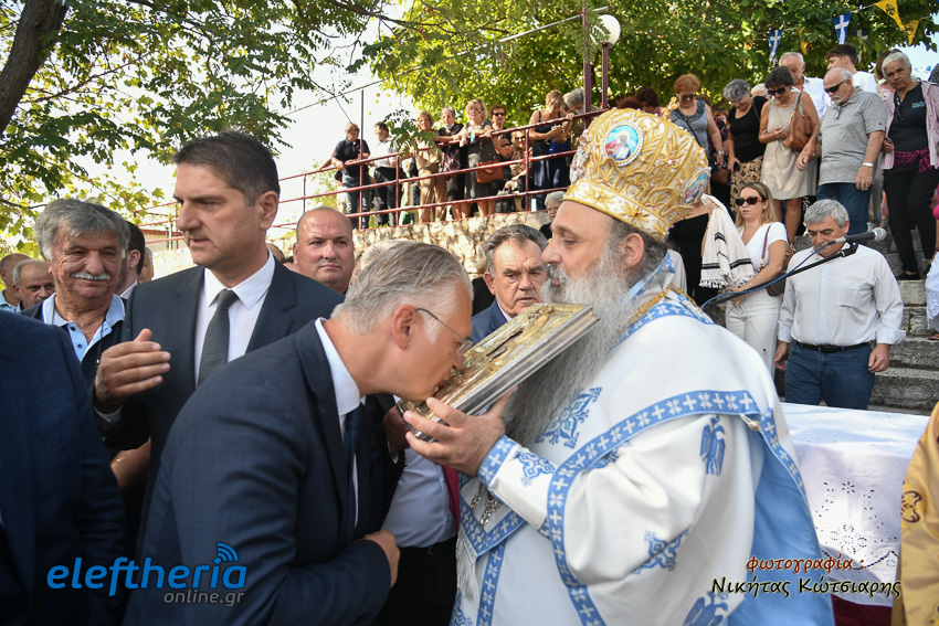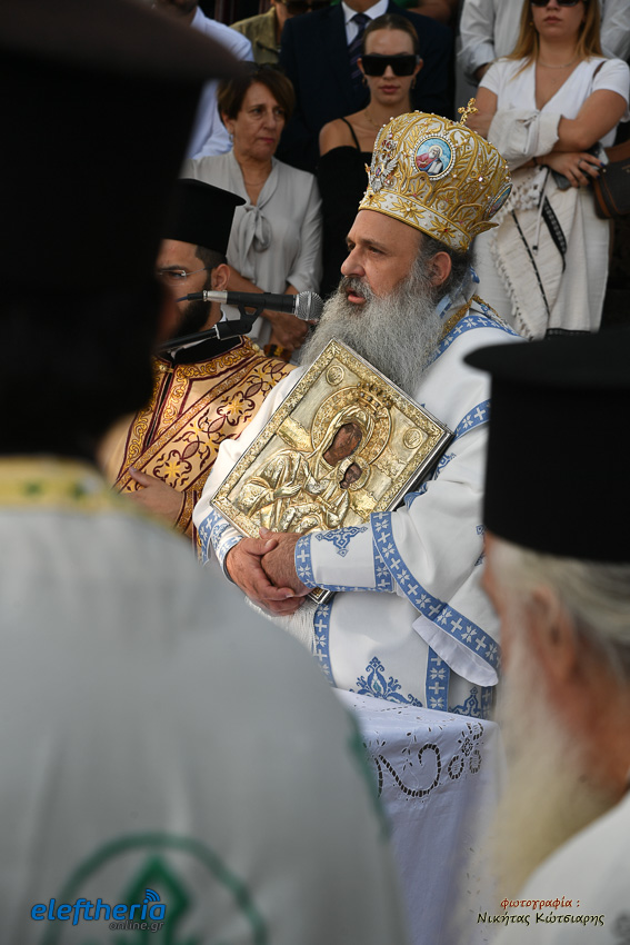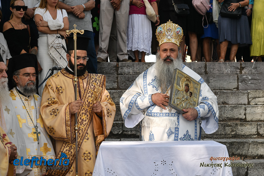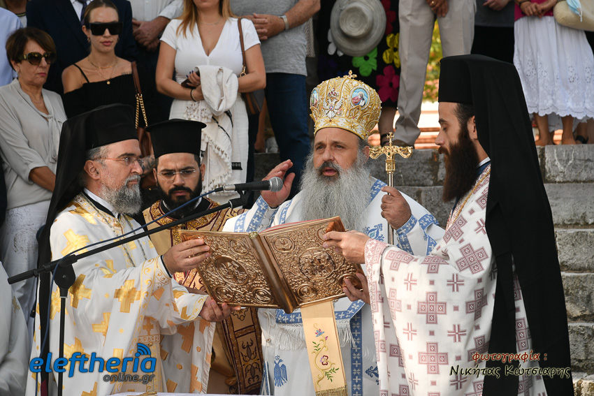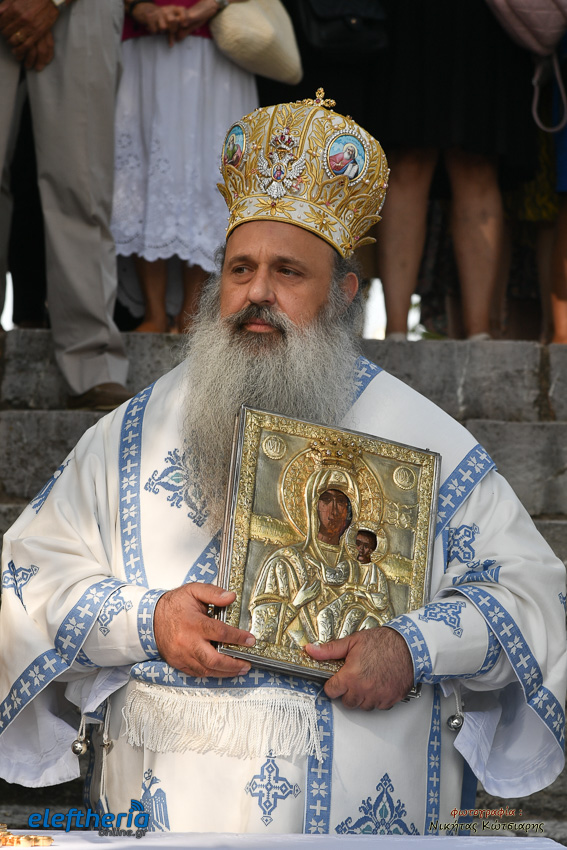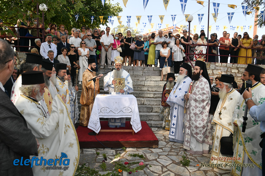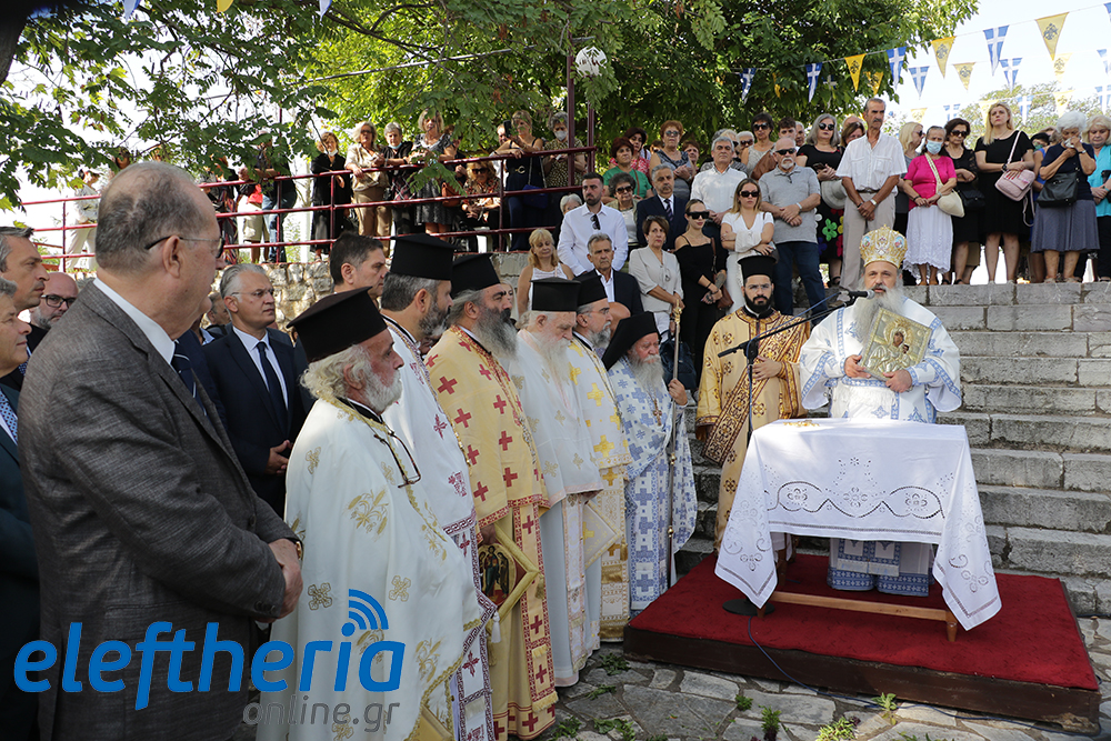 Ο μητροπολίτης Σταγών και Μετεώρων, απευθυνόμενος στους πιστούς, αναφέρθηκε στην χάρη και την προστασία της Παναγίας στο ανθρώπινο γένος, τονίζοντας ότι η Υπεραγία Θεοτόκος δεν βρίσκεται στο παράδεισο αλλά στον κόσμο και δίπλα στον κάθε άνθρωπο που την επικαλείται στις δοκιμασίες, αλλά και τις χαρές της ζωής.