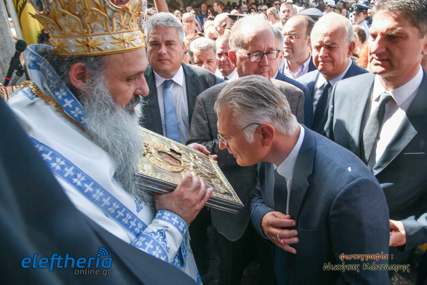 Της υποδοχής και της λιτανείας προέστη ο μητροπολίτης Σταγών και Μετεώρων Θεόκλητος, καθώς ο μητροπολίτης Μεσσηνίας Χρυσόστομος απουσίαζε σε ανειλημμένη υποχρέωση στο εξωτερικό.