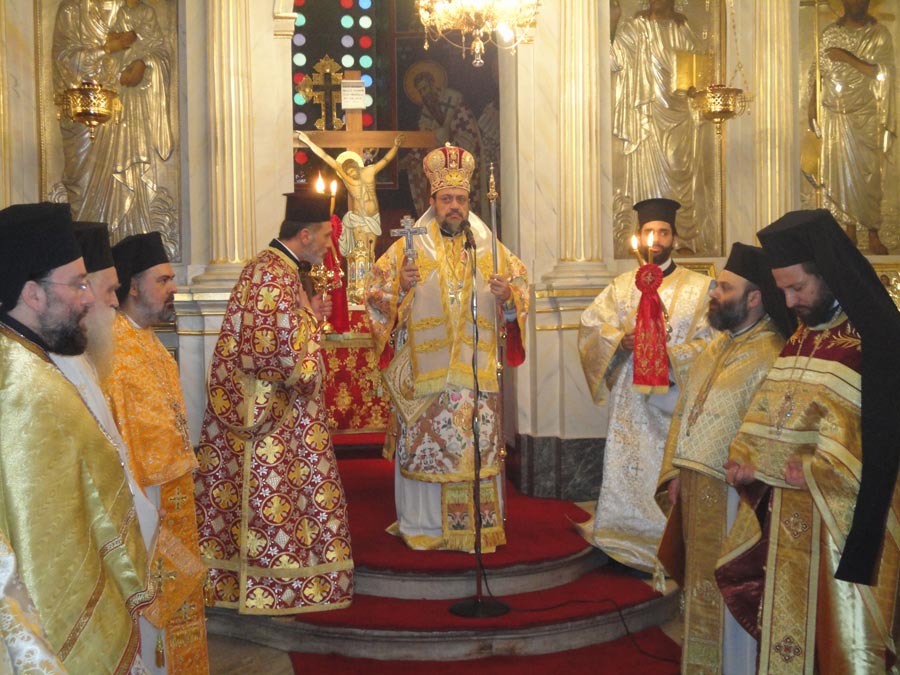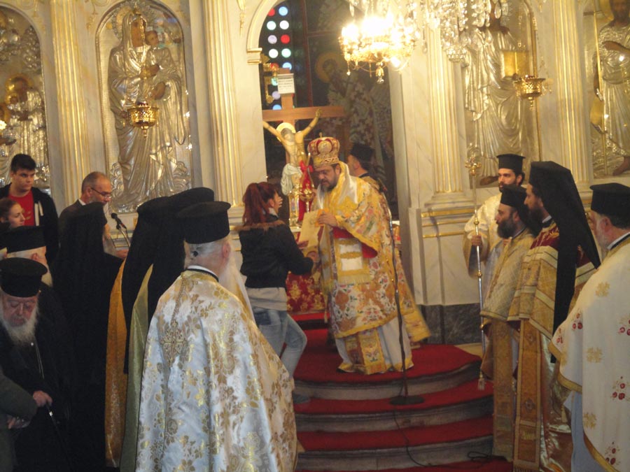 Στον εσπερινό χοροστάτησε ο μητροπολίτης Μαραθώνος Μελίτων, συγχοροστατούντων των μητροπολιτών Σύρου Δωρόθεου και Μεσσηνίας Χρυσόστομου.