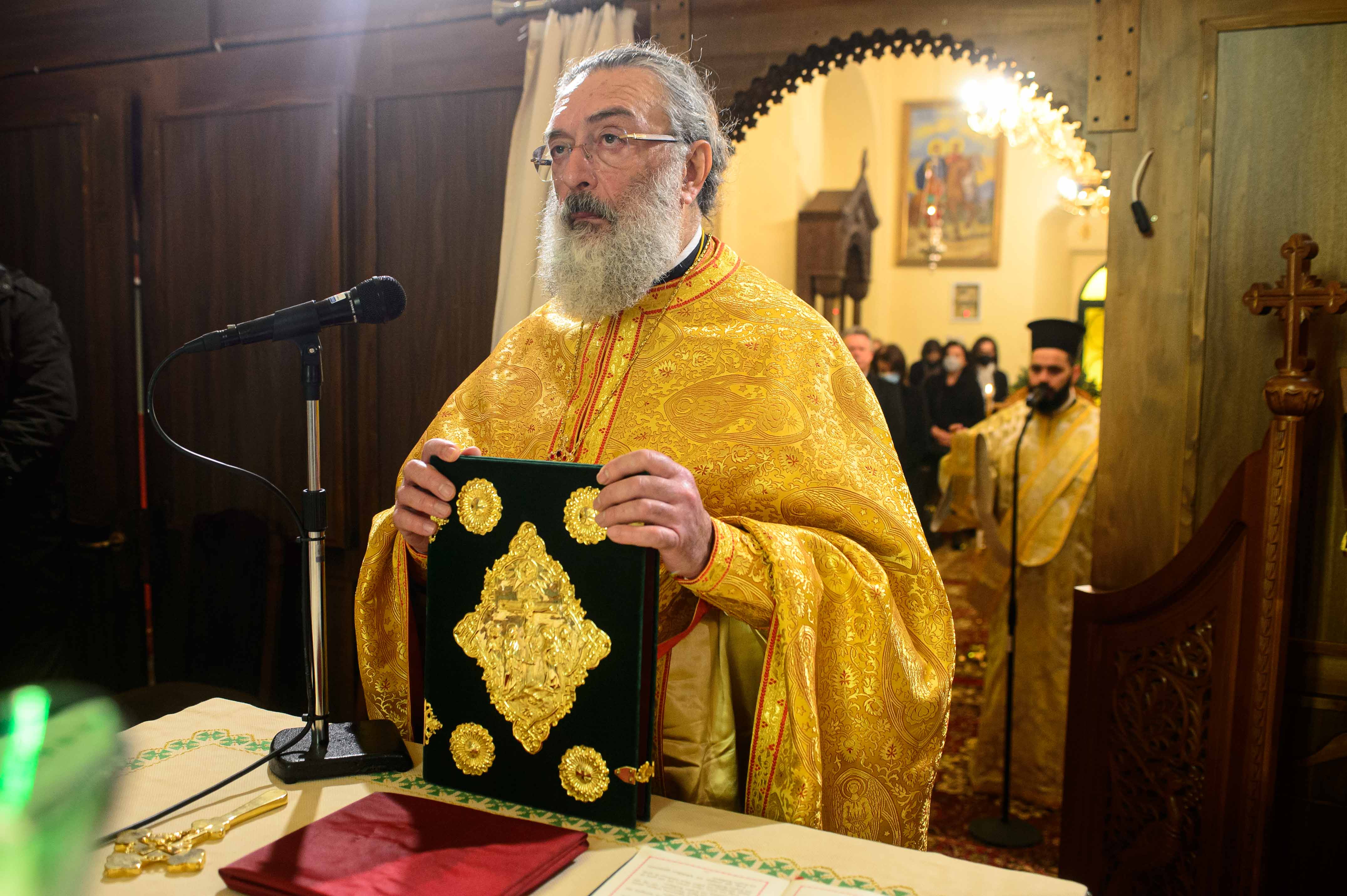Μετά το πέρας της θείας Λειτουργίας ο Σεβασμιώτατος αναφέρθηκε στο μεγάλο αυτό έργο και συνεχάρη τον π. Χριστοφόρο και τους εθελοντές που συμπαρίστανται σε αυτό.