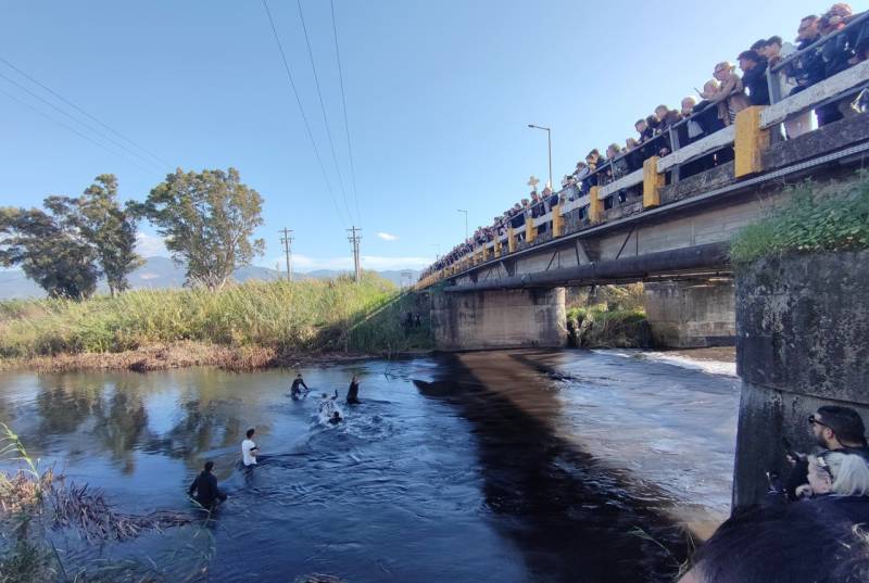 Από τους τολμηρούς που βούτηξαν στα νερά του ποταμού για να πιάσουν τον Τίμιο Σταυρό, ο τυχερός που έπιασε τον Σταυρό ήταν ο Δημήτρης Κοντομανωλόπουλος, ο οποίος στη συνέχεια Τον περιέφερε στο κέντρο της πόλης για να τον προσκυνήσουν οι πιστοί και να λάβουν την ευλογία του.