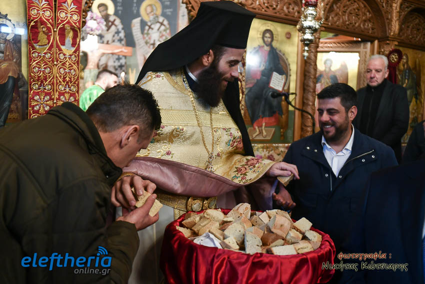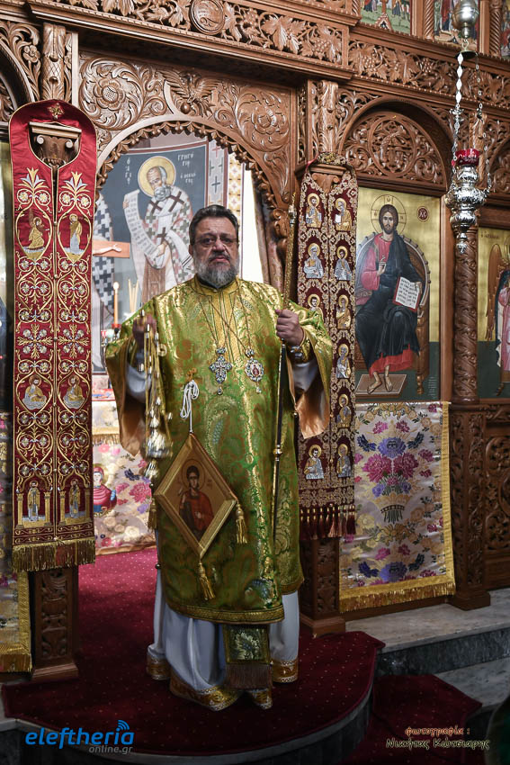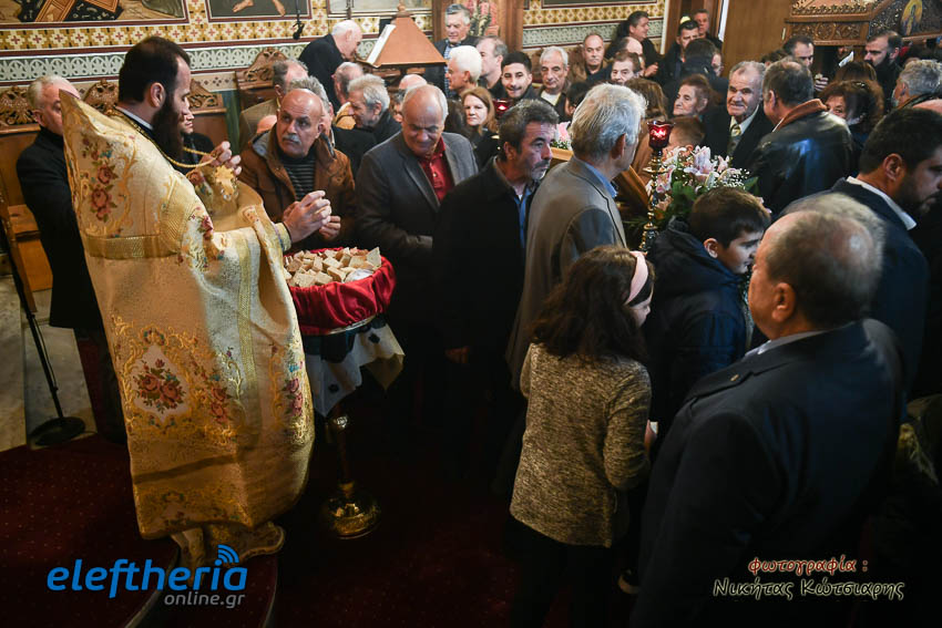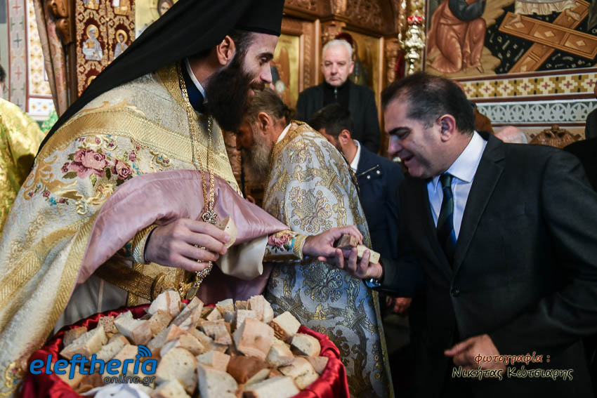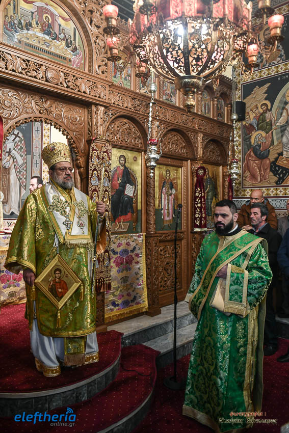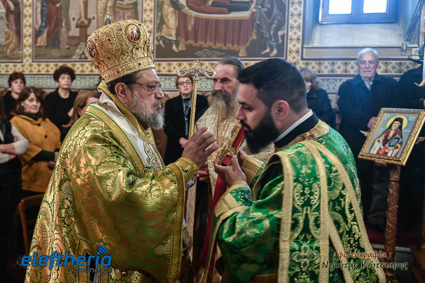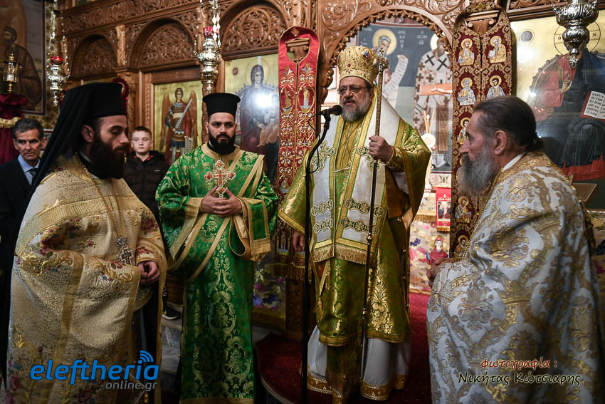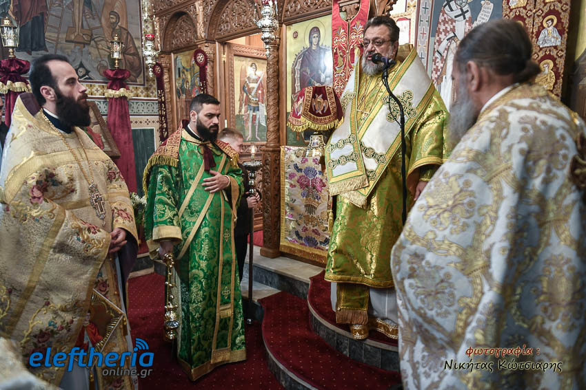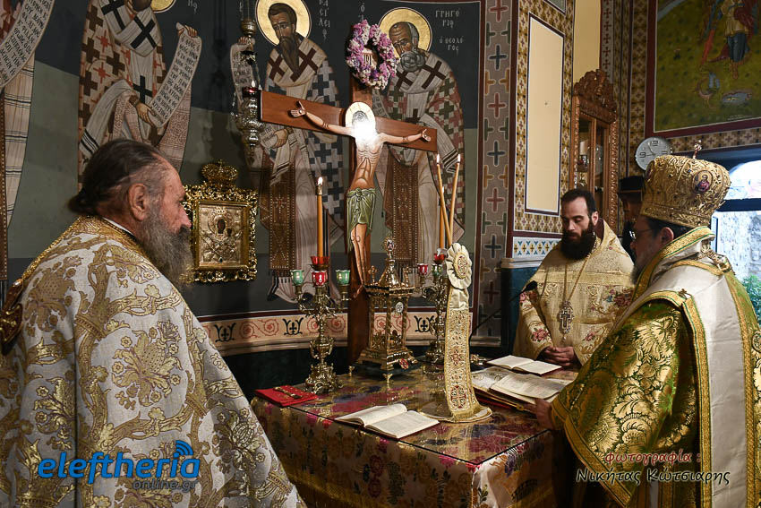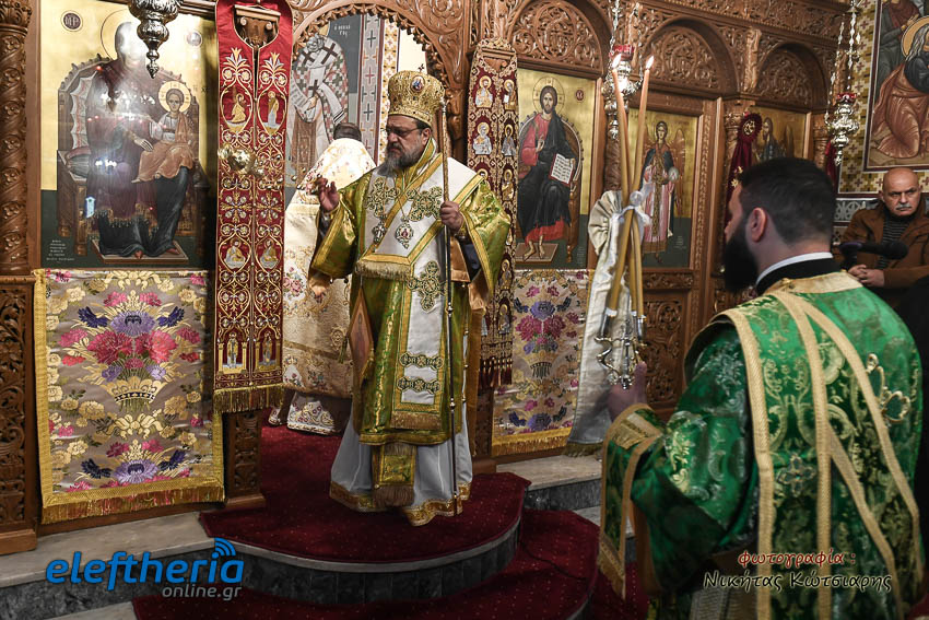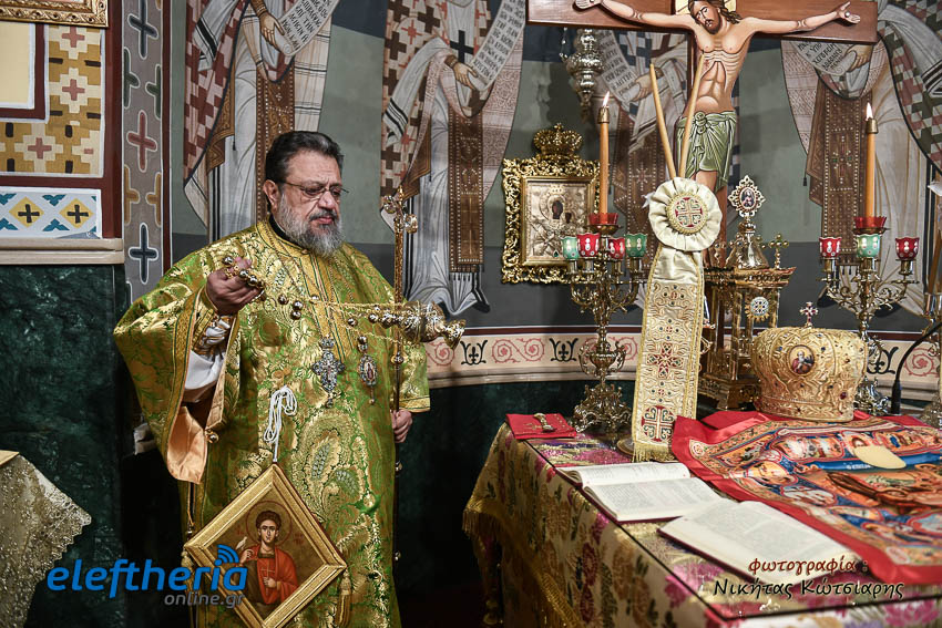Τον Σεβασμιώτατο πλαισίωσαν ο εφημέριος του χωριού Αρχιμ. Νεόφυτος Σαχλάς, ο συνταξιούχος εφημέριος π. Βασίλειος Μαλαπάνης και ο Διάκονος Θεόφιλος Κυριάκος. Ο Σεβαμσιώτατος κηρύττοντας τον θείο λόγο αναφέρθηκε στα μηνύματα της ευαγγελικής περικοπής των Δέκα Λεπρών και ευχήθηκε στον άγοντα τα ονομαστήριά του π. Νεόφυτο τα δέοντα. Παρέστησαν μεταξύ άλλων ο Δήμαρχος Καλαμάτας Θανάσης Βασιλόπουλος, ο Βουλευτής Μεσσηνίας Περικλής Μαντάς, ο Αντιπεριφερειάρχης Μεσσηνίας Στάθης Αναστασόπουλος και ο Πρόεδρος του Μανιατακείου Ιδρύματος Δημήτρης Μανιατάκης.