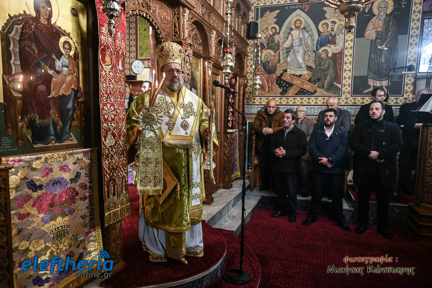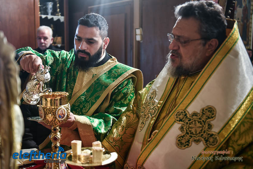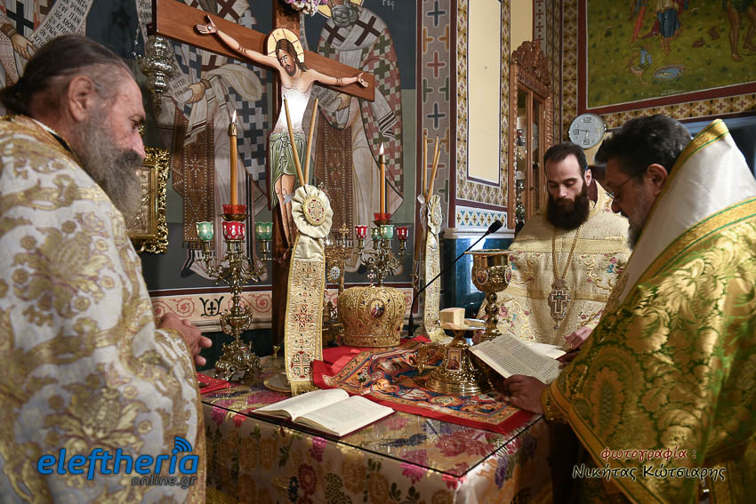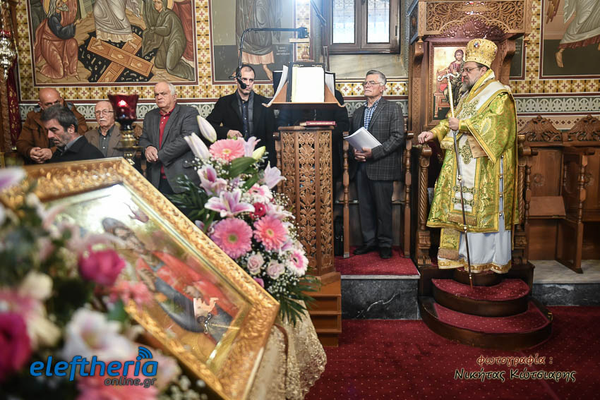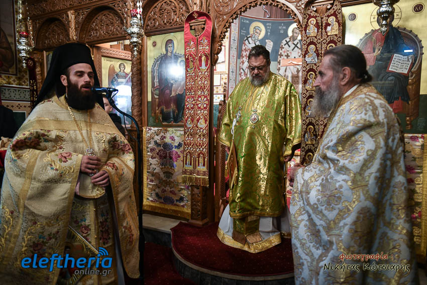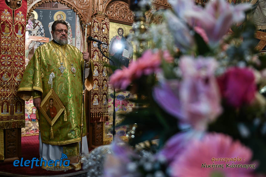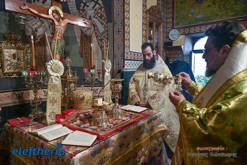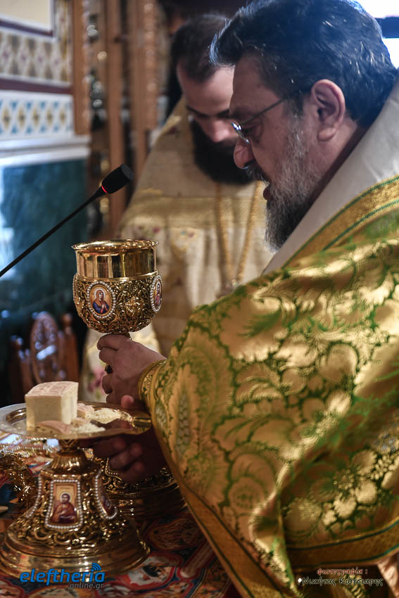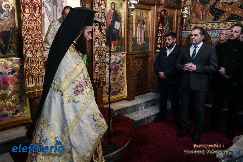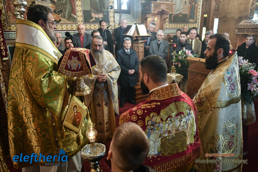 Τον Σεβασμιώτατο πλαισίωσαν ο εφημέριος του χωριού Αρχιμ. Νεόφυτος Σαχλάς, ο συνταξιούχος εφημέριος π. Βασίλειος Μαλαπάνης και ο Διάκονος Θεόφιλος Κυριάκος. Ο Σεβαμσιώτατος κηρύττοντας τον θείο λόγο αναφέρθηκε στα μηνύματα της ευαγγελικής περικοπής των Δέκα Λεπρών και ευχήθηκε στον άγοντα τα ονομαστήριά του π. Νεόφυτο τα δέοντα. Παρέστησαν μεταξύ άλλων ο Δήμαρχος Καλαμάτας Θανάσης Βασιλόπουλος, ο Βουλευτής Μεσσηνίας Περικλής Μαντάς, ο Αντιπεριφερειάρχης Μεσσηνίας Στάθης Αναστασόπουλος και ο Πρόεδρος του Μανιατακείου Ιδρύματος Δημήτρης Μανιατάκης.