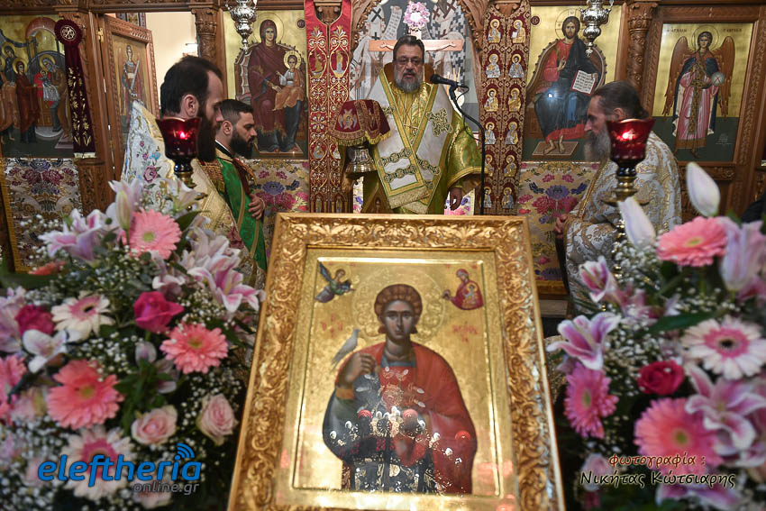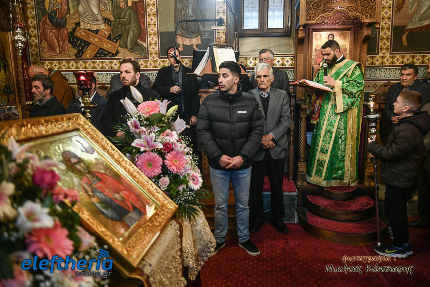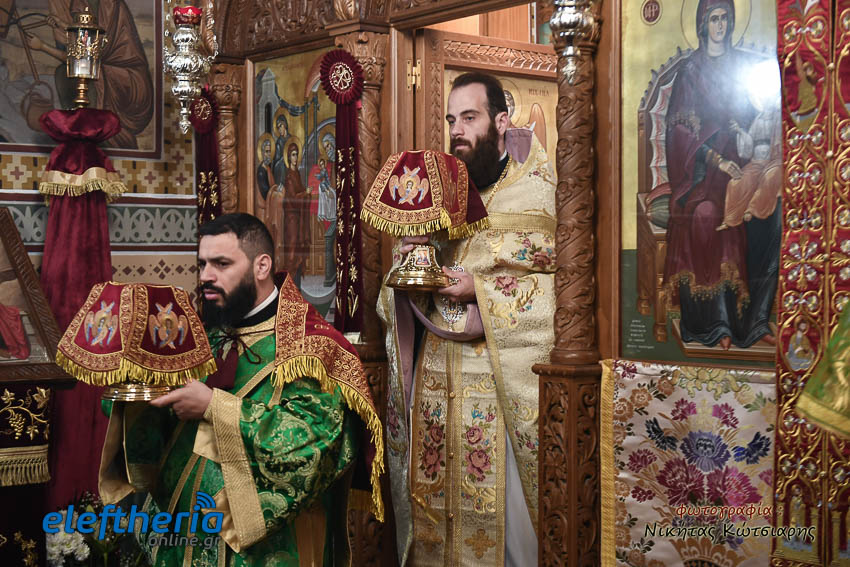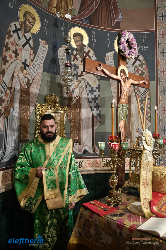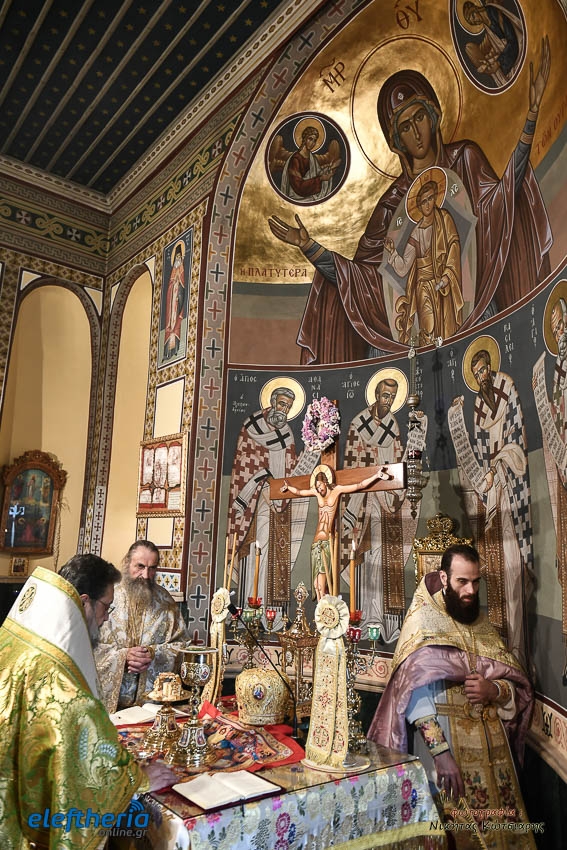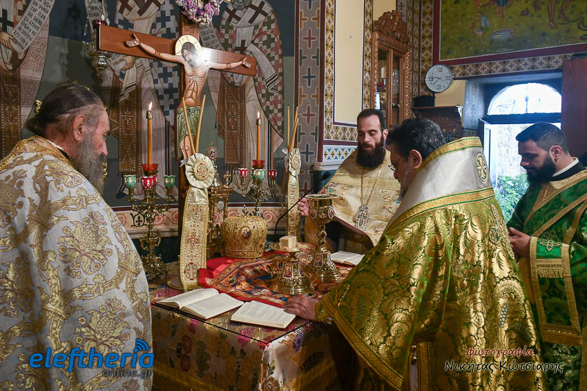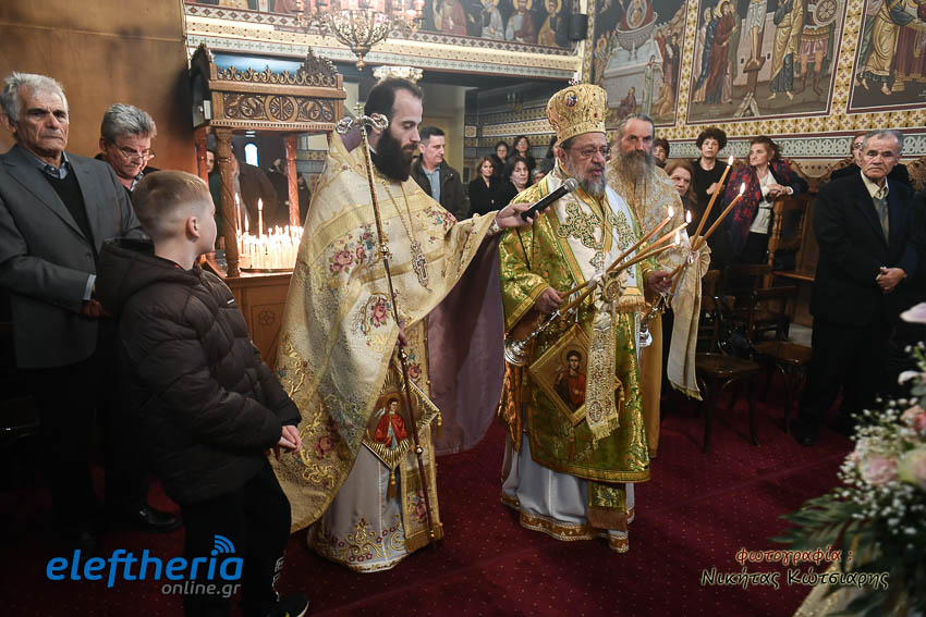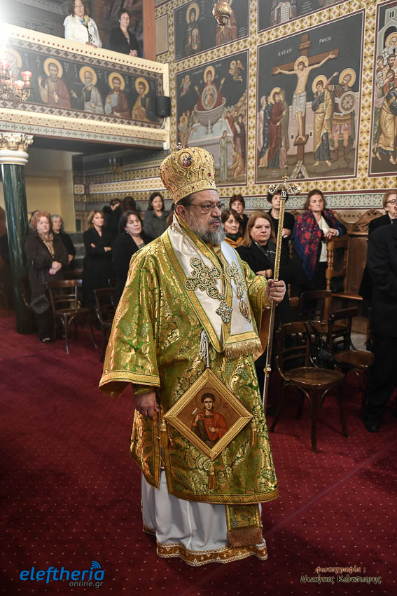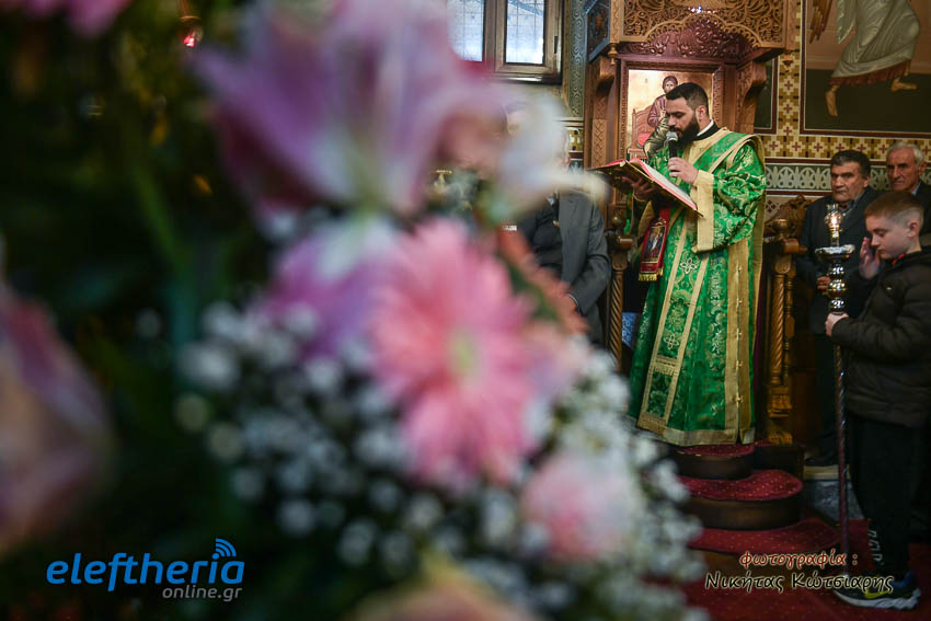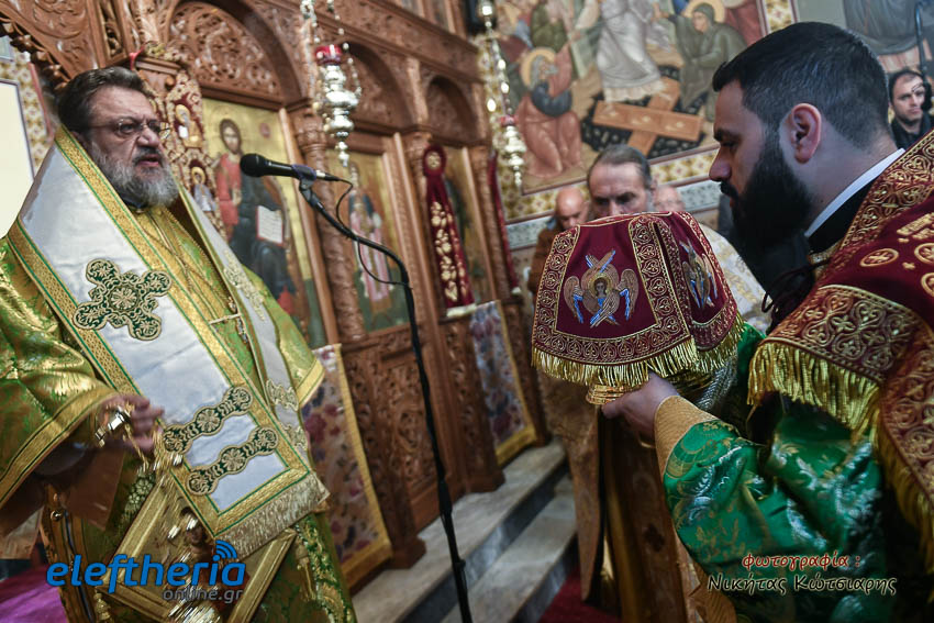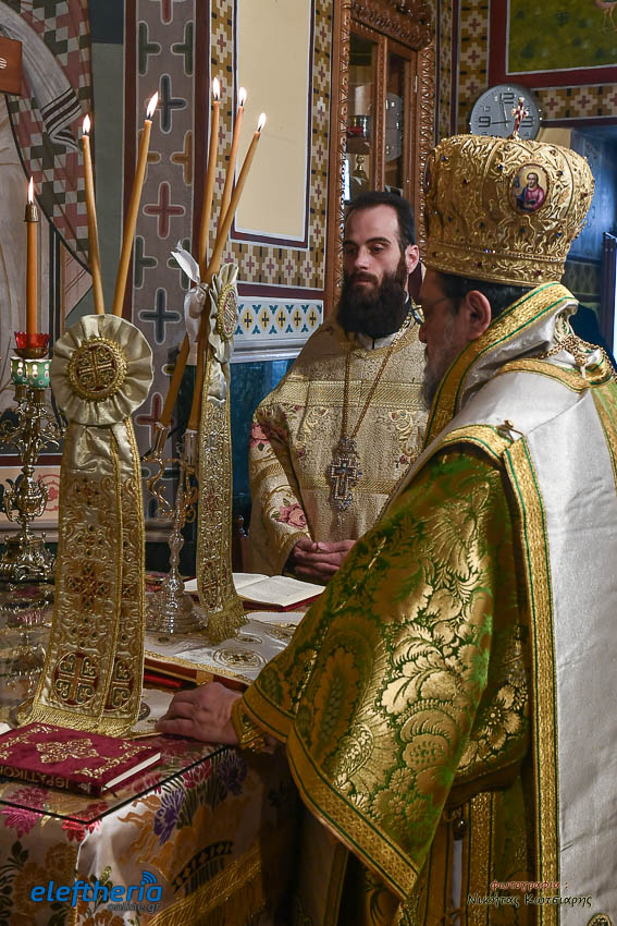 Τον Σεβασμιώτατο πλαισίωσαν ο εφημέριος του χωριού Αρχιμ. Νεόφυτος Σαχλάς, ο συνταξιούχος εφημέριος π. Βασίλειος Μαλαπάνης και ο Διάκονος Θεόφιλος Κυριάκος. Ο Σεβαμσιώτατος κηρύττοντας τον θείο λόγο αναφέρθηκε στα μηνύματα της ευαγγελικής περικοπής των Δέκα Λεπρών και ευχήθηκε στον άγοντα τα ονομαστήριά του π. Νεόφυτο τα δέοντα. Παρέστησαν μεταξύ άλλων ο Δήμαρχος Καλαμάτας Θανάσης Βασιλόπουλος, ο Βουλευτής Μεσσηνίας Περικλής Μαντάς, ο Αντιπεριφερειάρχης Μεσσηνίας Στάθης Αναστασόπουλος και ο Πρόεδρος του Μανιατακείου Ιδρύματος Δημήτρης Μανιατάκης.