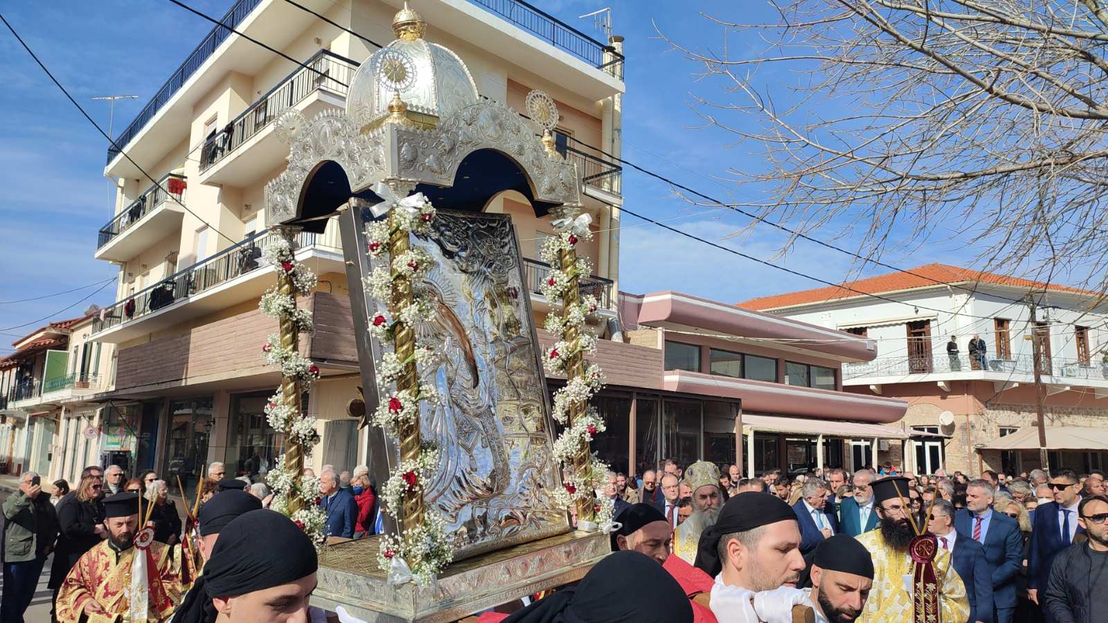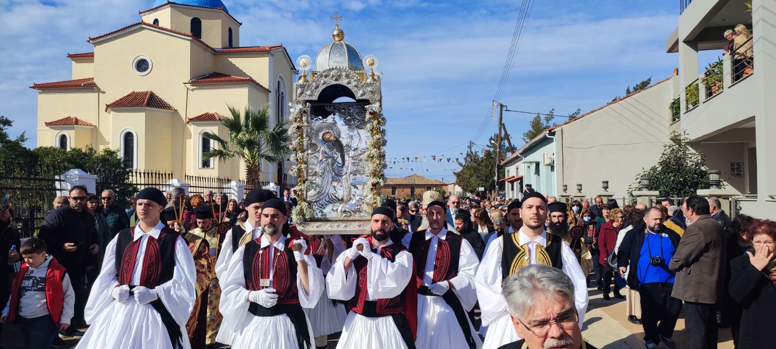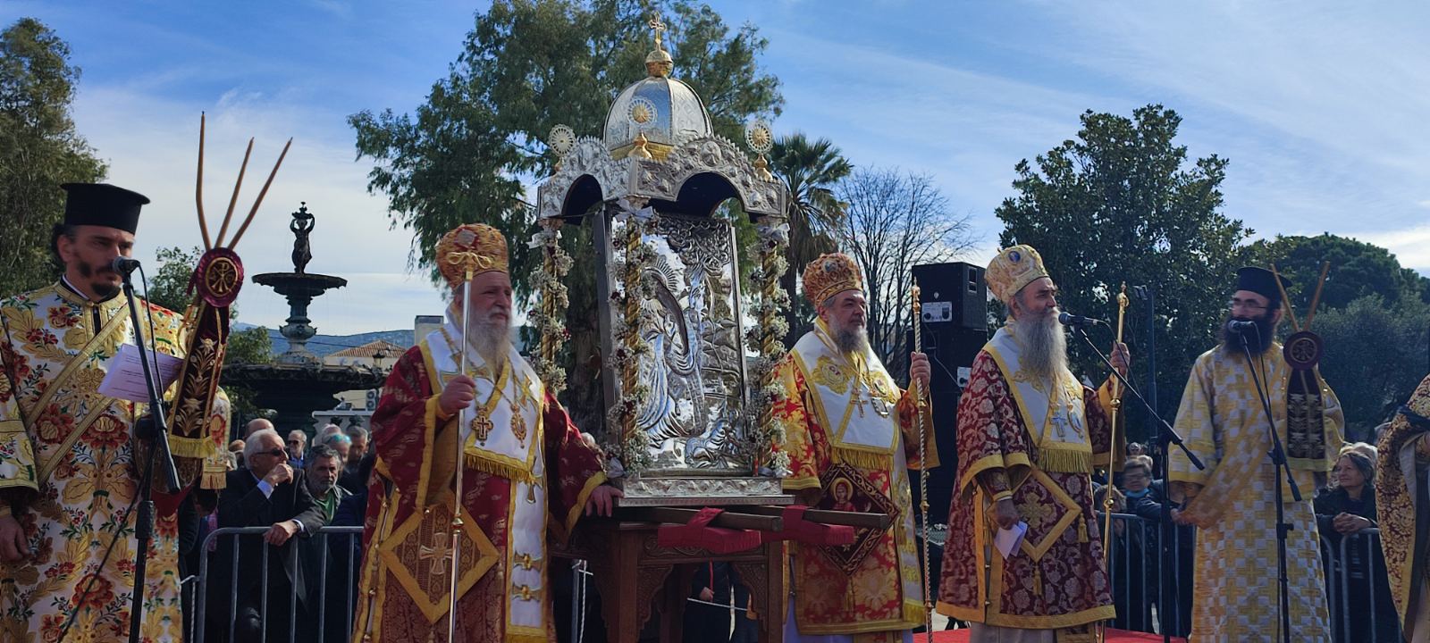 Μετά την πολυαρχιερατική Θεία Λειτουργία προεξάρχοντος του μητροπολίτη Γρεβενών Δαβίδ και συλλειτουργούντων των μητροπολιτών Γόρτυνος και Μεγαλοπόλεως Νικηφόρου και Τριφυλίας Ολυμπίας Χρυσοστόμου, ακολούθησε η λιτάνευση της εικόνας στο κέντρο της πόλης των Φιλιατρών.