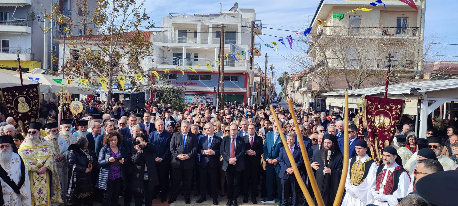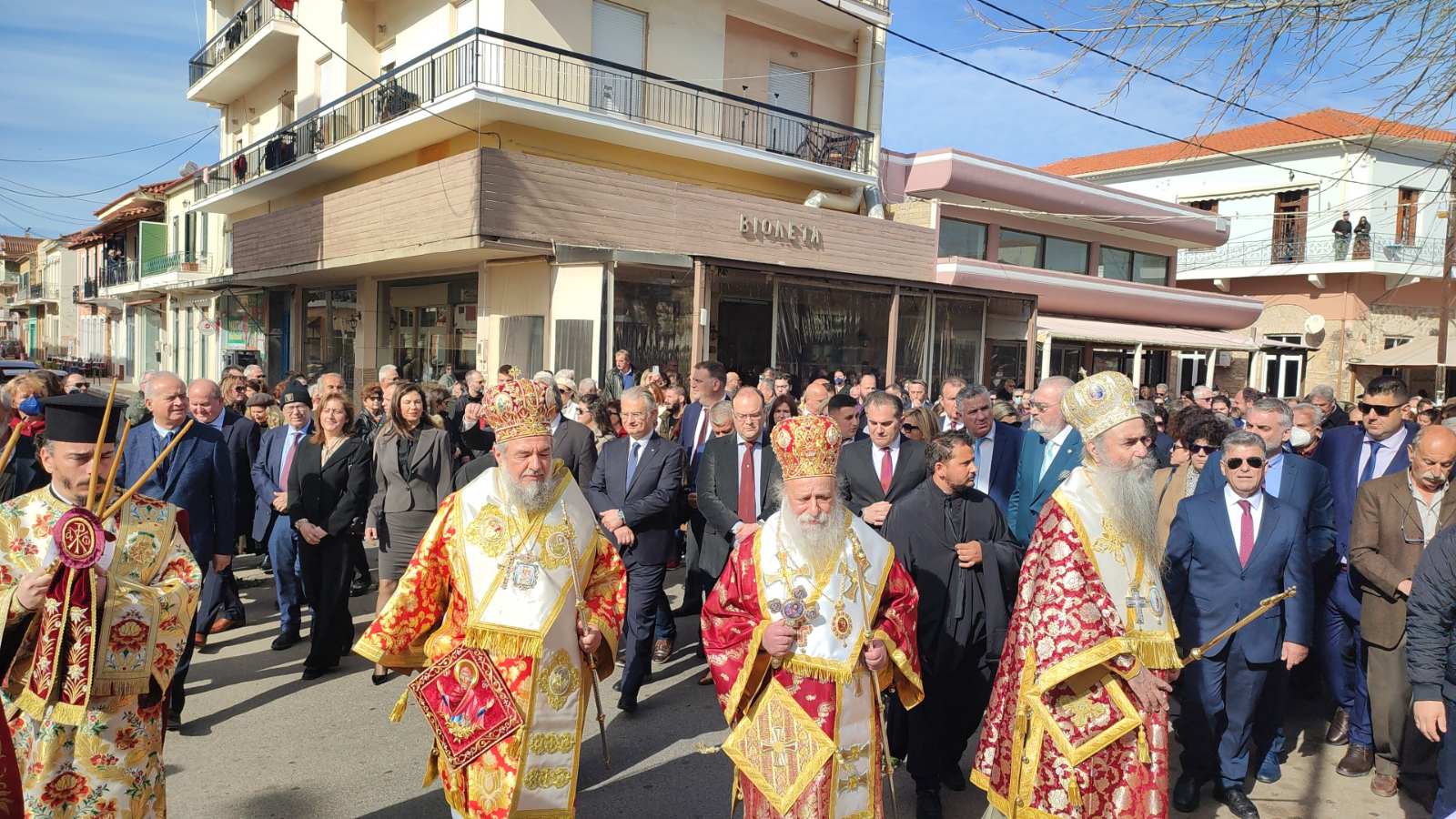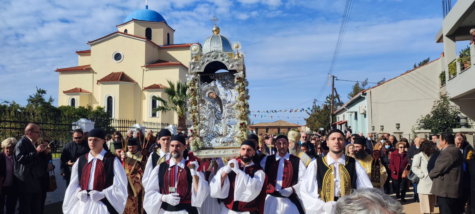 Μετά την πολυαρχιερατική Θεία Λειτουργία προεξάρχοντος του μητροπολίτη Γρεβενών Δαβίδ και συλλειτουργούντων των μητροπολιτών Γόρτυνος και Μεγαλοπόλεως Νικηφόρου και Τριφυλίας Ολυμπίας Χρυσοστόμου, ακολούθησε η λιτάνευση της εικόνας στο κέντρο της πόλης των Φιλιατρών.