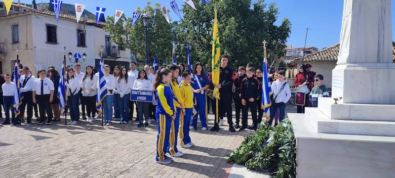 Στο χώρο του μνημείου τελέστηκε επιμνημόσυνη δέηση και ακολούθησε κατάθεση στεφάνων από το δήμαρχο Τριφυλίας Γιώργο Λεβεντάκη και μαθητές από τα σχολεία και τους αθλητικούς συλλόγους της πόλης. Τηρήθηκε ενός λεπτού σιγή και έγινε ανάκρουση του εθνικού ύμνου από τη Δημοτική Φιλαρμονική Κυπαρισσίας.