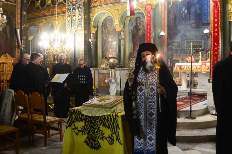 Κηρύττοντας τον θείο λόγο ο πατήρ Φίλιππος αναφέρθηκε στην αποφράδα ημέρα της άλωσης και τόνισε χαρακτηριστικά πως “η Ελληνική Ιστορία έχει γράψει με χρυσά γράμματα τις λέξεις και τις έννοιες Επανάσταση, Ελευθερία και Δημοκρατία. Η γείτονα χώρα έχει διαλέξει να γράψει με μελανά γράμματα τις λέξεις και τις έννοιες Άλωση, Γενοκτονία, Καταστροφή και