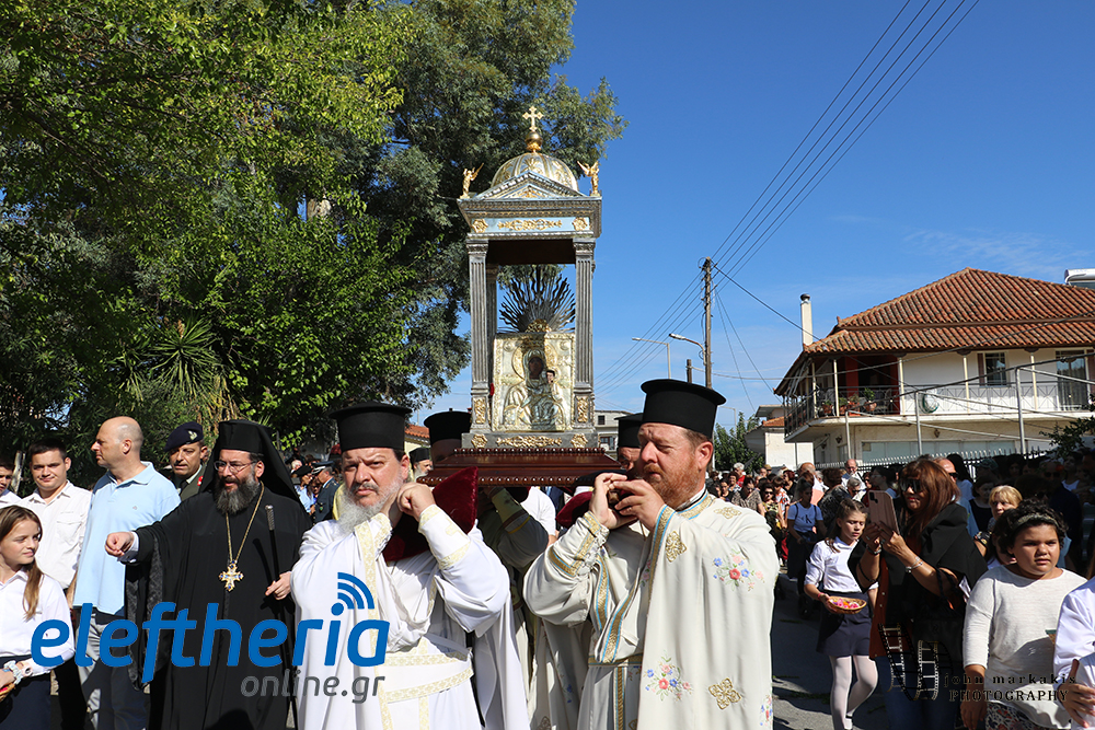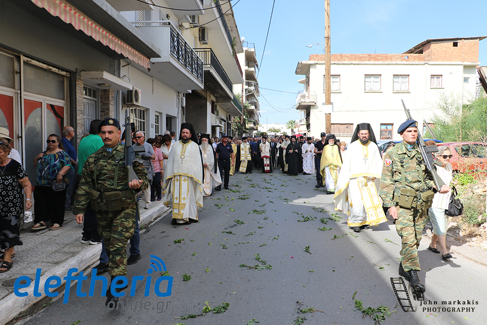 Της υποδοχής και της λιτανείας προέστησαν οι μητροπολίτες Θηβών και Λεβαδείας Γεώργιος, Σταγών και Μετεώρων Θεόκλητος και Μεσσηνίας Χρυσόστομος, συνοδεία του κλήρου, εκπροσώπων της Πολιτείας, τοπικών αρχών και πλήθους πιστών.