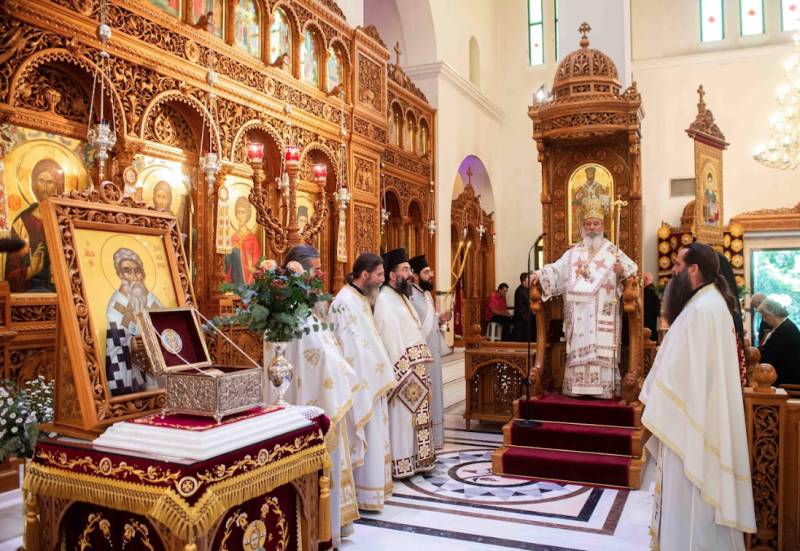Πριν το τέλος της λειτουργίας ο προϊστάμενος του ναού Αγίου Δημητρίου ευχαρίστησε τον μητροπολίτη Εφραίμ για την τιμητική παρουσία του και τον Μητροπολίτη Μεσσηνίας Χρυσόστομο για την ευμενή αποδοχή του αιτήματος της μεταφοράς του ιερού λειψάνου αλλά και τον κομήσαντα π. Φίλιππο για τον κόπο της μεταφοράς.