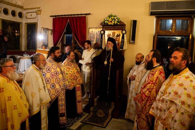 Του πανηγυρικού εσπερινού χοροστάτησε ο Σεβασμιώτατος Μητροπολίτης Γέρων Λεοντοπόλεως κ. Γαβριήλ πλαισιωμένος από το σύνολο των εφημερίων της πόλης της Καλαμάτας.