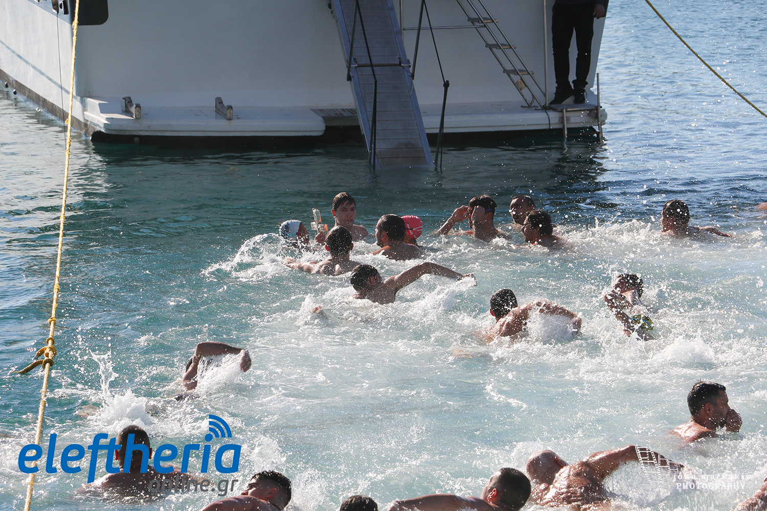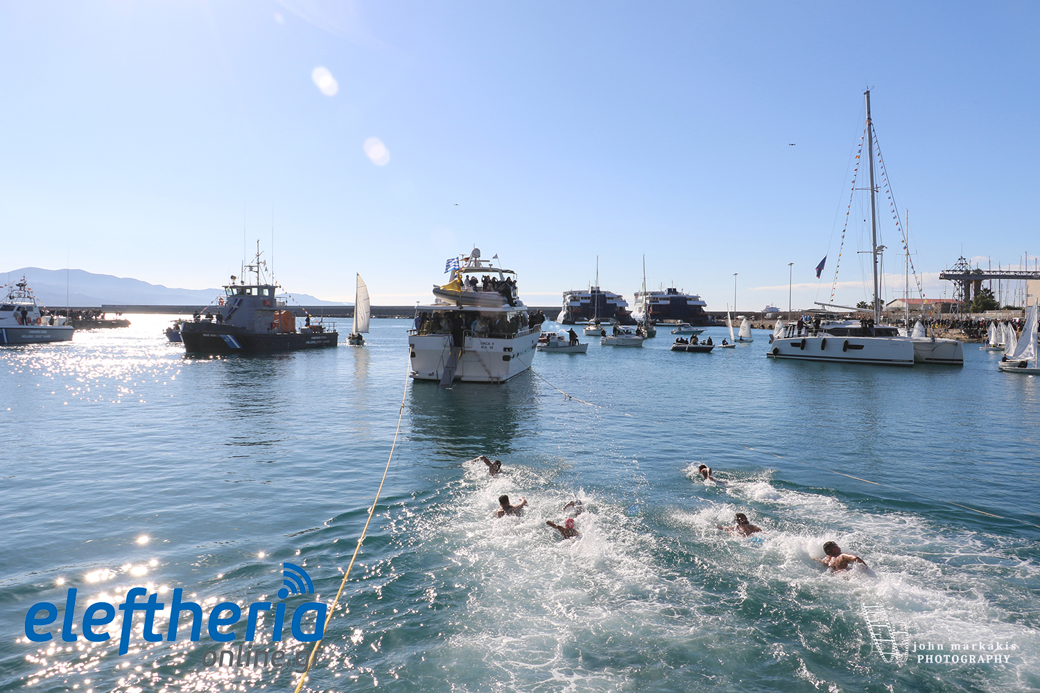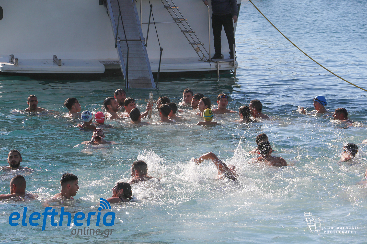 Για τον σταυρό έπεσαν 40 περίπου κολυμβητές κάθε ηλικίας και τον έπιασε για 4η φορά ο 19χρονος Ντίνος Αδαμόπουλος, κολυμβητής του ΝΟΚ.