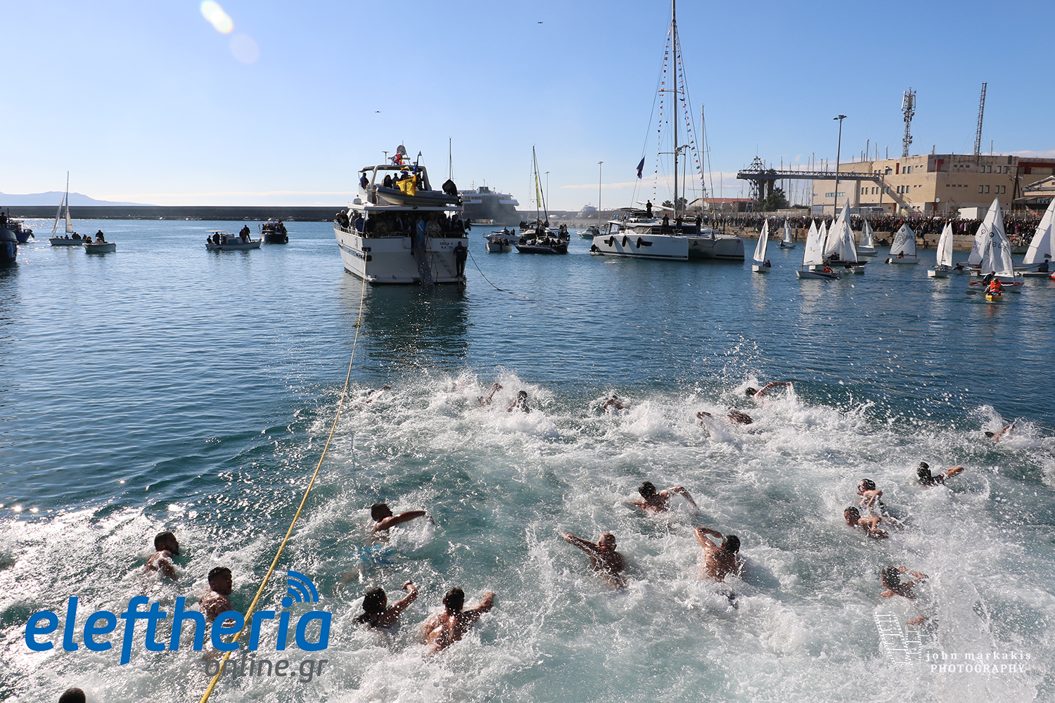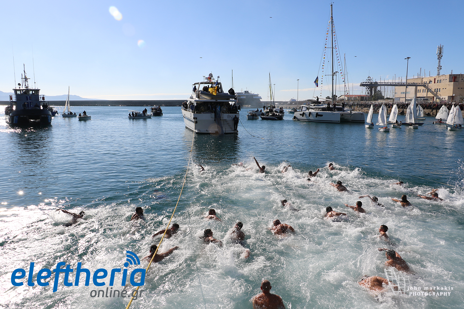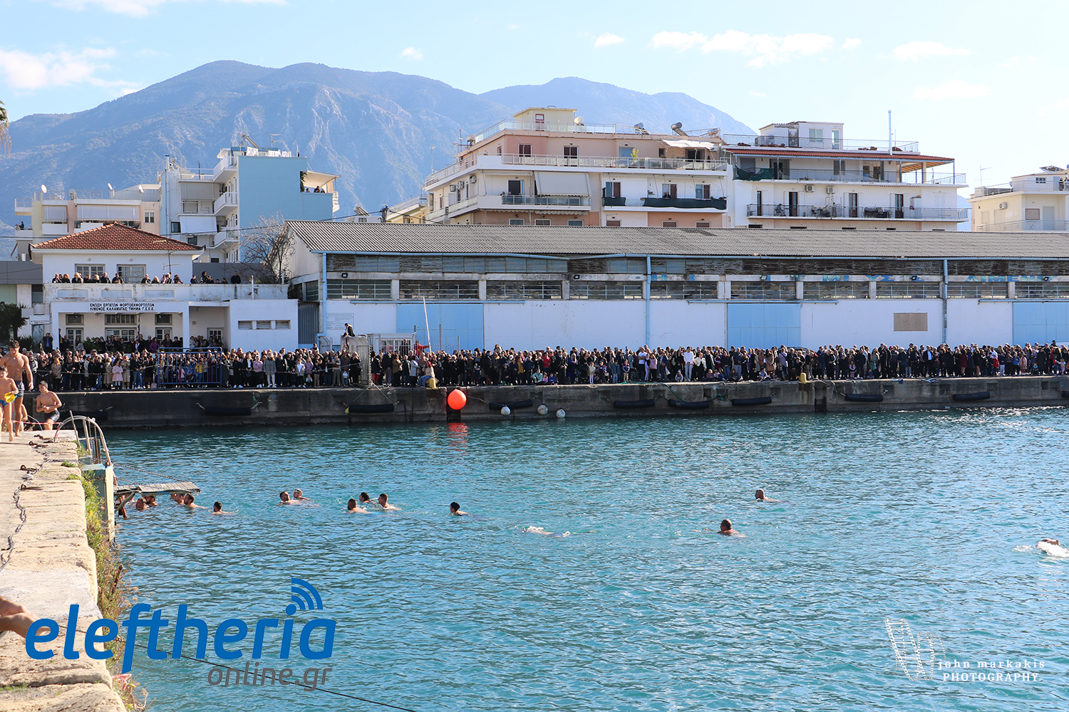 Για τον σταυρό έπεσαν 40 περίπου κολυμβητές κάθε ηλικίας και τον έπιασε για 4η φορά ο 19χρονος Ντίνος Αδαμόπουλος, κολυμβητής του ΝΟΚ.