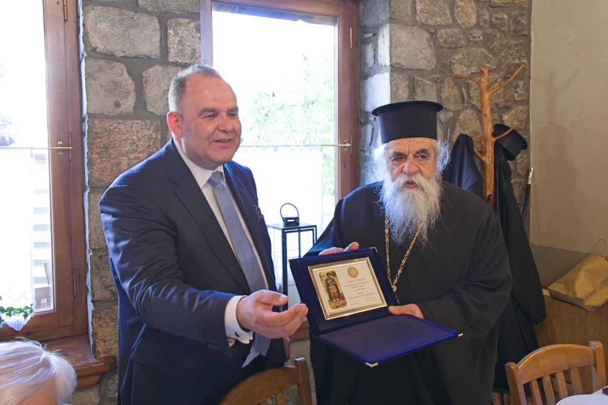Συνεχάρη τους διαχειριστές Ιωάννη Χριστόπουλο και Παναγιώτη Πλέσσια και τα μέλη του Πανταζοπούλειου Κληροδοτήματος για την άριστη διαχείριση και αναφερόμενος στον αείμνηστο ευεργέτη Δημήτρη Πανταζόπουλο, ανέφερε μεταξύ άλλων: