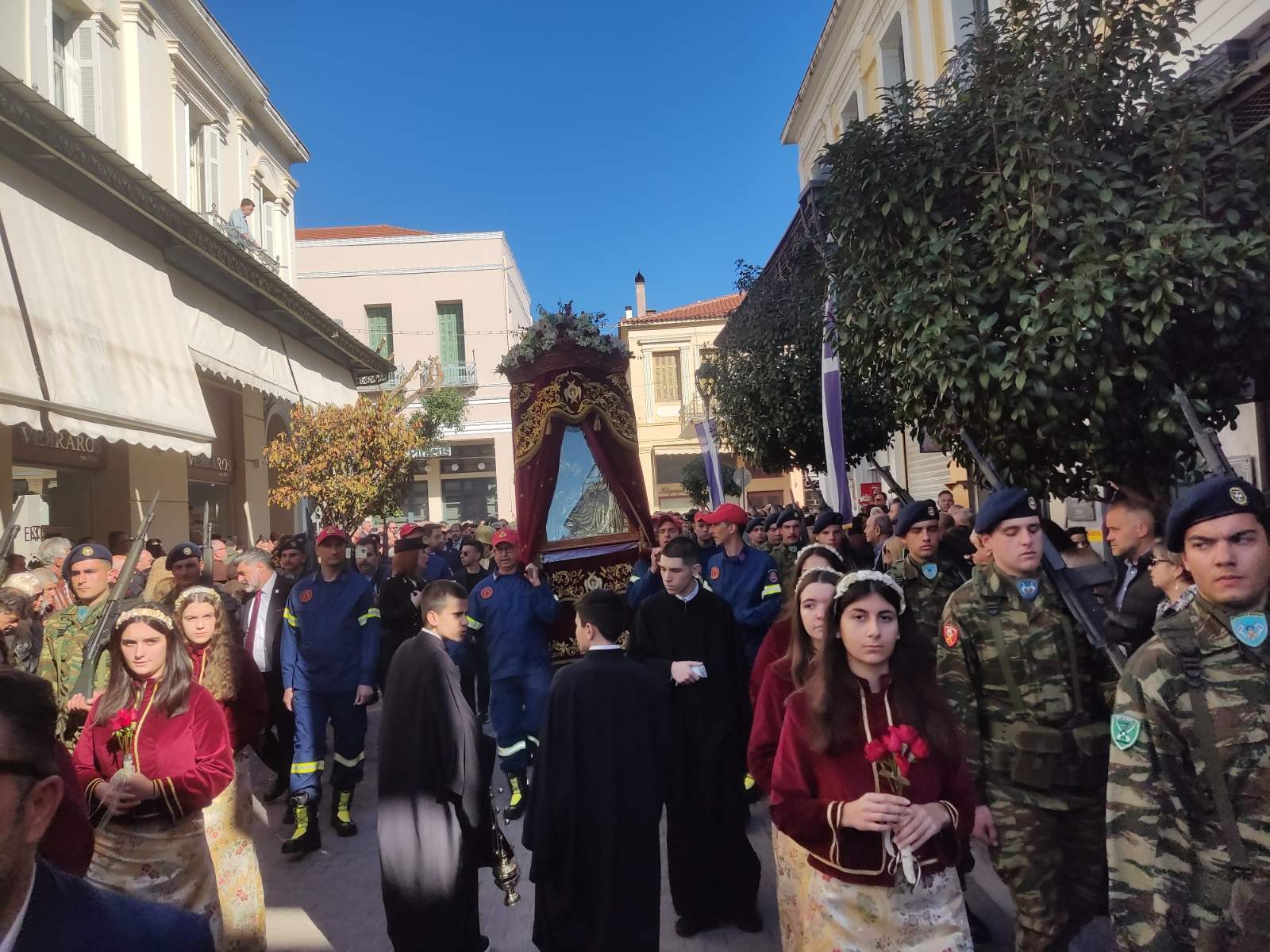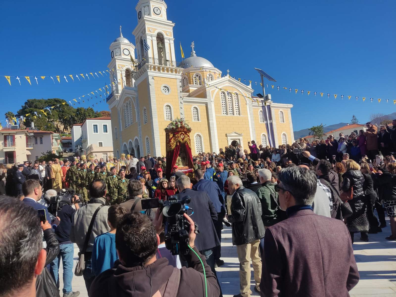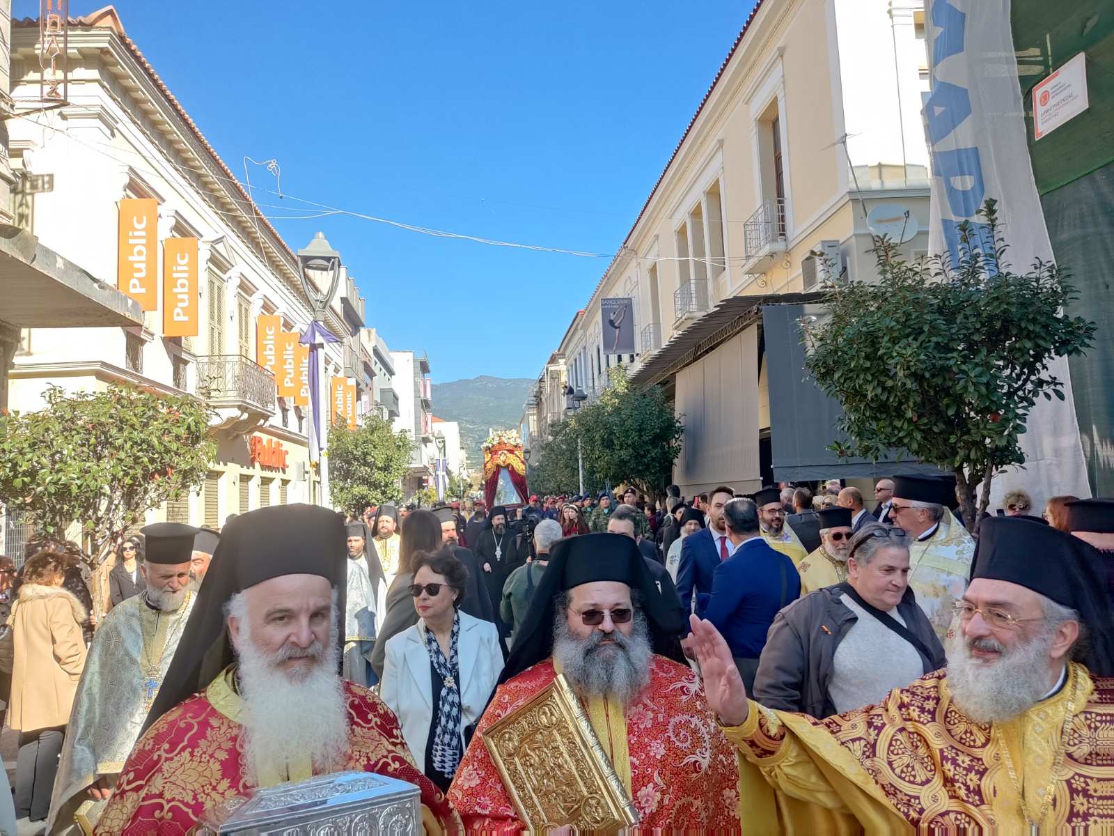 Προηγήθηκε Πολυαρχιερατικό Συλλείτουργο στον μητροπολιτικό ναό της Υπαπαντής του Χριστού, όπου συμμετείχαν οι μητροπολίτες Ύδρας, Σπετσών και Αιγίνης Εφραίμ, Κέρκυρας Νεκτάριος, Καρθαγένης Μελέτιος, Παραμυθιάς, Φιλιατών, Γηρομερίου και Πάργας Σεραπίων, Μαντινείας και Κυνουρίας Επιφάνιος, Αχαρνών και Πετρουπόλεως Αθηναγόρας, Σταγών και Μετεώρων Θεόκλητος, Μεγάρων και Σαλαμίνος Κωνσταντίνος, Μεσσηνίας Χρυσόστομος και ο επίσκοπος Τανάγρας Απόστολος.