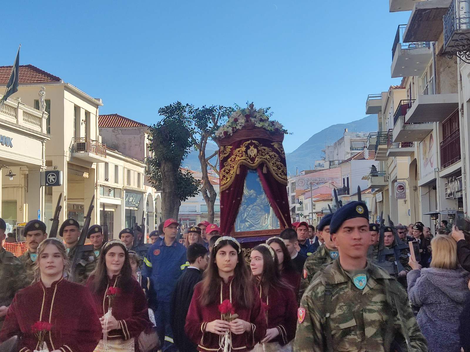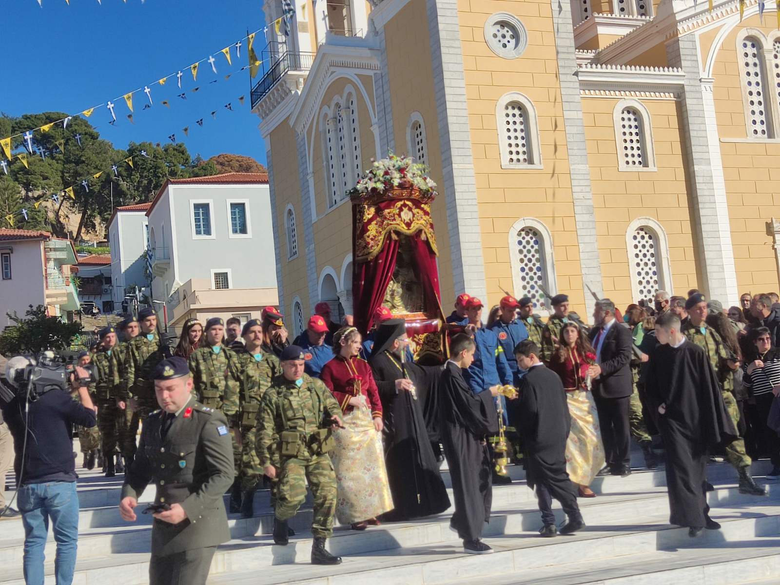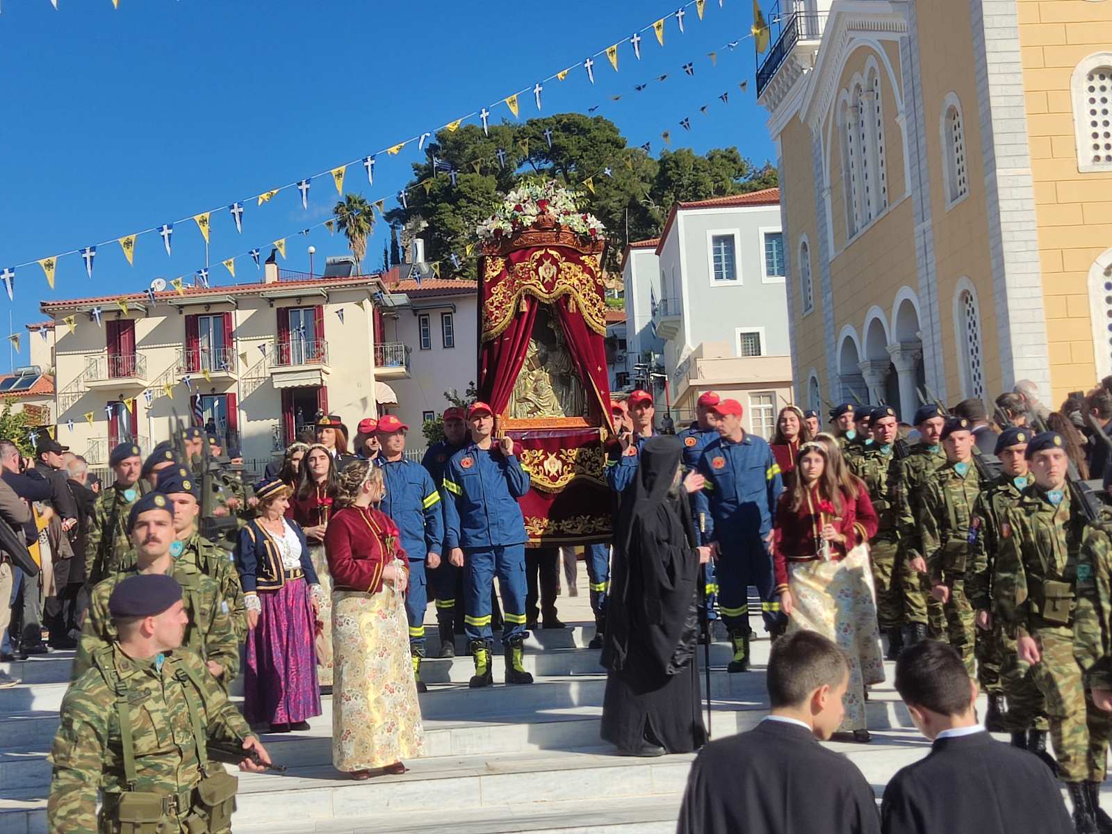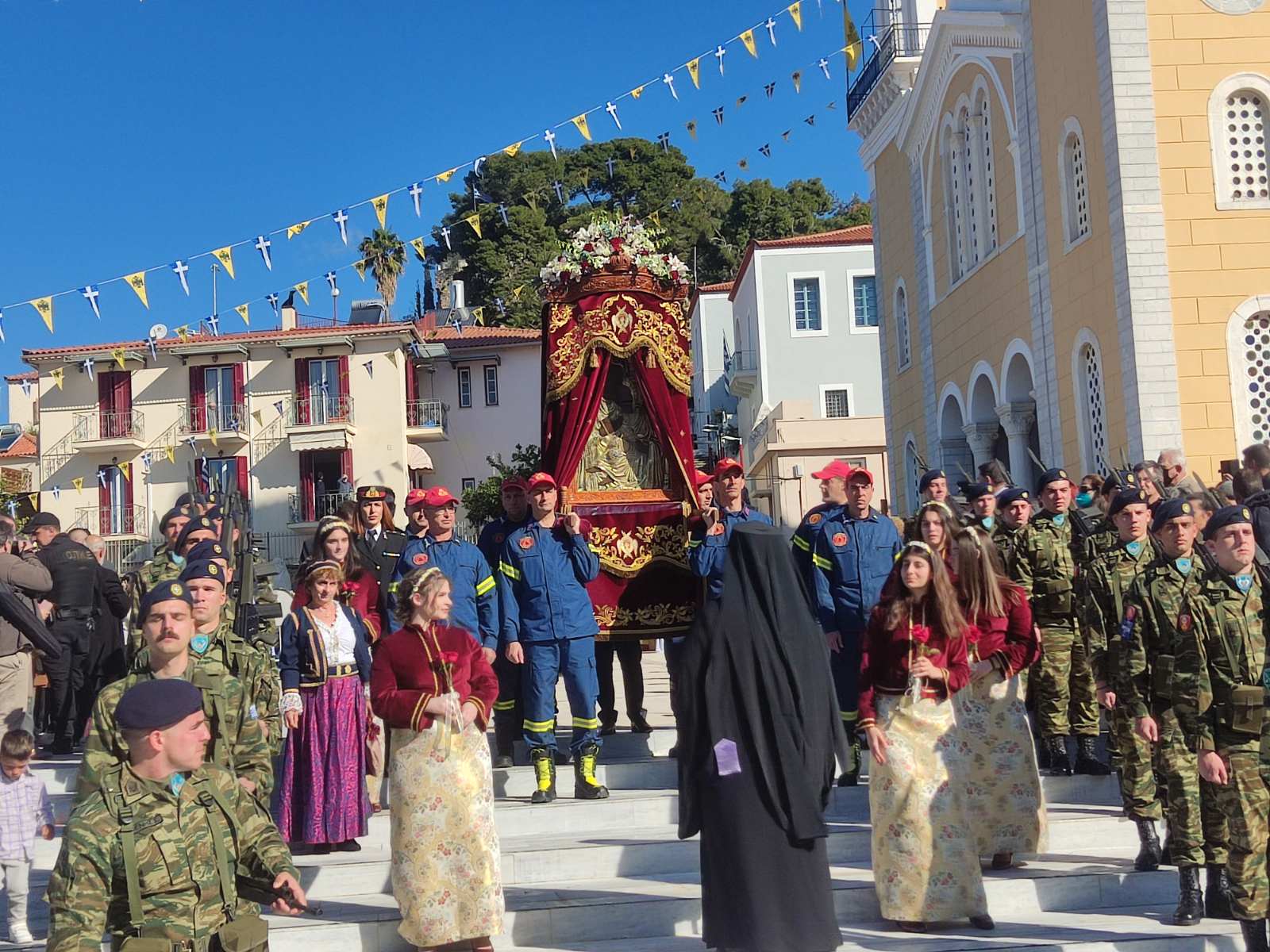 Προηγήθηκε Πολυαρχιερατικό Συλλείτουργο στον μητροπολιτικό ναό της Υπαπαντής του Χριστού, όπου συμμετείχαν οι μητροπολίτες Ύδρας, Σπετσών και Αιγίνης Εφραίμ, Κέρκυρας Νεκτάριος, Καρθαγένης Μελέτιος, Παραμυθιάς, Φιλιατών, Γηρομερίου και Πάργας Σεραπίων, Μαντινείας και Κυνουρίας Επιφάνιος, Αχαρνών και Πετρουπόλεως Αθηναγόρας, Σταγών και Μετεώρων Θεόκλητος, Μεγάρων και Σαλαμίνος Κωνσταντίνος, Μεσσηνίας Χρυσόστομος και ο επίσκοπος Τανάγρας Απόστολος.