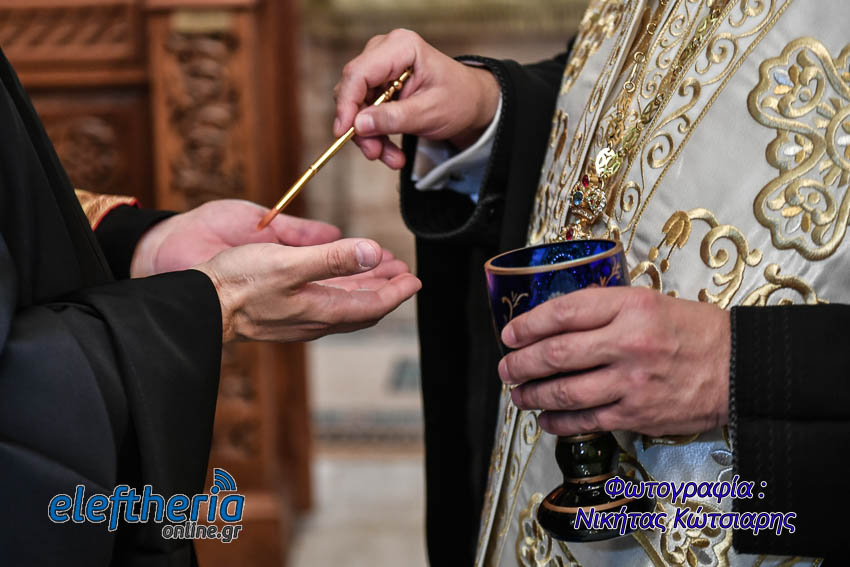 Πριν το τέλος του Μυστηρίου ο Σεβασμιώτατος έχρισε δι' Αγίου Ελαίου τους πιστούς, ευχόμενος καλό υπόλοιπο της Αγίας και Μεγάλης Εβδομάδας και Καλή Ανάσταση.