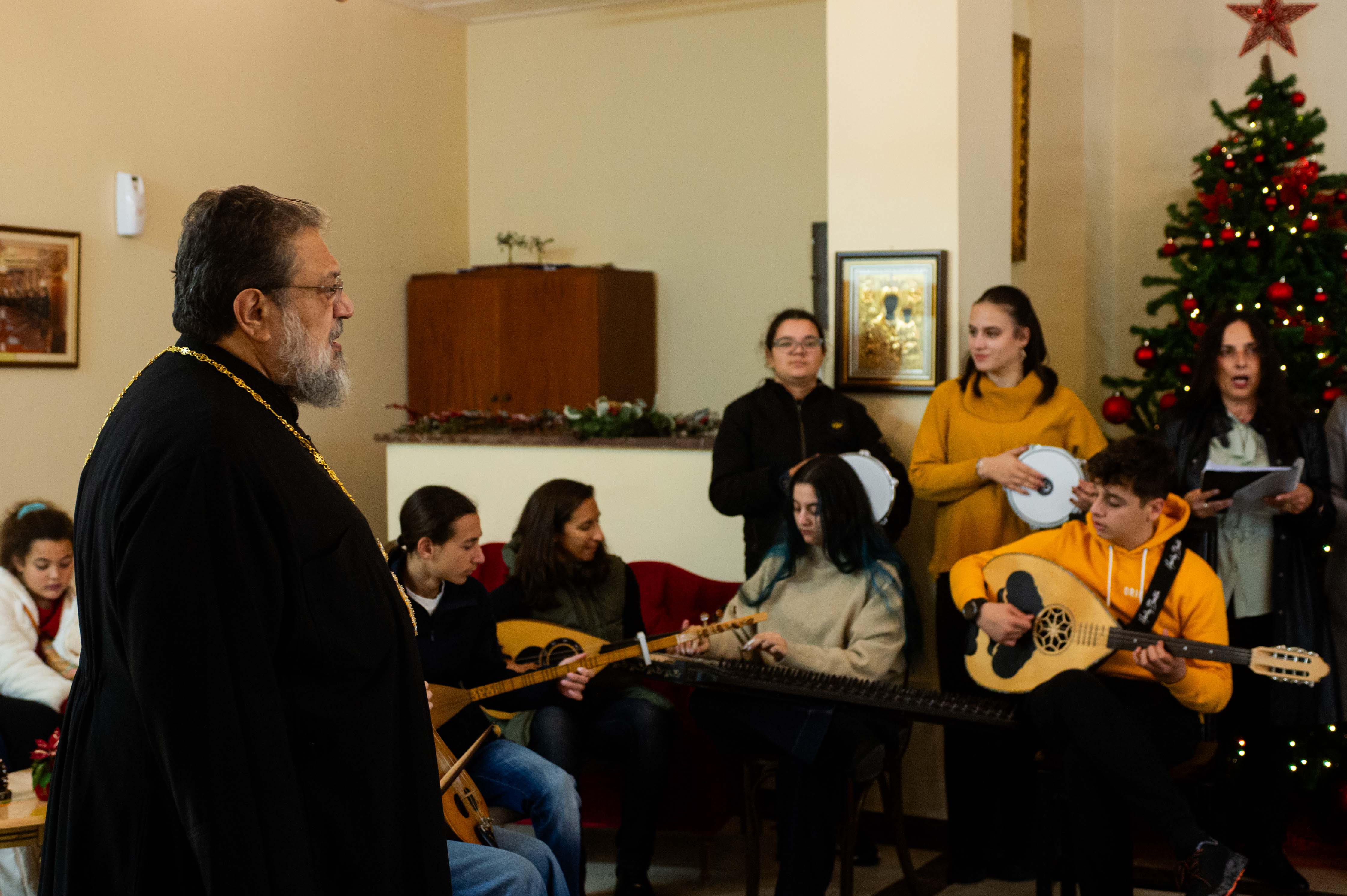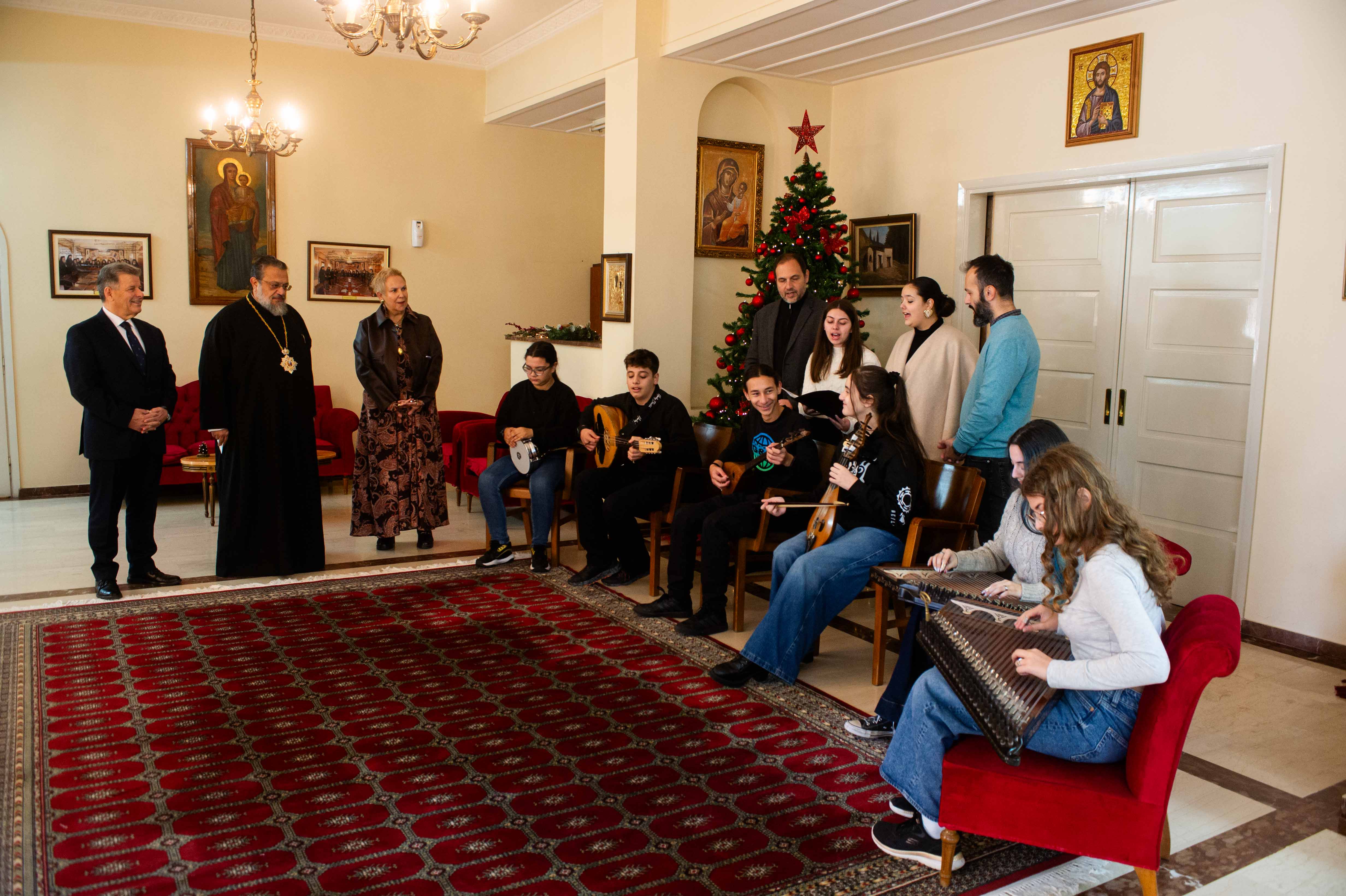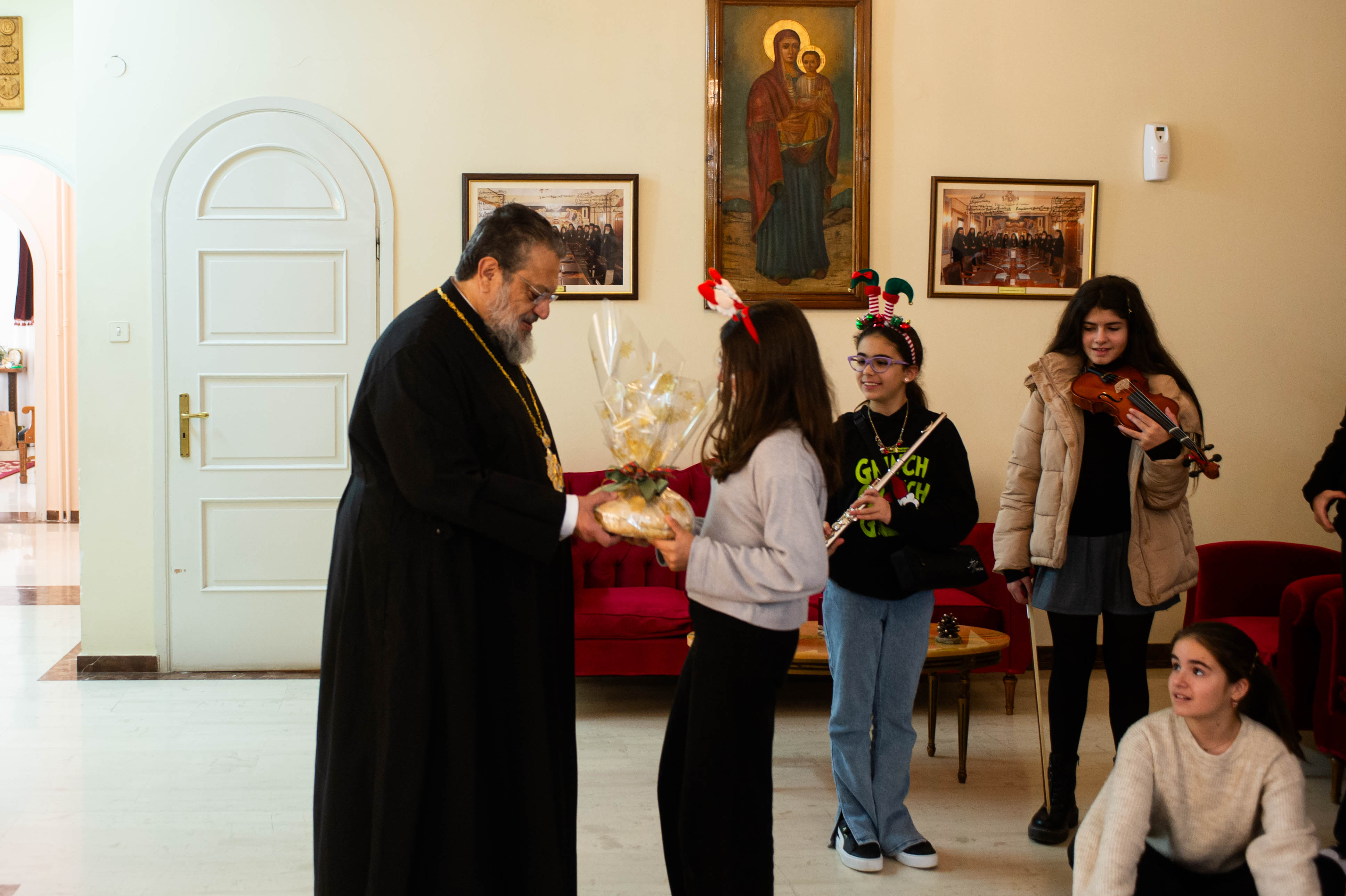Χριστουγεννιάτικα κάλαντα και παραδοσιακά τραγούδια έψαλαν κατά το διήμερο 23 και 24 Δεκεμβρίου στον Μητροπολίτη Μεσσηνίας κ. Χρυσόστομο, ομάδες παιδιών, μεικτή Χορωδία στρατευσίμων του 9ου Συντάγματος Πεζικού και της 120 ΠΕΑ, μαθητές του Μουσικού Σχολείου Καλαμάτας, του Γυμνασίου Παραλίας, των 1ου, 8ου, 13ου και 17ου Δημοτικών Σχολείων Καλαμάτας, μαθητές των Εκπαιδευτηρίων «Μπουγά», η Σχολή Βυζαντινής Μουσικής της Μητρόπολης Μεσσηνίας, παιδιά του Συλλόγου Ποντίων Καλαμάτας, καθώς και ομάδα νηπίων του «Παπαδοπουλείου» παιδικού σταθμού της Μητρόπολης.