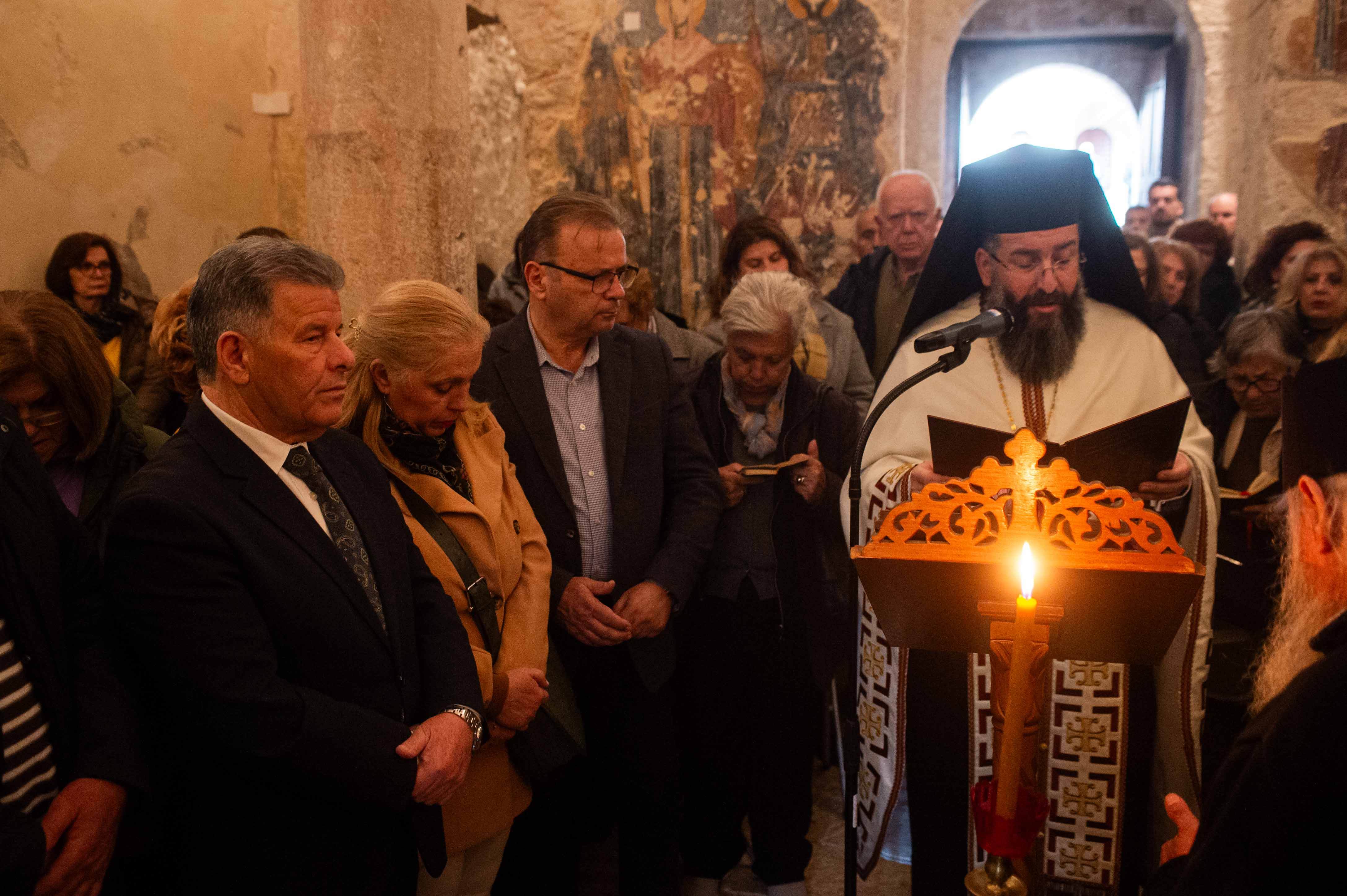Την Ακολουθία τέλεσε ο Πρωτοσύγκελλος της Μητρόπολης Μεσσηνίας Αρχιμανδρίτης Φίλιππος Χαμαργιάς, ο οποίος στο τέλος κήρυξε και τον θείο λόγο, ενώ δεν παρέλειψε να ευχαριστήσει για την παρουσία τους, τον βουλευτή Μίλτο Χρυσομάλλη, τον αντιπεριφερειάρχη Μεσσηνίας Στάθη Αναστασόπουλο, τους αντιδημάρχους του Δήμου Μεσσήνης οι οποίοι εκπροσώπησαν τον απουσιάζοντα στο εξωτερικό δήμαρχο Γιώργο Αθανασόπουλο, τα μέλη της Ενωσης Γυναικών «Η Παναθηναϊκή» και του Συλλόγου Εθελοντών Μεσσήνης, αλλά και το πλήθος των προσκυνητών. Τους ύμνους απέδωσαν τα μέλη της χορωδίας, της Σχολής Βυζαντινής Μουσικής, της Μητρόπολης Μεσσηνίας, υπό την διεύθυνση του διευθυντή της Σχολής και πρωτοψάλτη του Μητροπολιτικού Ναού της Υπαπαντής Καλαμάτας Κωνσταντίνου Σιάχου.