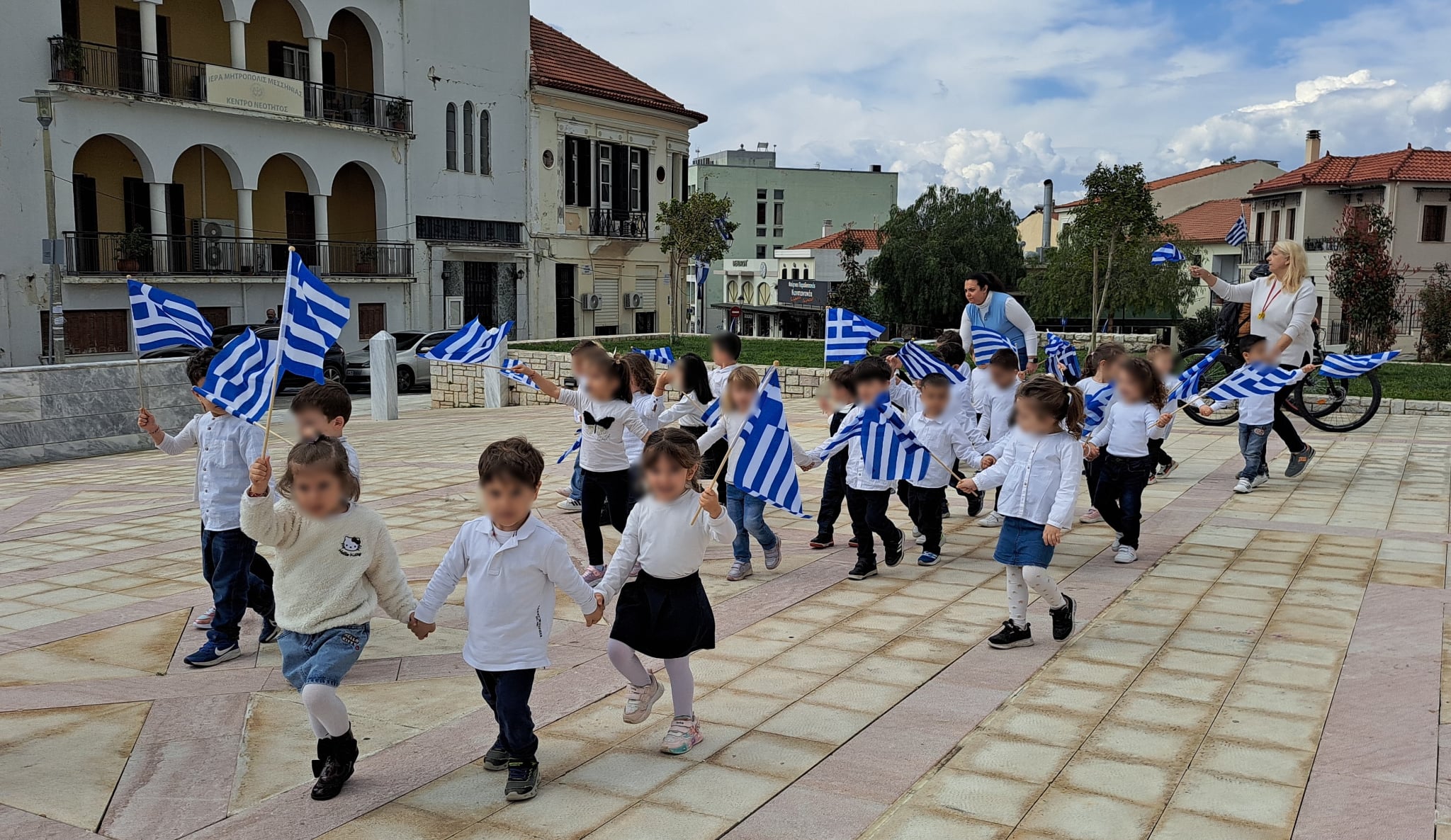 Οι μικροί μαθητές, ντυμένοι με παραδοσιακές ενδυμασίες, έκαναν παρέλαση στην πλατεία Υπαπαντής, μπροστά από τον εμβληματικό Μητροπολιτικό Ναό της πόλης. Τα παιδιά κρατώντας ελληνικές σημαίες απέσπασαν το θερμό χειροκρότημα των παρευρισκομένων, στέλνοντας μήνυμα ελπίδας και διατήρησης της ιστορικής μνήμης.