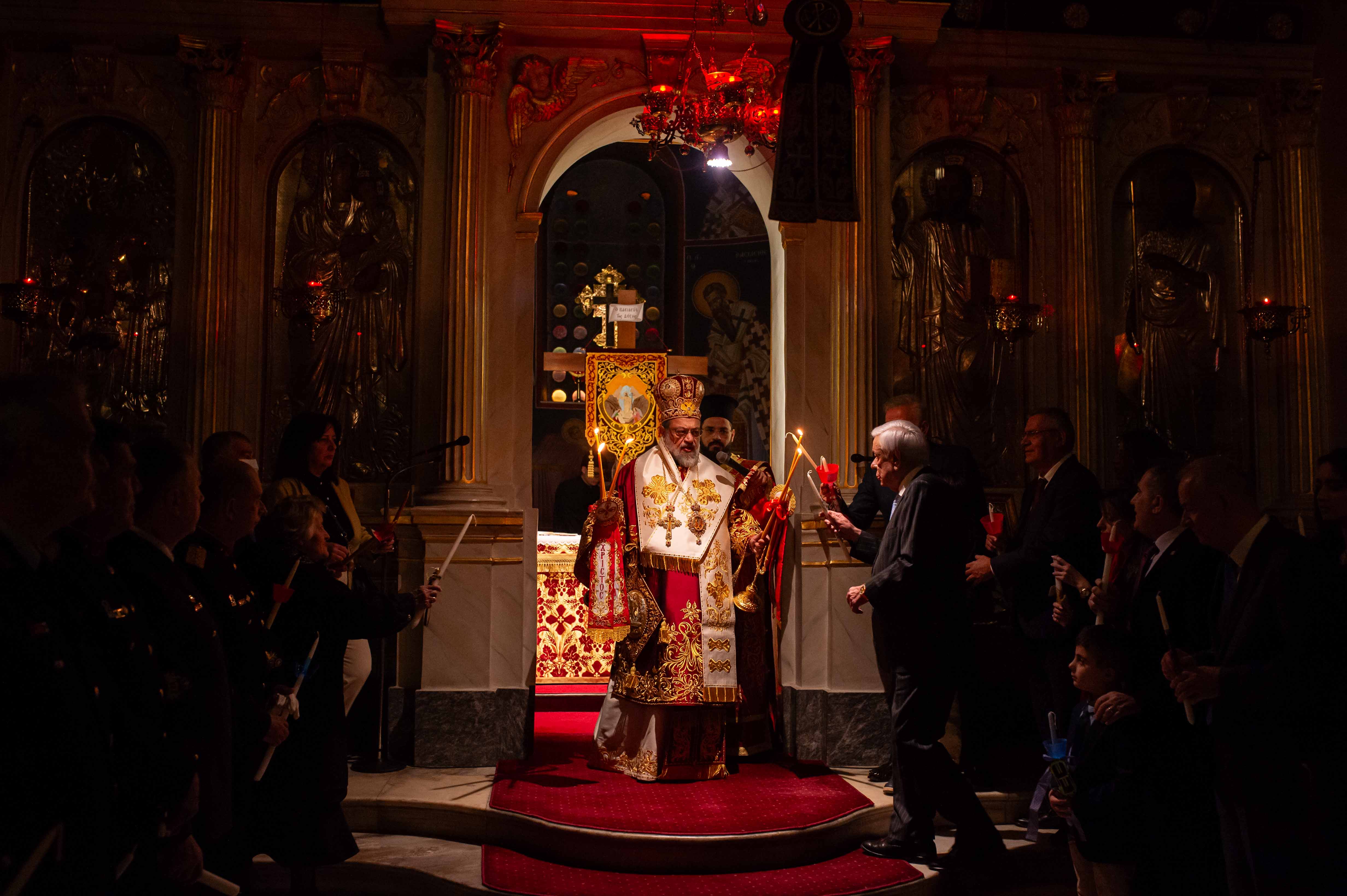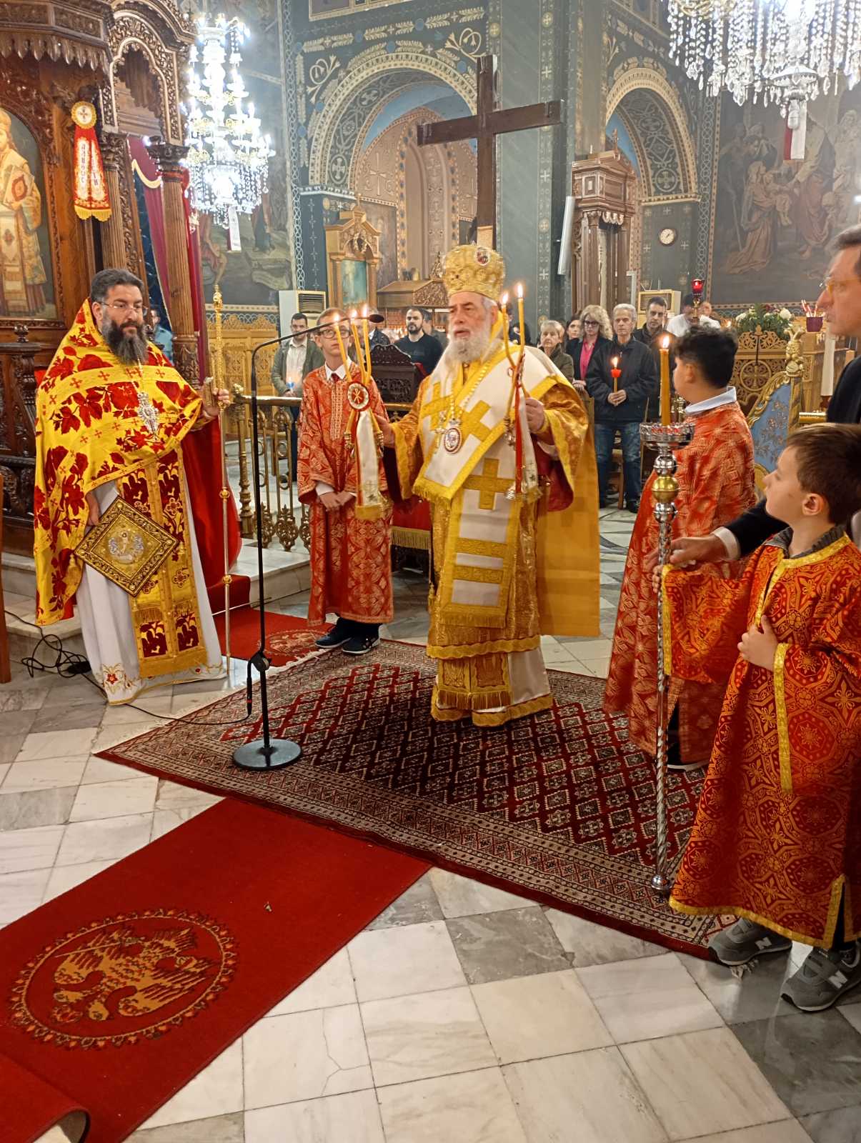 Στον Ιερό Μητροπολιτικό Ναό της Υπαπαντής του Χριστού Καλαμάτας προέστη της Ακολουθίας ο Μητροπολίτης Μεσσηνίας Χρυσόστομος, πλαισιωμένος από τους εφημερίους του Μητροπολιτικού Ναού, ενώ παρέστησαν, ο πρώην Πρόεδρος της Δημοκρατίας Προκόπης Παυλόπουλος, ο υφυπουργός Προστασίας του Πολίτη Γιάννης Λαμπρόπουλος, ο περιφερειάρχης Πελοποννήσου Δημήτρης Πτωχός, ο δήμαρχος Καλαμάτας Θανάσης Βασιλόπουλος, ο Διοικητής Φρουράς Καλαμάτας Συνταγματάρχης Γεώργιος Χαρίτος και λοιποί εκπρόσωποι στρατιωτικών, πολιτικών κ.α. Αρχών της πόλης.