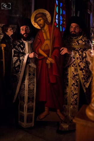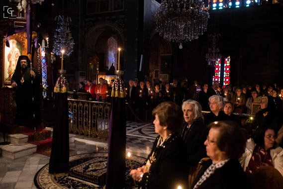 Στην εσπερινή Ακολουθία χοροστάτησε ο Μητροπολίτης Μεσσηνίας κ. Χρυσόστομος, παρουσία των Εφημερίων του Ναού. Στο Κήρυγμά του ο Σεβασμιώτατος αναφέρθηκε στη σημασία της μετάνοιας της ζωής των Χριστιανών, ευχόμενος καλή και ευλογημένη Ανάσταση στους πιστούς.