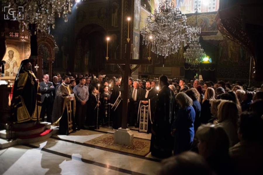 Πλήθος πιστών παρακολούθησε τα δώδεκα Ευαγγέλια και την περιφορά του Εσταυρωμένου, βιώνοντας τα γεγονότα των Παθών του Κυρίου μέσα από τα τελετουργικά δρώμενα της κατανυκτικής Ακολουθίας.