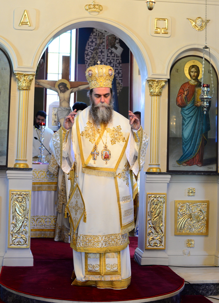 Στον Όρθρο χοροστάτησε ο Θεοφ. Επίσκοπος Επιδαύρου κ. Καλλίνικος και στην πανηγυρική πολυαρχιερατική Θεία Λειτουργία προέστη ο Σεβ. Μητροπολίτης Μαρωνείας και Κομοτηνής κ. Παντελεήμων, συλλειτουργούντων του Σεβ. Μητροπολίτη Κίτρους και Κατερίνης κ. Γεωργίου, του Θεοφ. Επισκόπου Επιδαύρου κ. Καλλινίκου και του επιχώριου Μητροπολίτη Μεσσηνίας κ. Χρυσοστόμου.