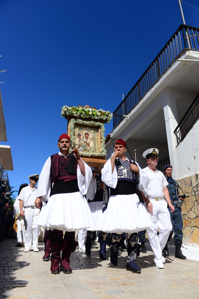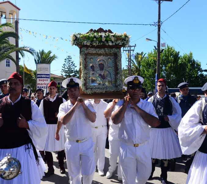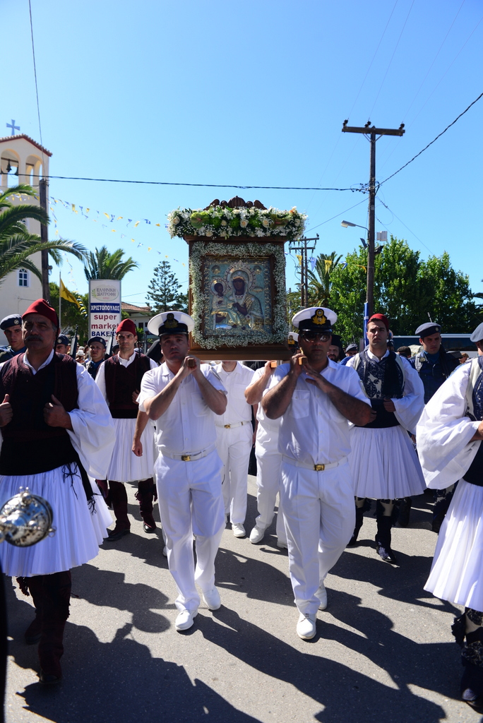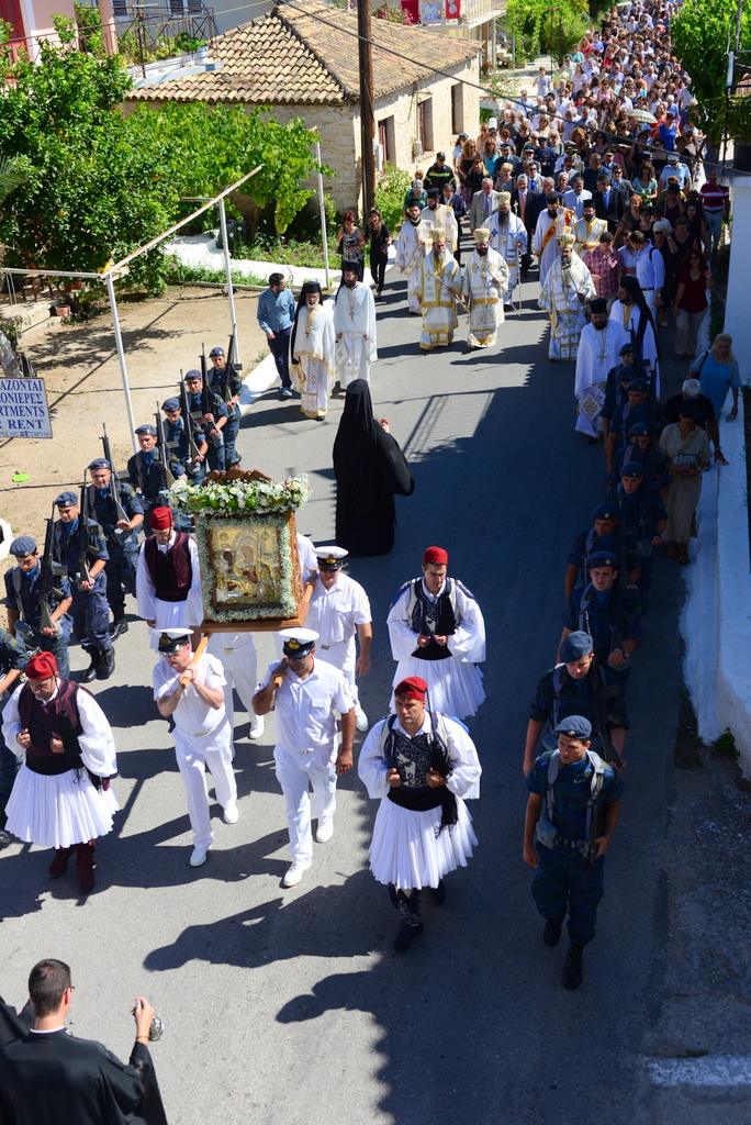 Την εικόνα έφεραν επ’ ώμοις άνδρες του Λιμενικού Σώματος και του Λυκείου Ελληνίδων Καλαμάτας. Τιμές απέδωσαν στρατιωτικό άγημα από την 120 Πτέρυγα Εκπαίδευσης Αέρος Καλαμάτας και η φιλαρμονική του Δήμου Πύλου-Νέστορος.