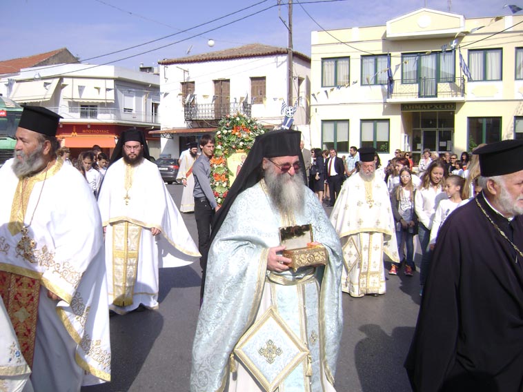 Νωρίς το πρωί τελέστηκε αρχιερατική θεία λειτουργία χοροστατούντος του μητροπολίτη Τριφυλίας και Ολυμπίας κ. Χρυσοστόμου, στον ιερό ναό Γενέσιο της Θεοτόκου. Στη συνέχεια έγινε λιτάνευση της ιερής εικόνας στους κεντρικούς δρόμους της πόλης, με κατάληξη και πάλι τον ιερό ναό.