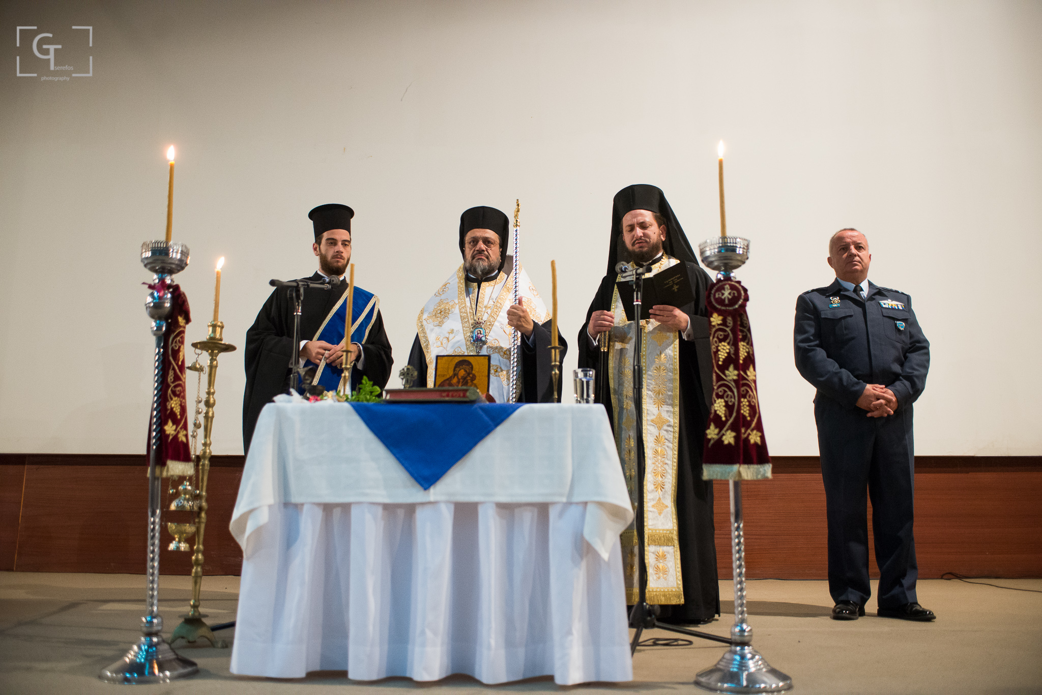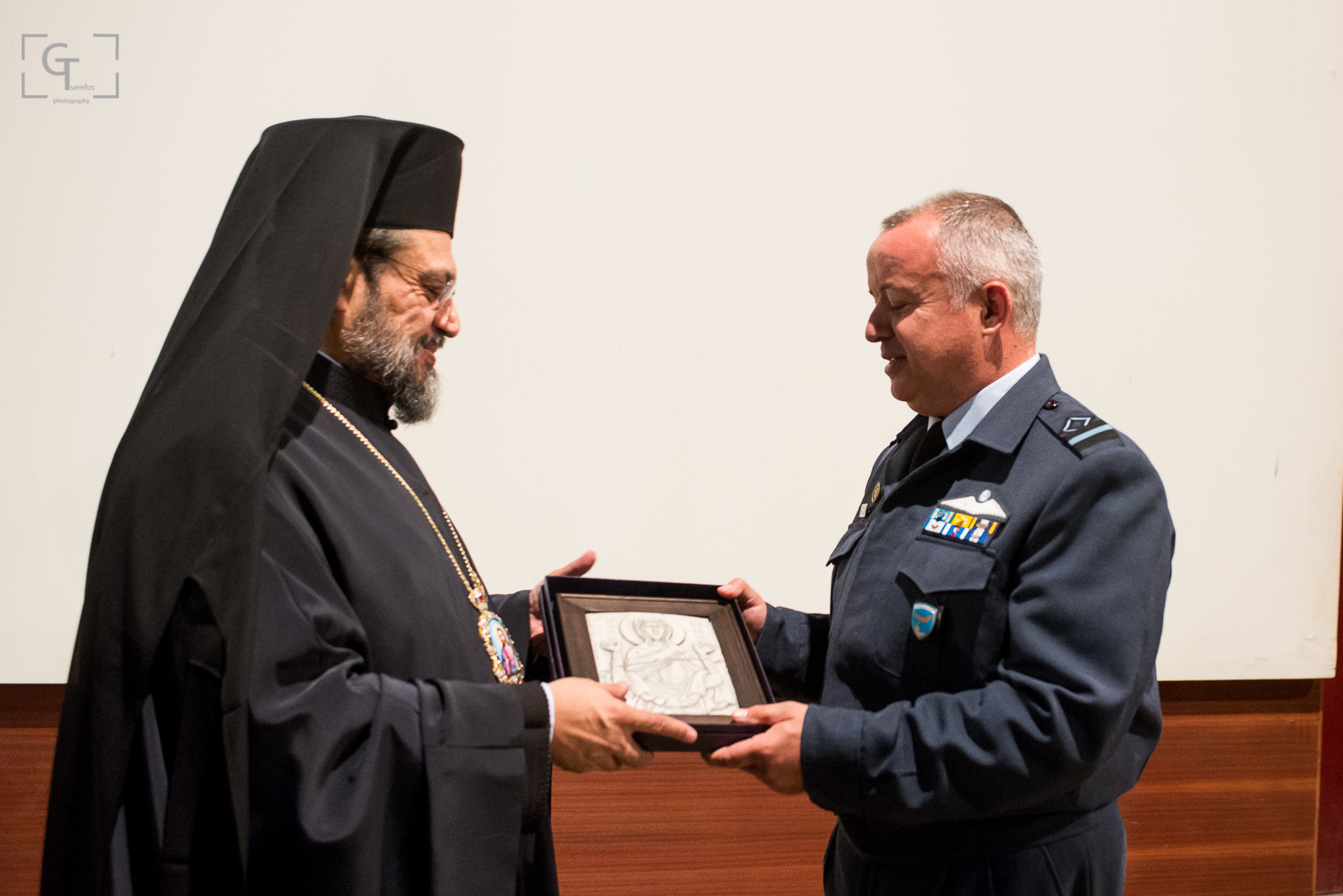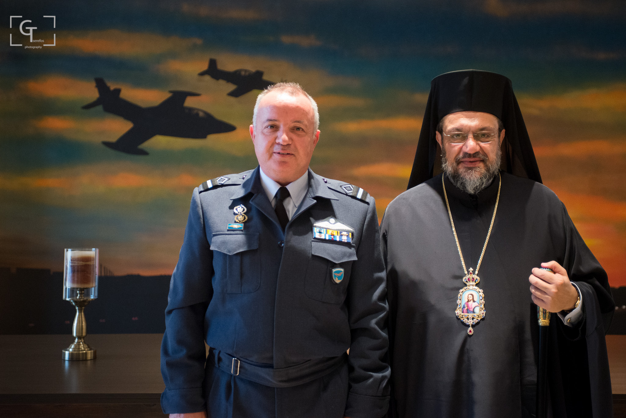 Ο Σεβασμιώτατος, στο σύντομο λόγο του, τόνισε ότι η πατρίδα μας περνάει δύσκολες στιγμές λόγω της έλλειψης ηθικών και κοινωνικών αξιών, γεγονός που οδήγησε στην αλλοτρίωση. Παράλληλα, ευχαρίστησε τον Ταξίαρχο και όλο το προσωπικό για την πρόσκληση και τη θερμή υποδοχή.