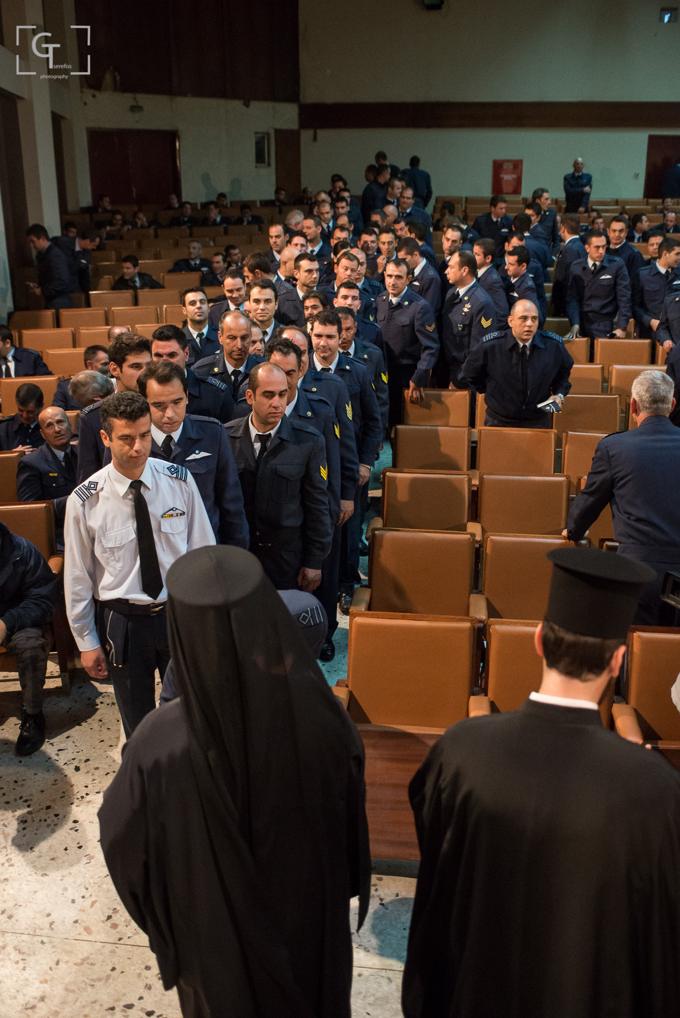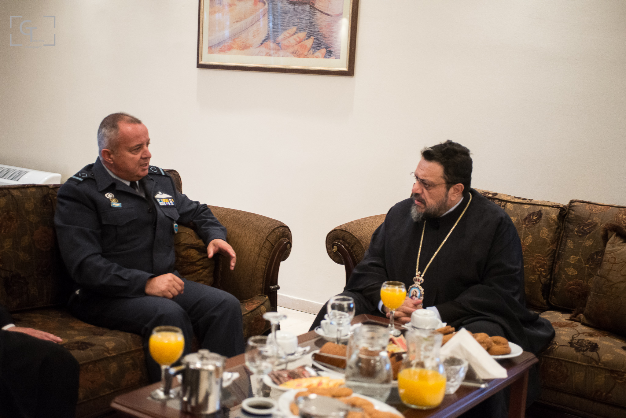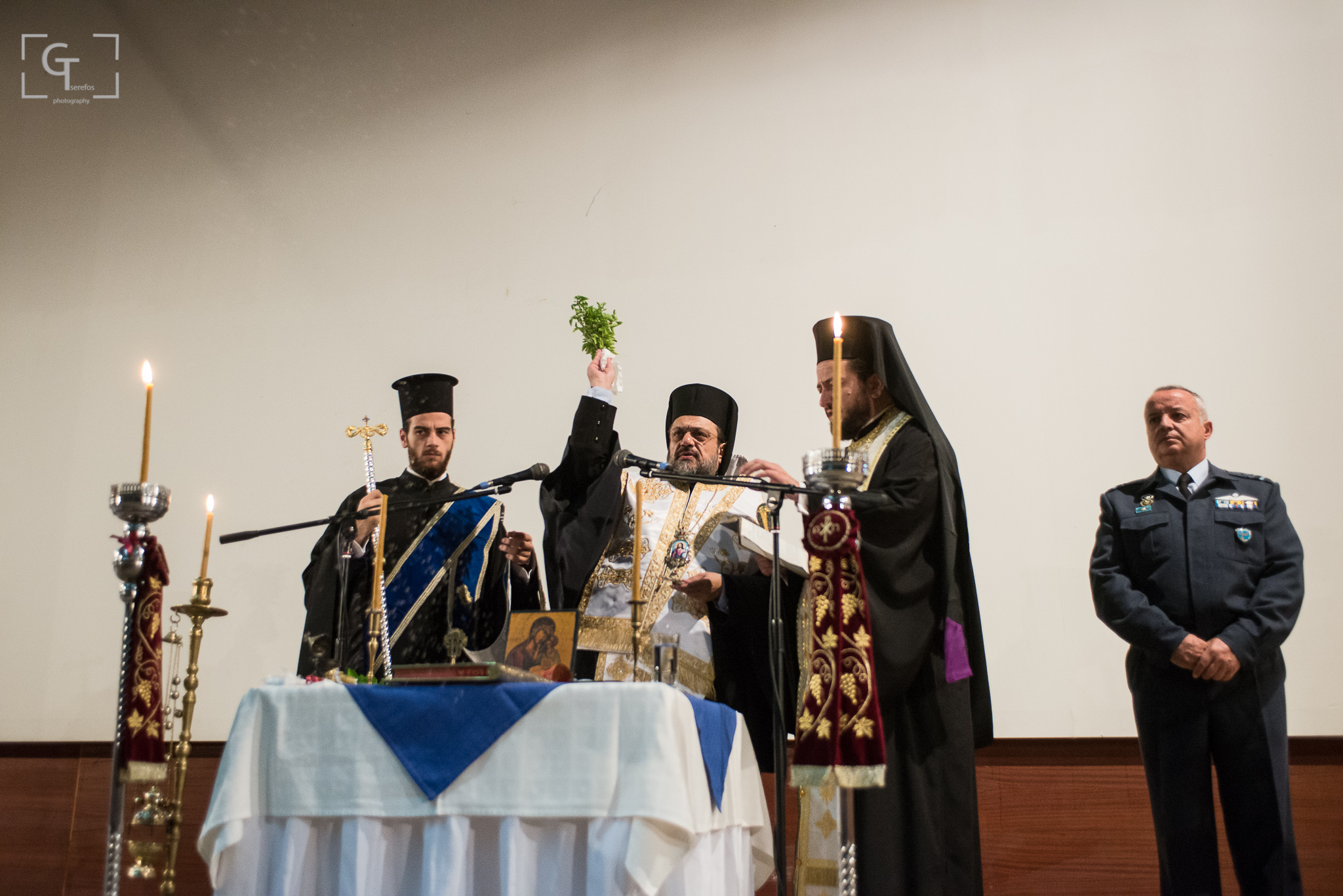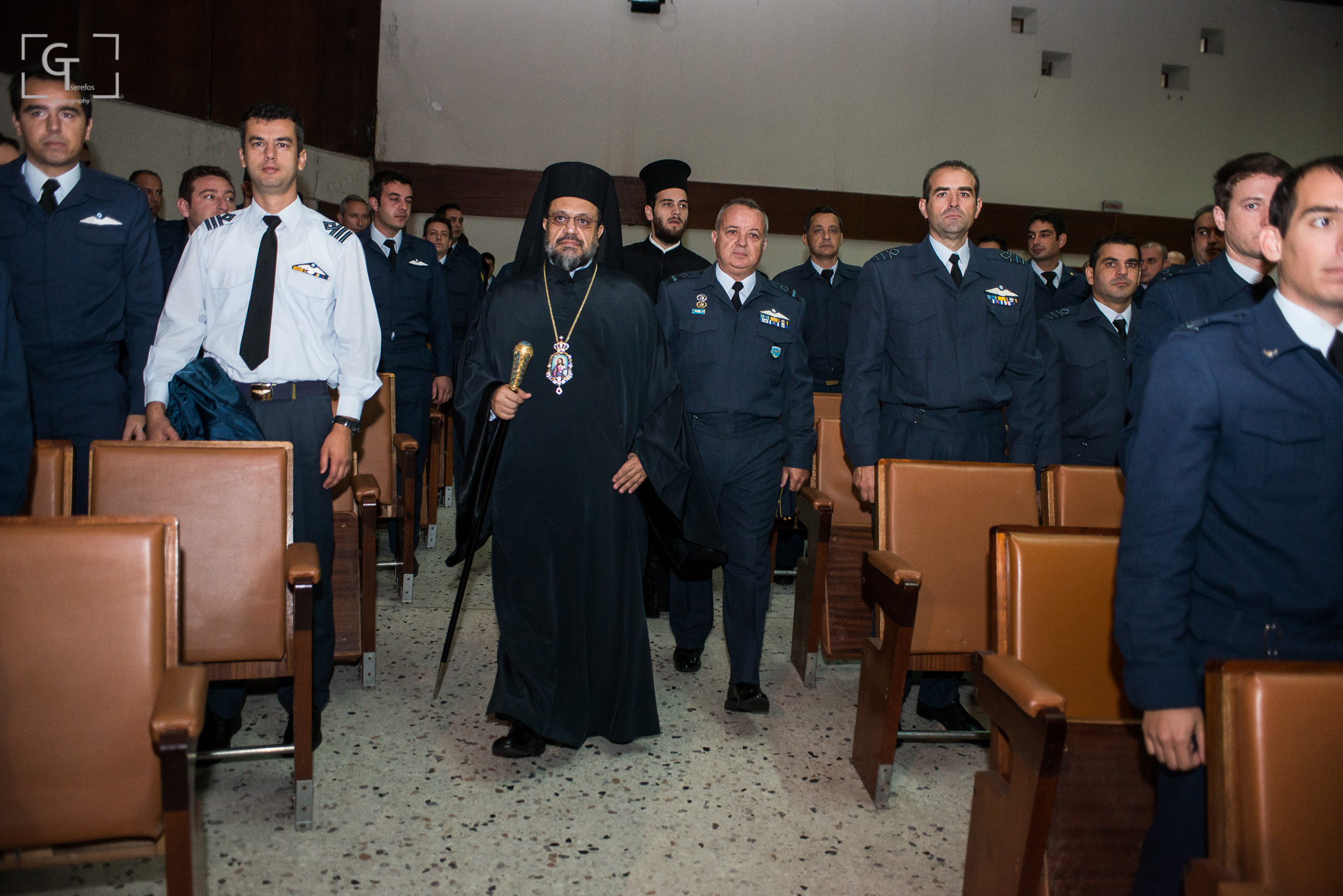 Ο Σεβασμιώτατος, στο σύντομο λόγο του, τόνισε ότι η πατρίδα μας περνάει δύσκολες στιγμές λόγω της έλλειψης ηθικών και κοινωνικών αξιών, γεγονός που οδήγησε στην αλλοτρίωση. Παράλληλα, ευχαρίστησε τον Ταξίαρχο και όλο το προσωπικό για την πρόσκληση και τη θερμή υποδοχή.