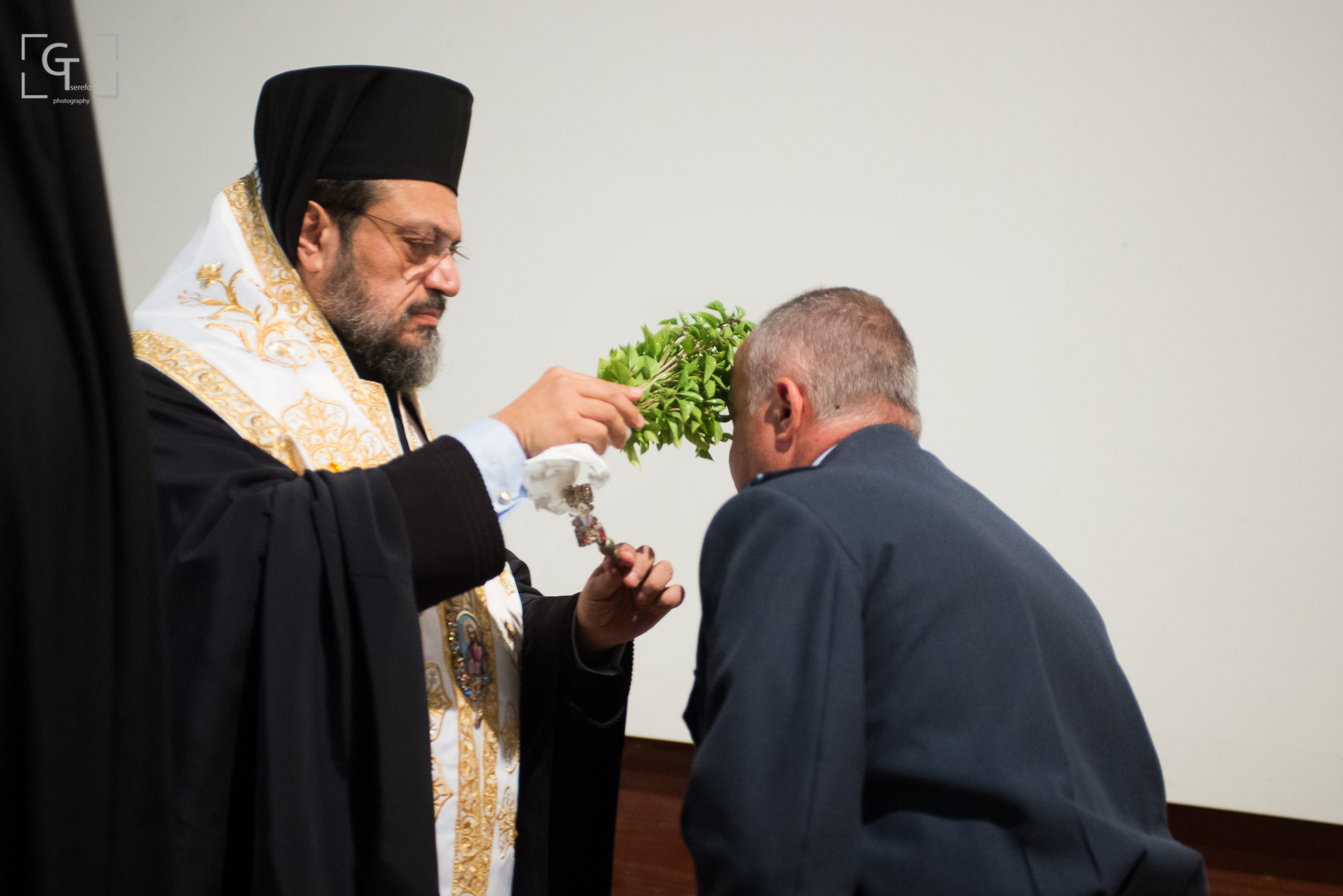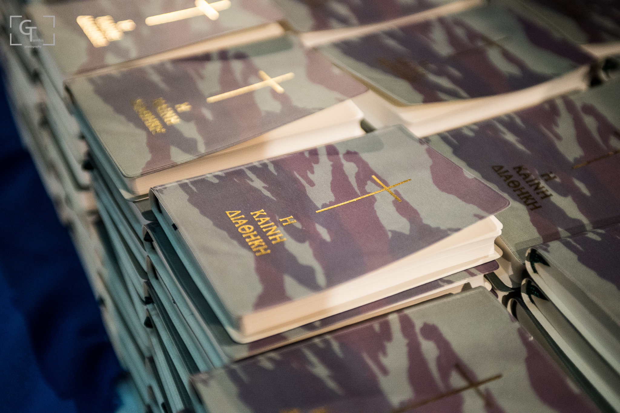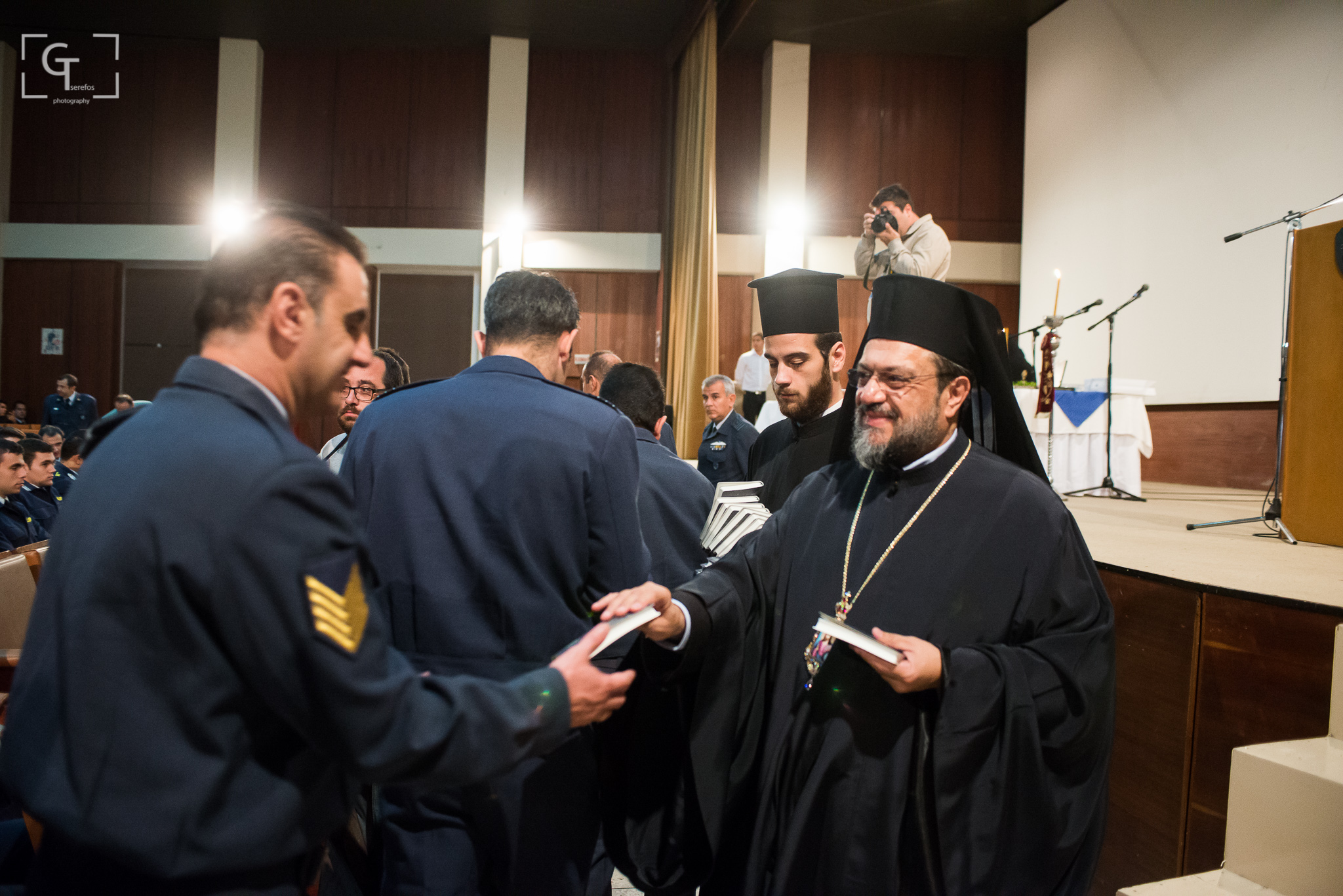 Ο Διοικητής της Μονάδος Ταξίαρχος Γρηγόριος Δημακογιάννης καλωσόρισε τον Μητροπολίτη και τον ευχαρίστησε θερμά για την παρουσία του. Στη συνέχεια, ο κ. Χρυσόστομος διένειμε ως ευλογία σε όλους την Καινή Διαθήκη, η οποία ήταν προσφορά της Ελληνικής Βιβλικής Εταιρίας.
