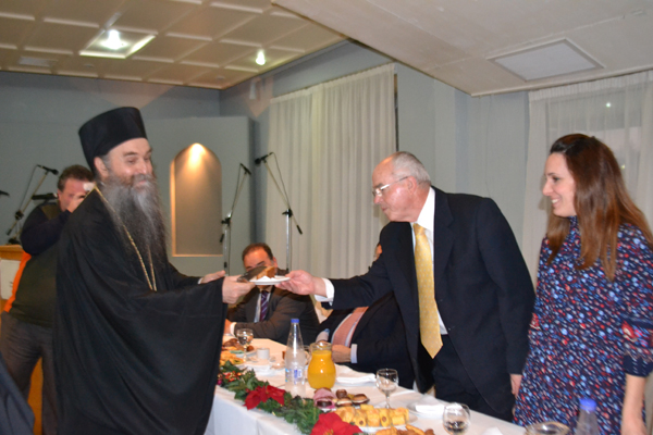 Συγκεκριμένα, τιμήθηκε ο διευθύνων σύμβουλος της Εθνικής Τράπεζας Αλέξανδρος Τουρκολιάς, καθώς με δαπάνες άνω των 200.000 ευρώ χρηματοδοτεί το έργο ανακαίνισης του Μητροπολιτικού Μεγάρου. Ο κ. Χρυσόστομος χαρακτήρισε τον κ. Τουρκολιά ως πρώτο και μεγαλύτερο ευεργέτη. Επίσης τίμησε τους "Γιατρούς του Κόσμου", που από πέρυσι τον Φεβρουάριο έχουν επισκεφθεί πολλά χωριά της μητροπόλεως, με 650 εξετάσεις σε ανήμπορους συνανθρώπους μας. Από την ομάδα των "Γιατρών του Κόσμου" παρόντες ήταν οι Οδυσσέας Καραγκούνης, Γεωργία Γκίγκα και Θωμάς Μπαλκόνης, ενώ τιμήθηκαν και οι μη παρόντες, που δεν μπόρεσαν να παραβρεθούν για διάφορους λόγους, Ευαγγελία Βουλγράκη, Ευμορφία Μαρκοπούλου και ο συντονιστής Θεοκλής Πιέρος. Τέλος τιμήθηκε ο εκπρόσωπος της εταιρείας "ΑΒ Βασιλόπουλος" Ιωάννης Αβδελάς για την προσφορά του ομίλου με διάφορα είδη προς την μητρόπολη.