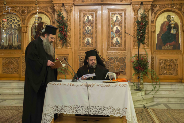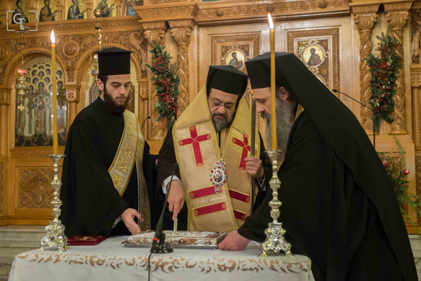 Αρχικά, ο μητροπολίτης ευλόγησε και έκοψε την πρωτοχρονιάτικη πίτα των κληρικών και τους ευχήθηκε καλή χρονιά με υγεία και κάθε προσωπική και οικογενειακή ευτυχία.