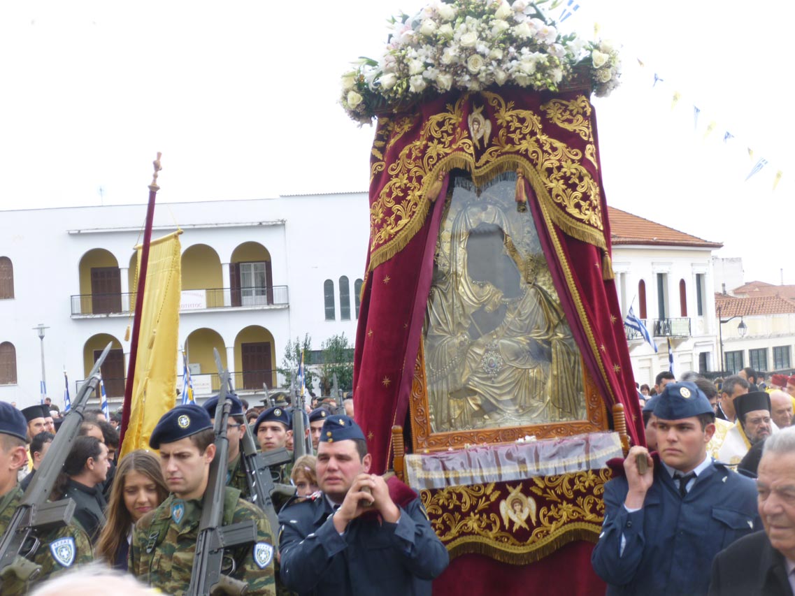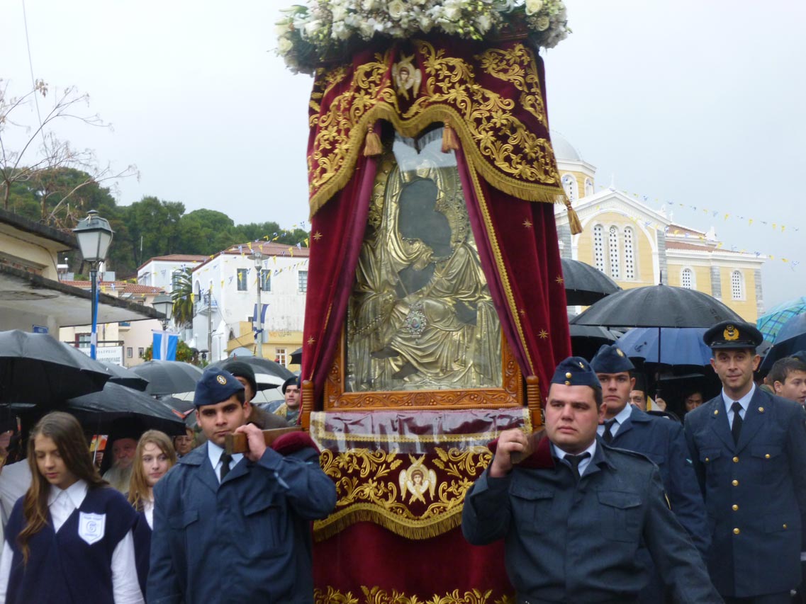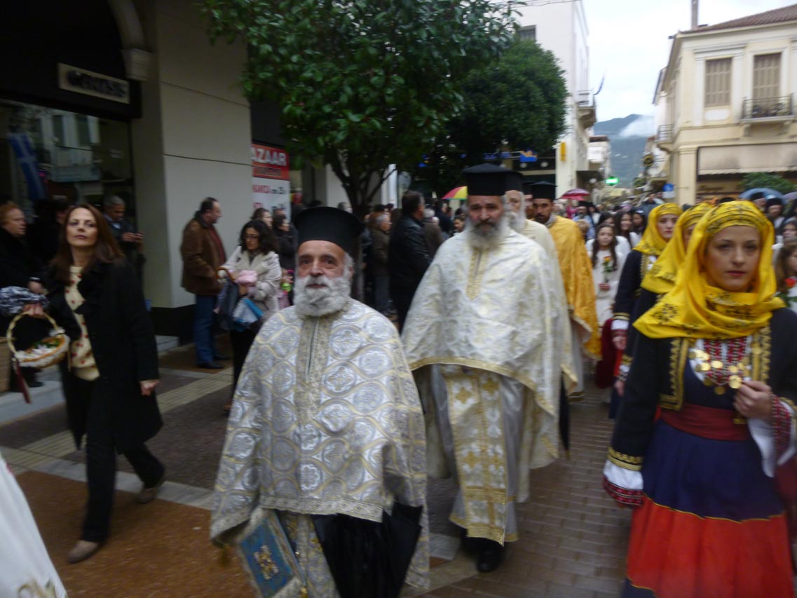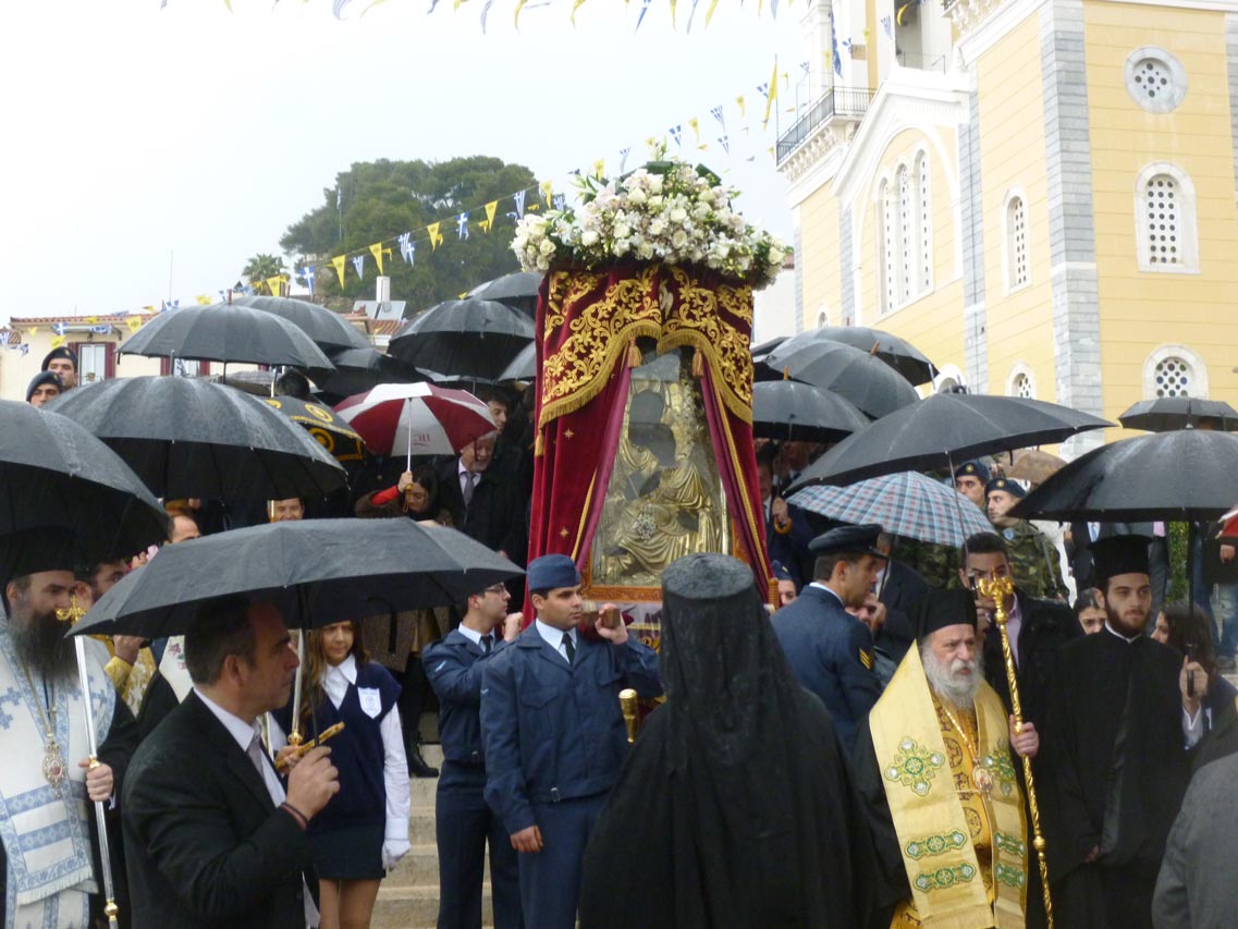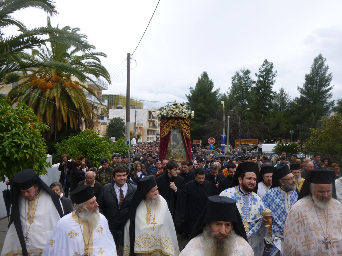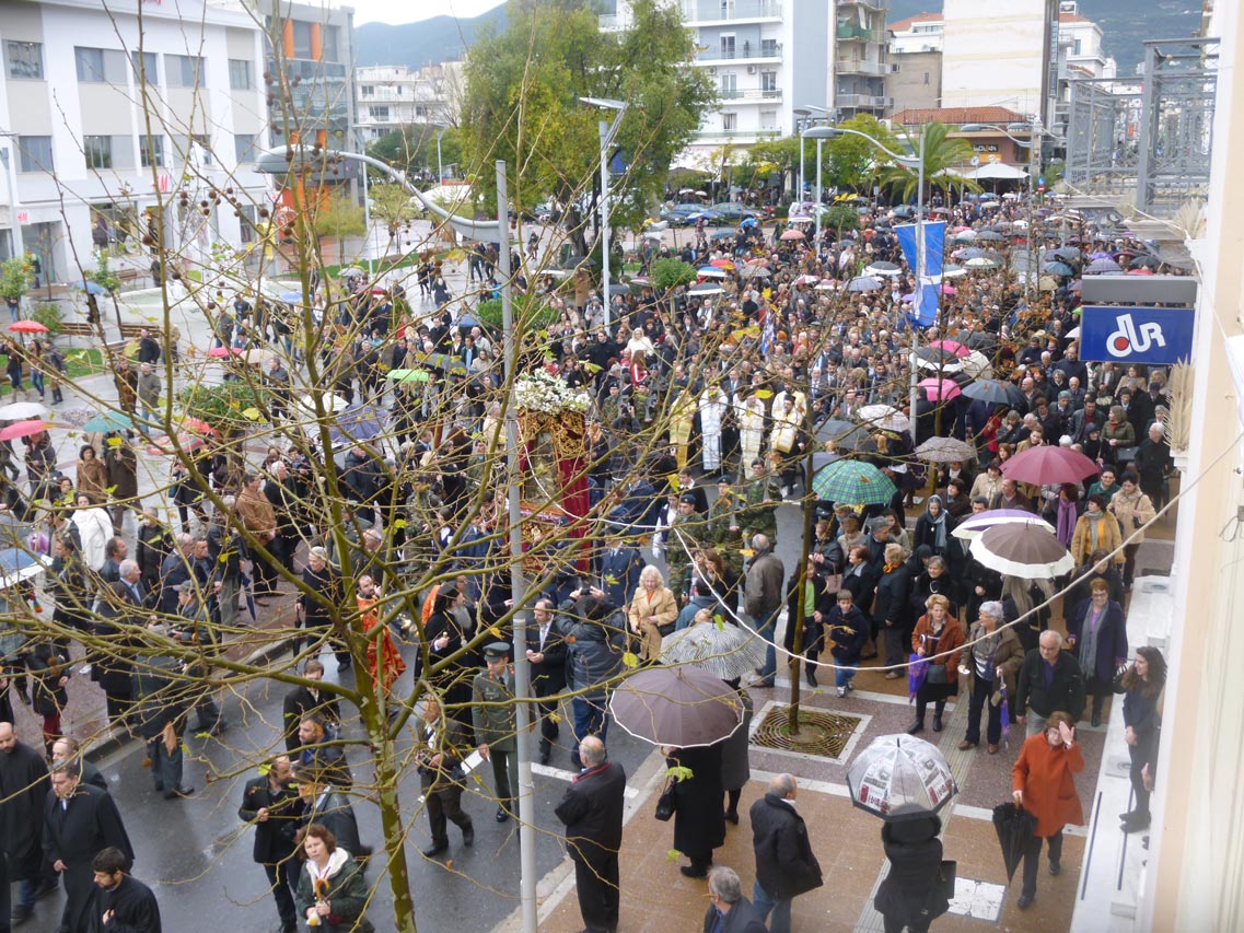Παρά τη βροχόπτωση, που επικρατούσε κατά τις πρωινές ώρες η λιτανεία της εικόνας σε κεντρικούς δρόμους της μεσσηνιακής πρωτεύουσας έγινε κανονικά σε κλίμα κατάνυξης. Αρχικά πάντως λόγω του καιρού είχε αποφασιστεί η λιτανεία να είναι συντομότερη (μέσω της οδού Σταδίου), αλλά τελικά ο καιρός “άνοιξε” και συνεχίστηκε στην καθιερωμένη διαδρομή.