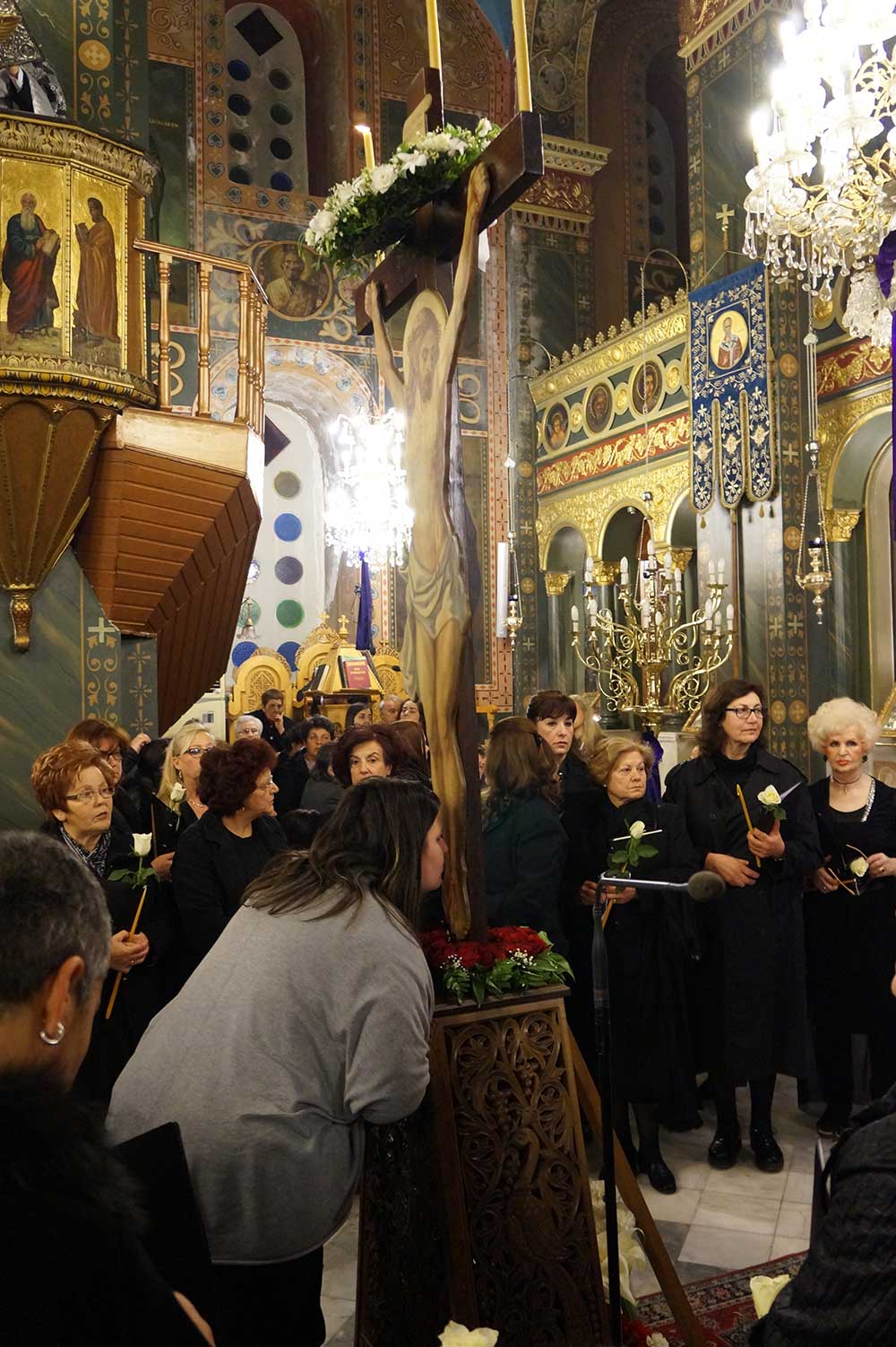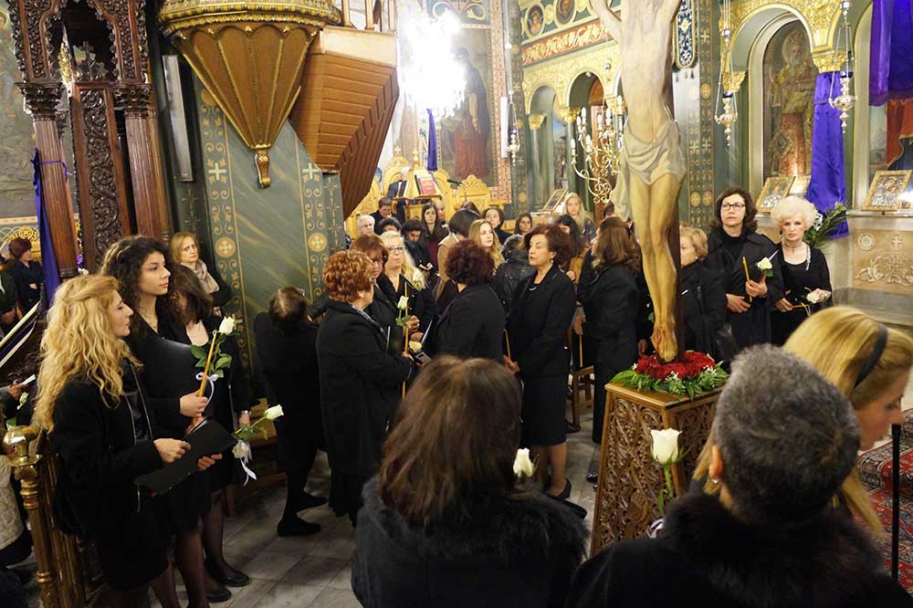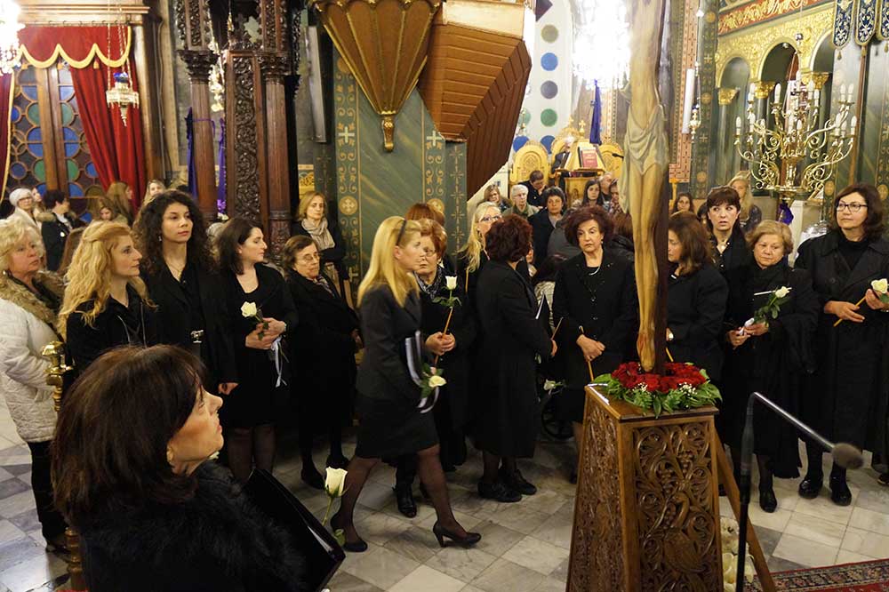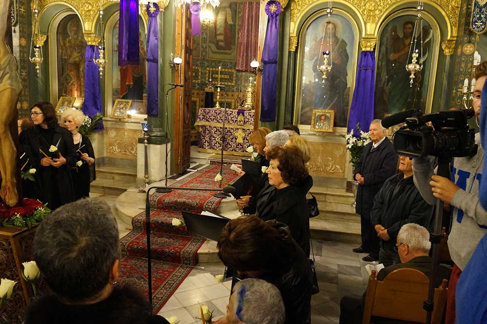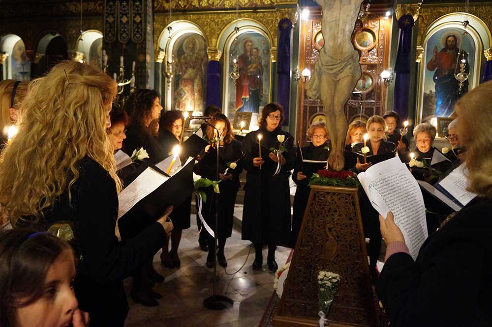 Φέτος, το "Μοιρολόϊ της Παναγίας" ειπώθηκε στο Ναό του Αγίου Νικολάου Φλαρίου Καλαμάτας, από το γυναικείο τμήμα της χορωδίας του Λυκείου Ελληνίδων.