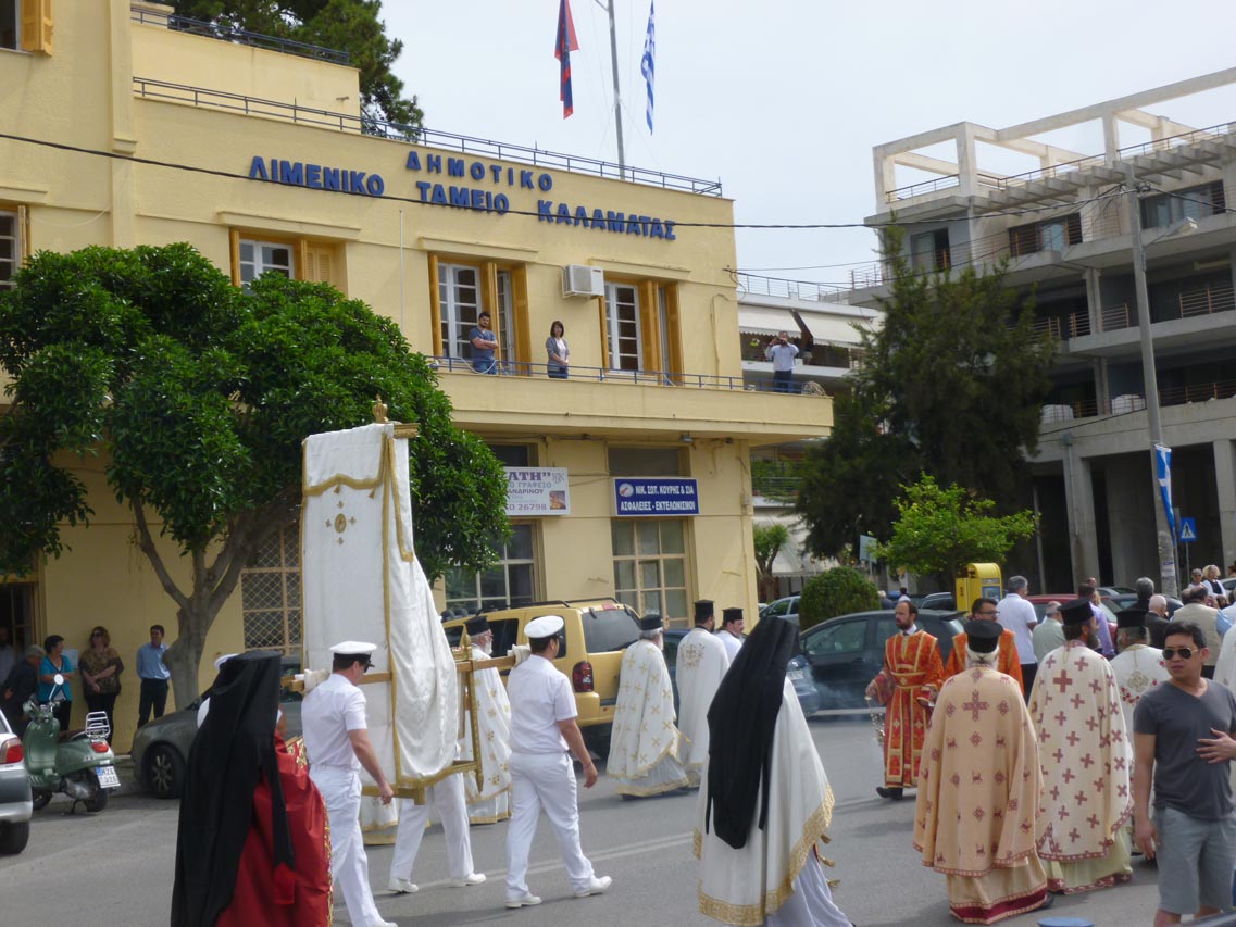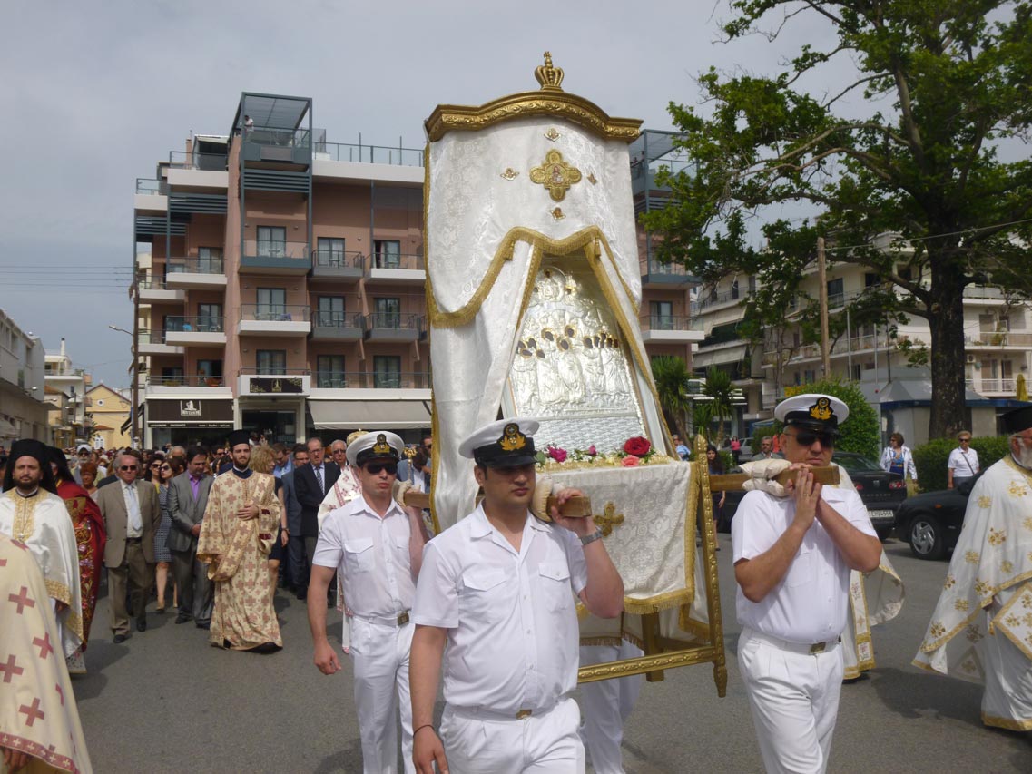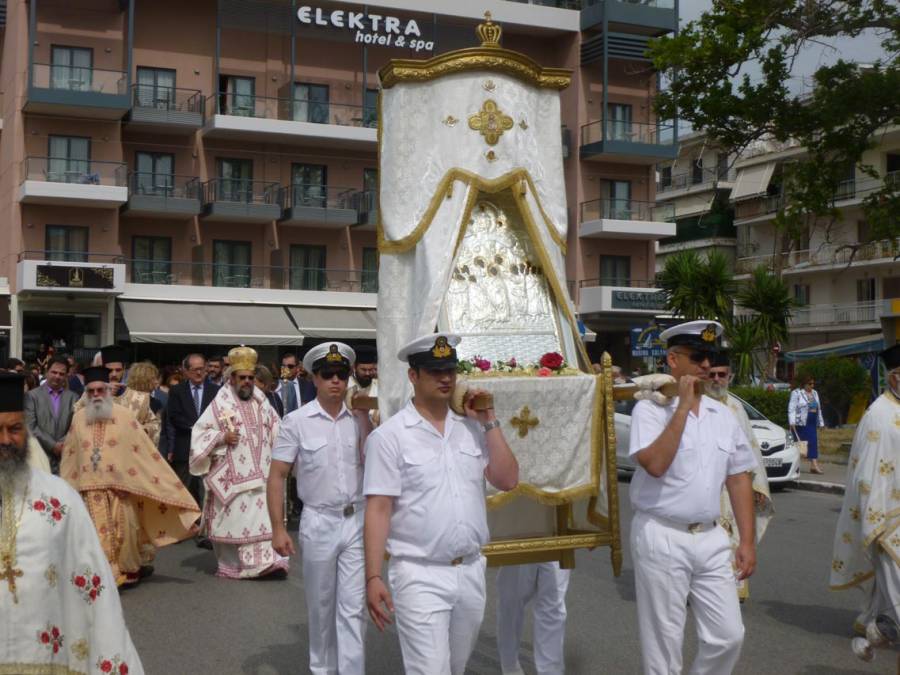 Το πρωί τελέστηκε ο όρθρος και η θεία λειτουργία, ενώ στις 10.30 ξεκίνησε η λιτάνευση της εικόνας της Ανάληψης στους δρόμους γύρω από το λιμάνι.