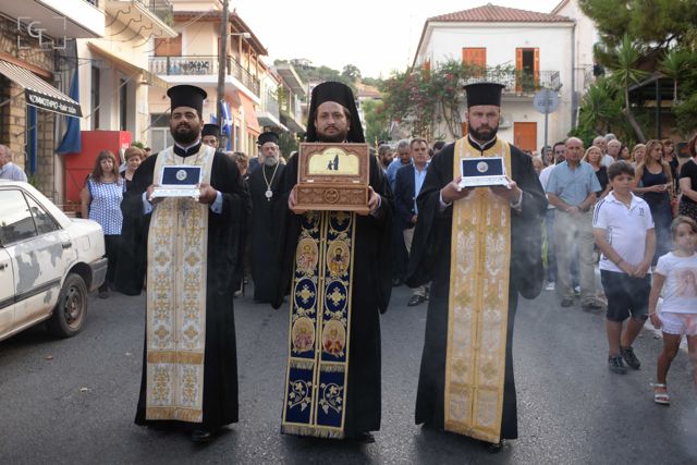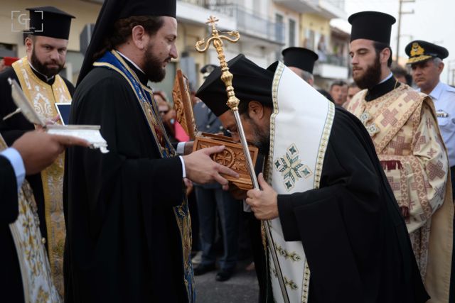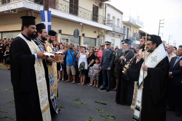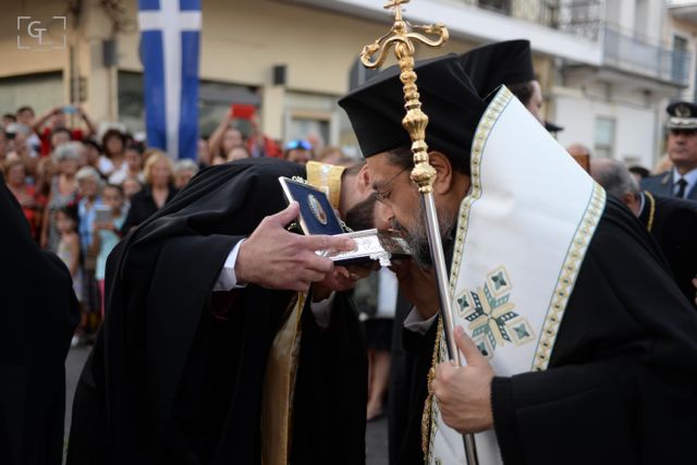 Τα ιερά θησαυρίσματα υποδέχτηκαν στην κεντρική πλατεία της κωμόπολης ο μητροπολίτης Μεσσηνίας Χρυσόστομος, ο μητροπολίτης Λεοντοπόλεως Γαβριήλ του Πατριαρχείου Αλεξανδρείας, τοπικές αρχές και πλήθος πιστών.