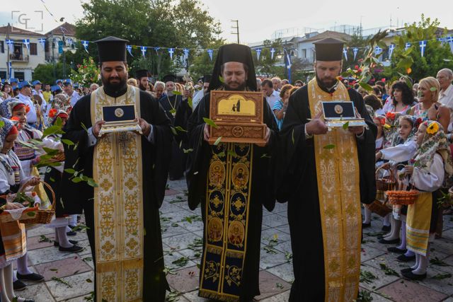 Ακολούθησε λιτάνευση γύρω από την πλατεία και τα ιερά λείψανα εναποτέθηκαν στον ιερό ναό του Αγίου Νικολάου. Στη συνέχεια, ακολούθησε πανηγυρική δοξολογία, παράκληση και ιερά αγρυπνία.