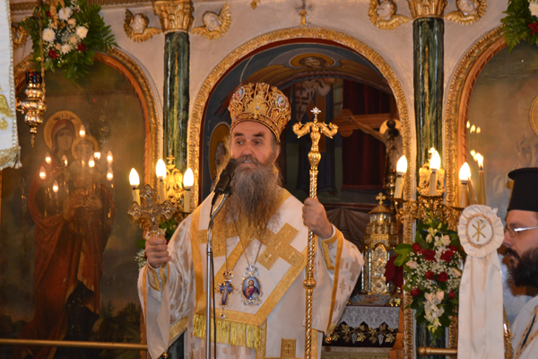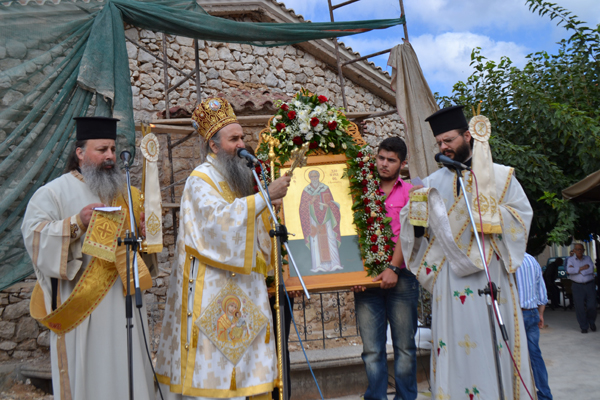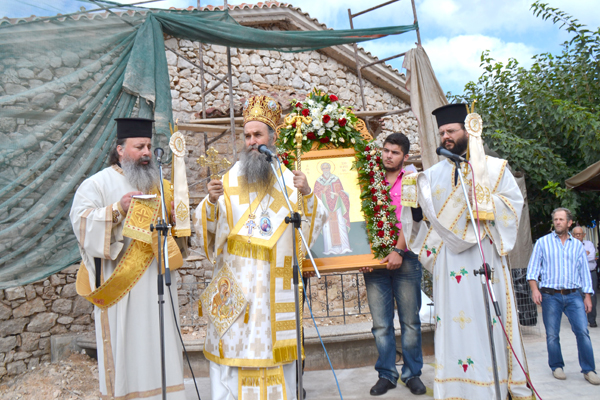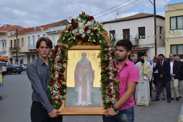 Στο χώρο της κεντρικής πλατείας εψάλη δέηση και ο κ. Χρυσόστομος στο σύντομο λόγο του αναφέρθηκε στον Αγιο Διονύσιο σημειώνοντας μεταξύ άλλων ότι ο άγιος δίνει το σύνθημα σε όλους μας να έχουμε μέσα μας την ανησυχία, την ικανή ανησυχία, όχι την περίεργη, την κακή, την ζηλοτυπία. Πρέπει, είπε, να έχουμε την επιμονή και την υπομονή όταν ο Θεός μας αποκαλύπτεται μέσα από σημεία.