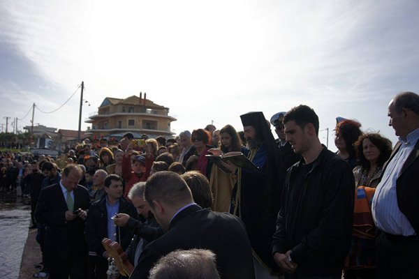Ο Γιώργος Αδρακτάς ήταν αυτός που κατάφερε να πιάσει το σταυρό βουτώντας στα νερά του λιμανιού μαζί με άλλους κολυμβητές.